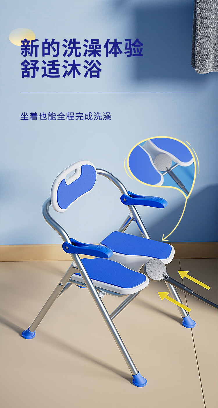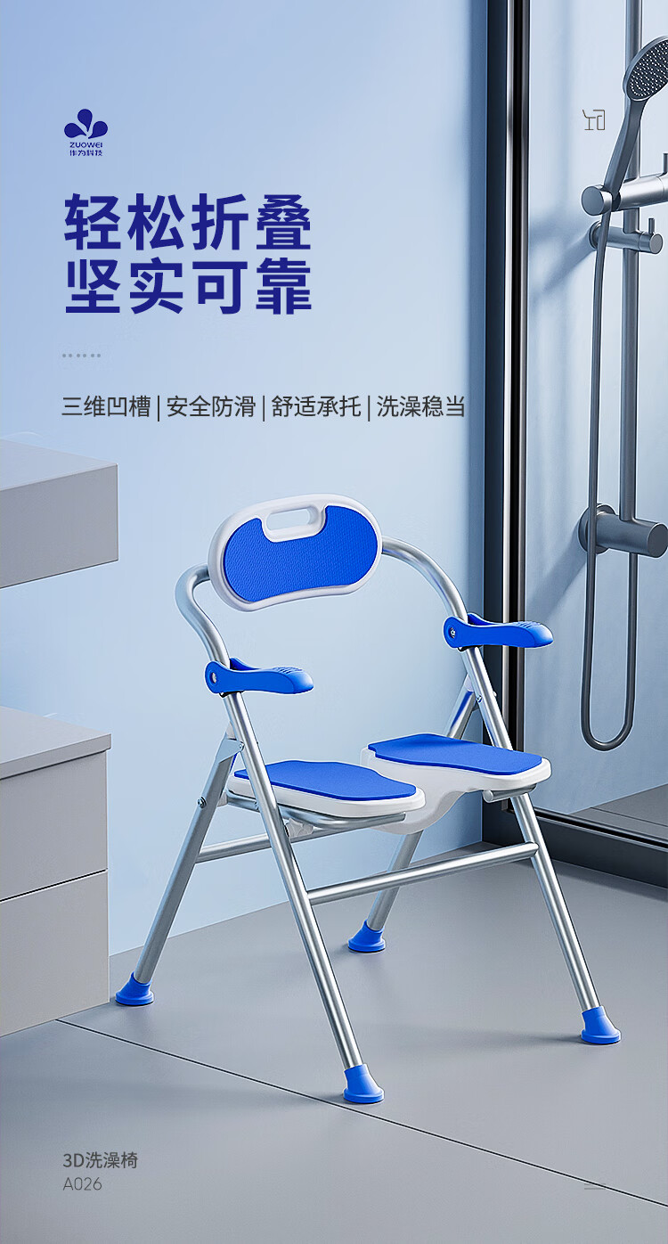 zuowei作为老年人洗澡椅凹槽椅老人洗澡专用椅子防滑孕妇浴室洗澡坐凳 作为洗澡椅凹槽版-蓝色