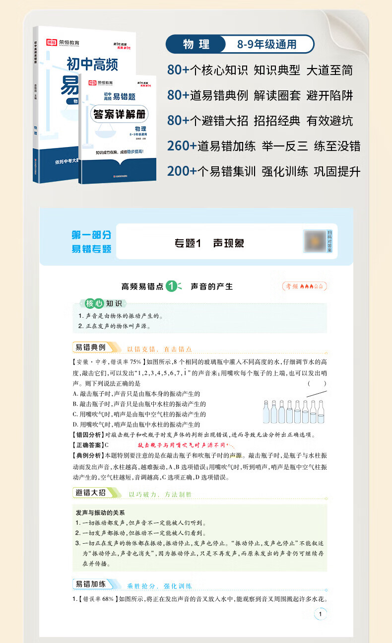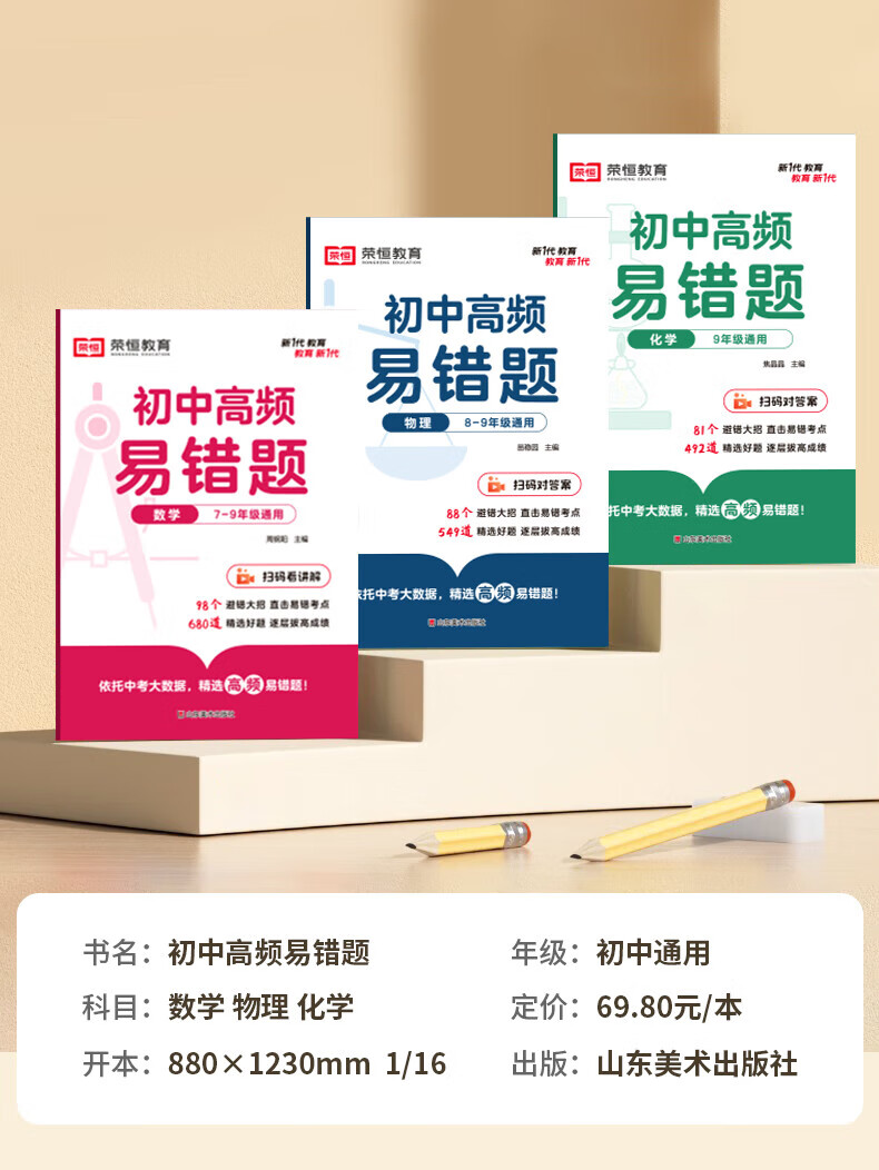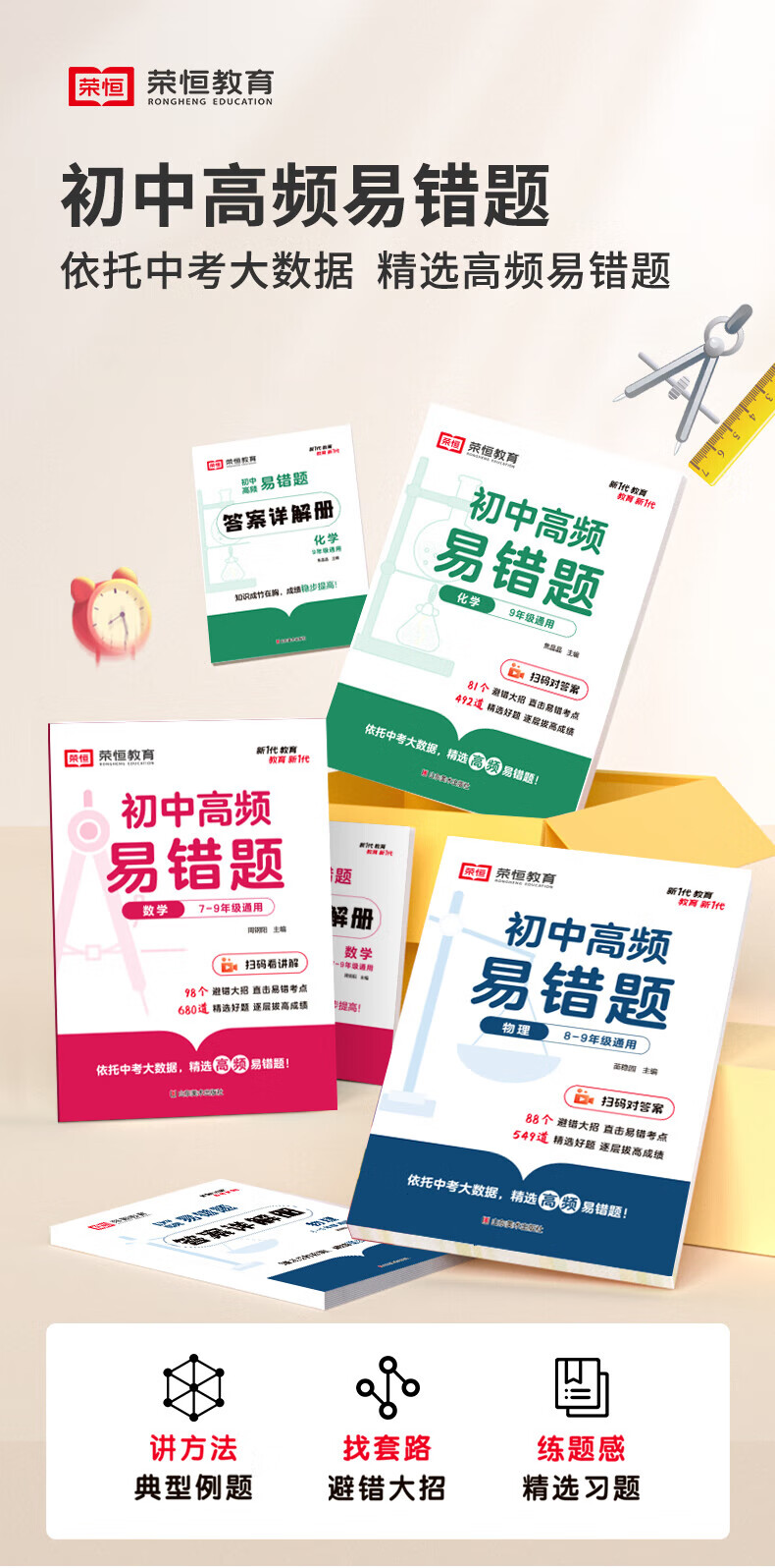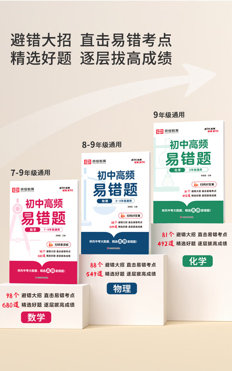 【荣恒】24版初中高频易错题数学物理化学专项同步训练练习册初中生知识点必刷题教材书 初中通用数理化共3本