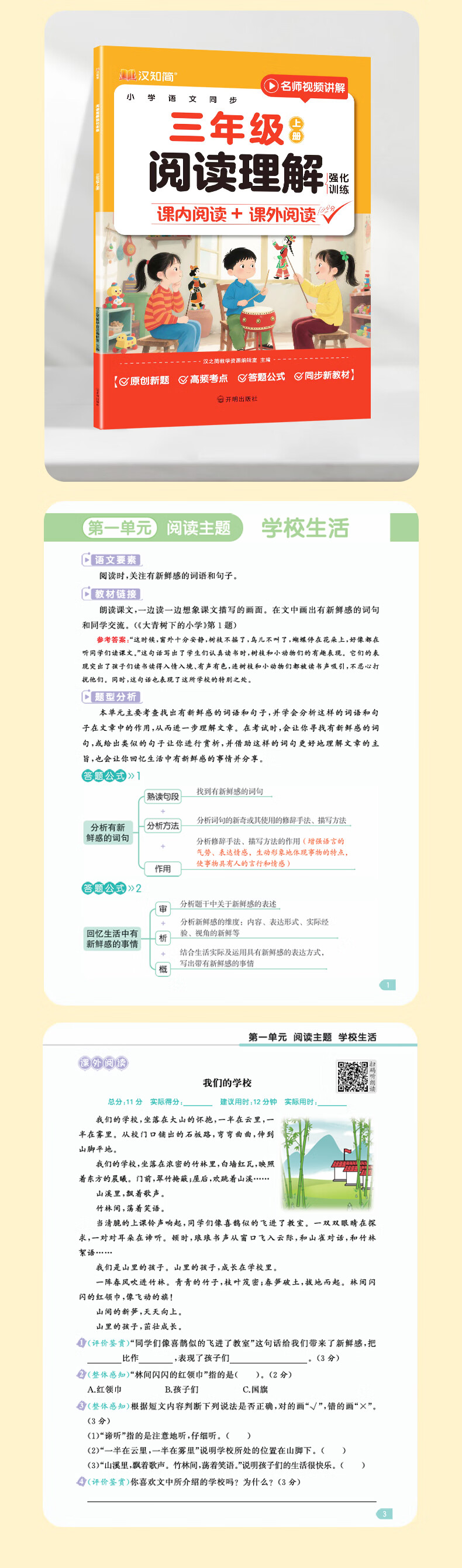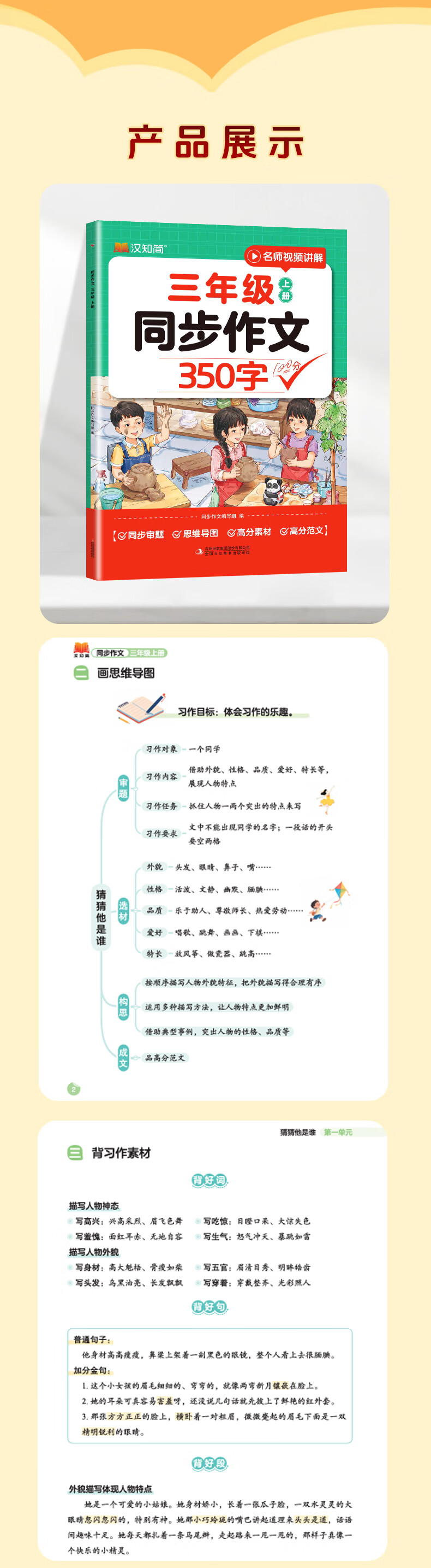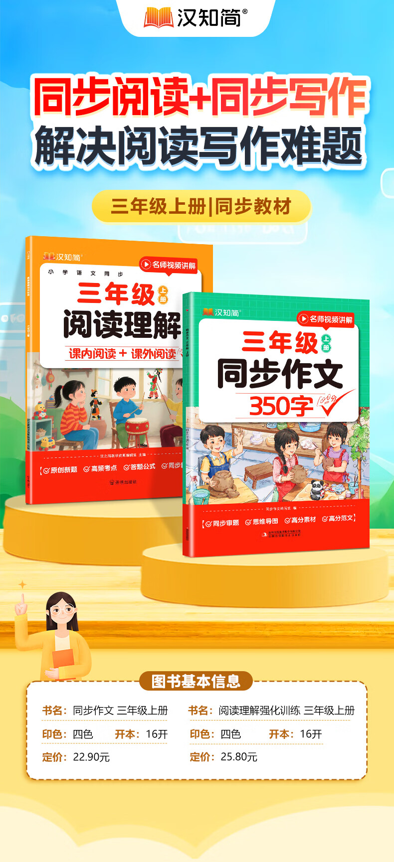 汉知简同步作文三年级人教版李格老师视频精讲小学语文三年级上册同步作文350字阅读理解专项训练书新教材高分素材范文考点100分作文素材积累 95%的家长选择【2本】同步作文+阅读理解