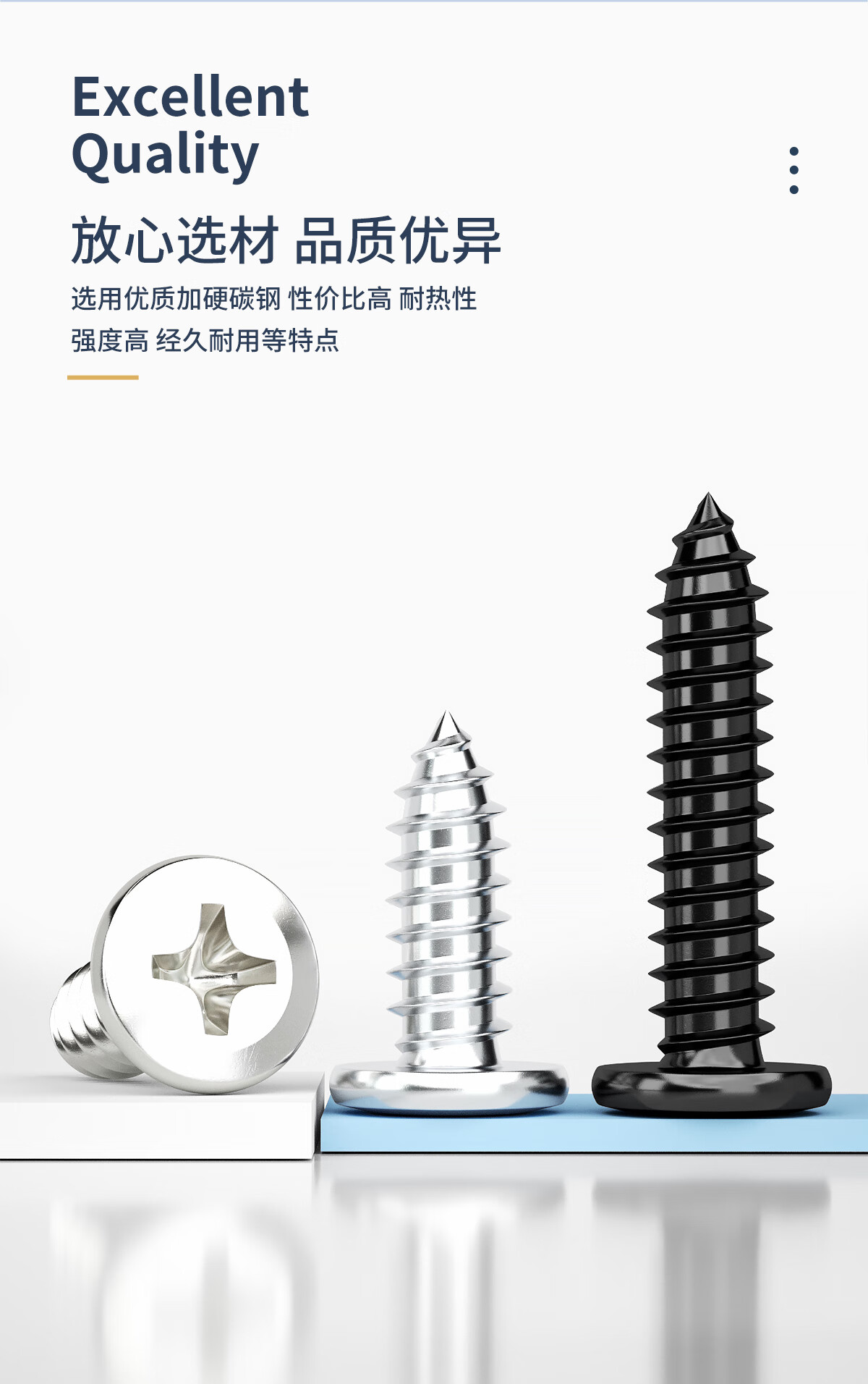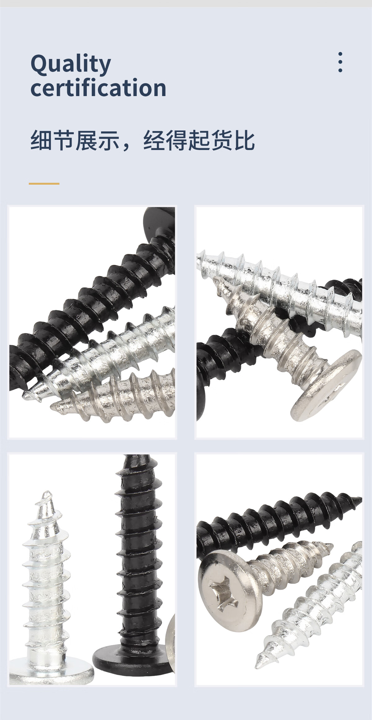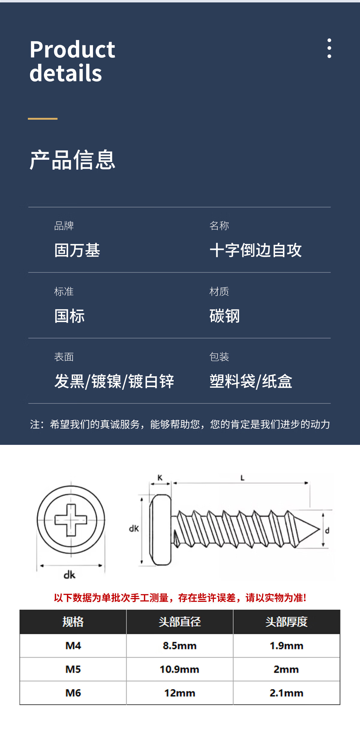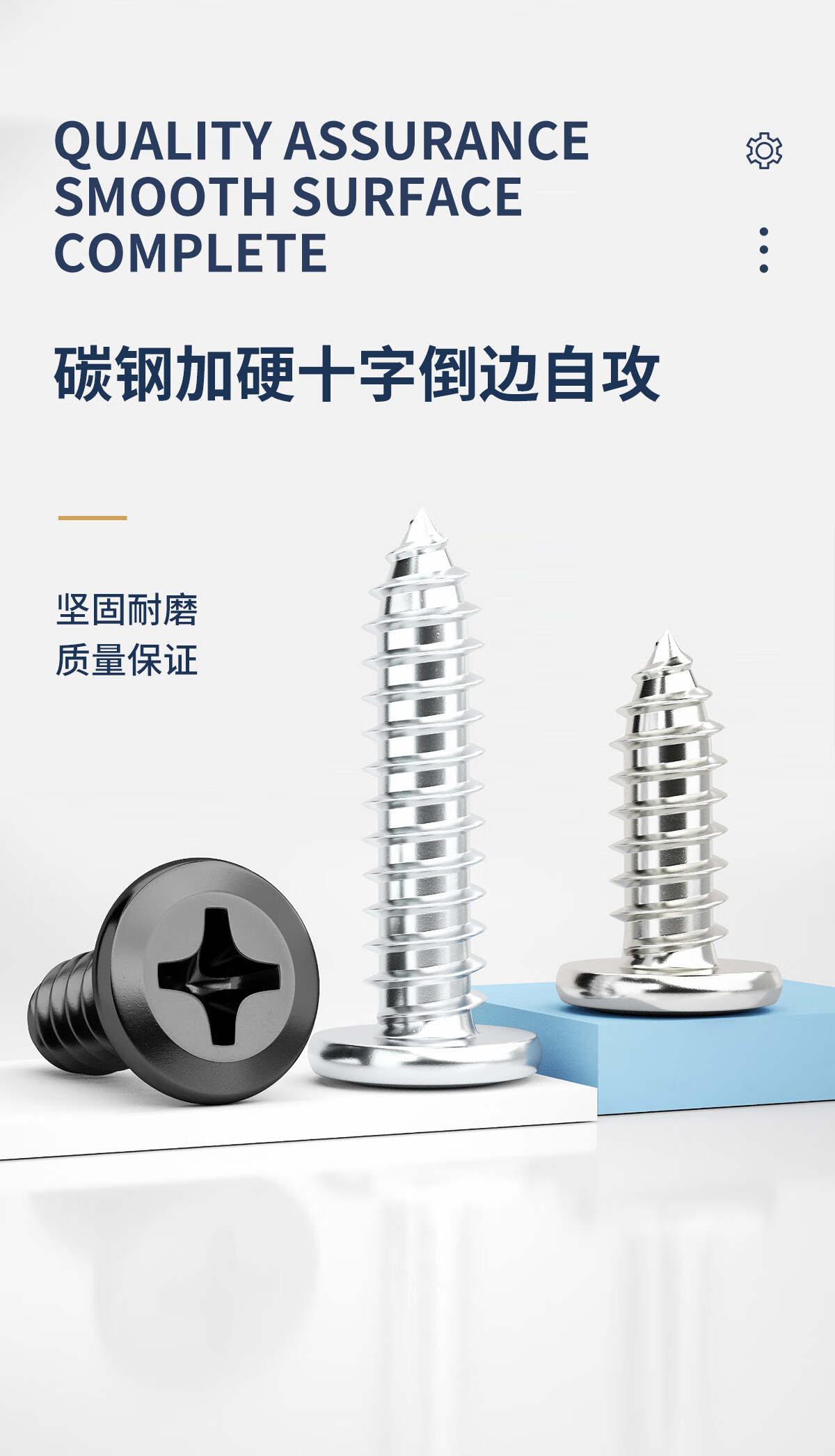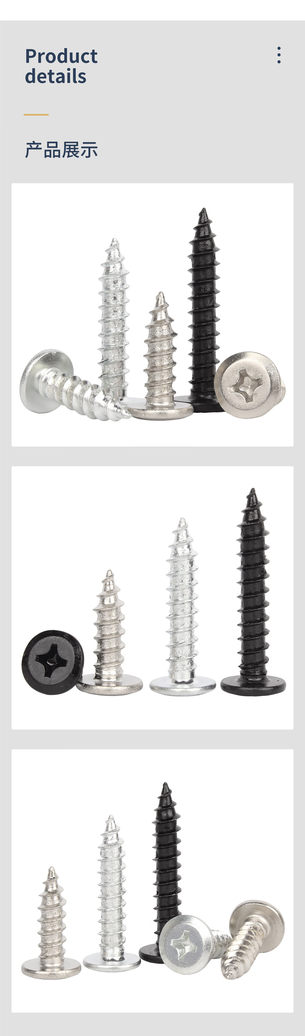 固万基碳钢黑色/镀镍/白锌倒边十字自攻尖尾倒边扁头家具木螺丝钉M4M5M6 铁黑 M4x12(100只)