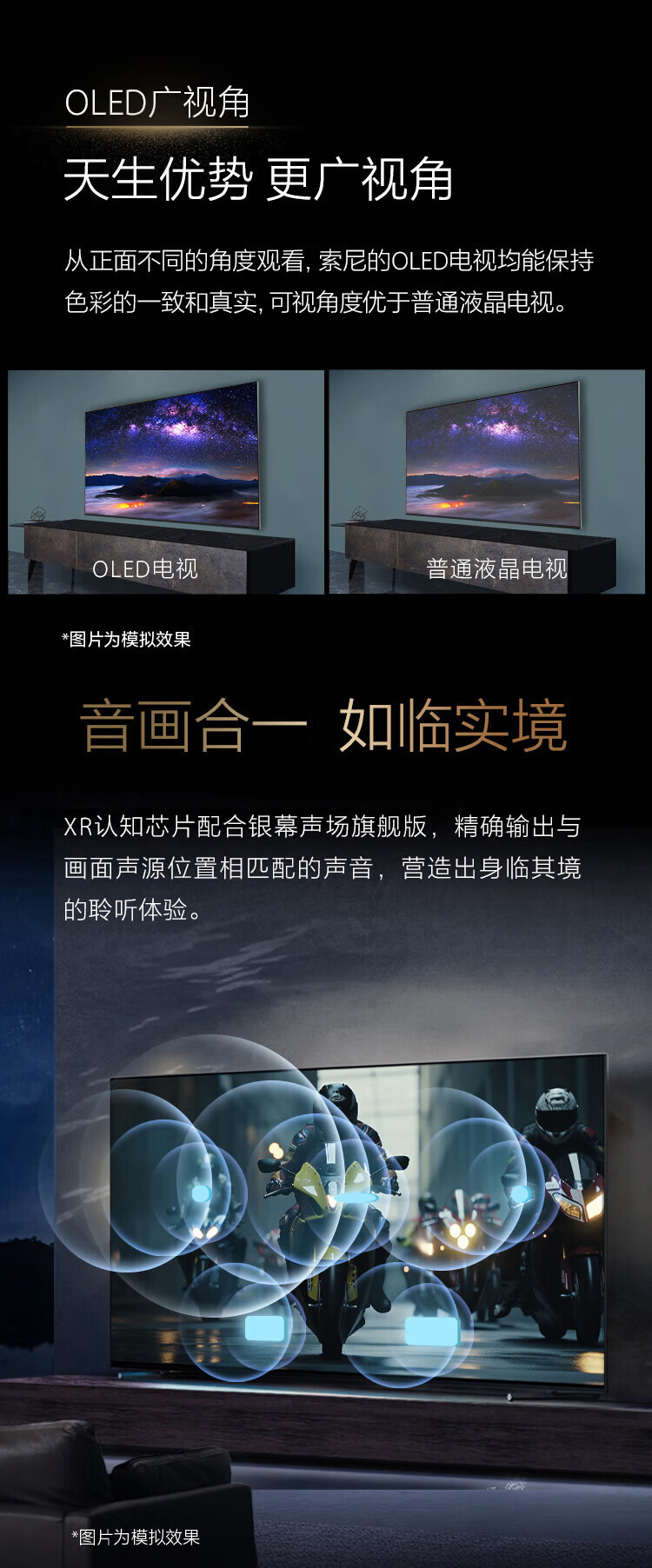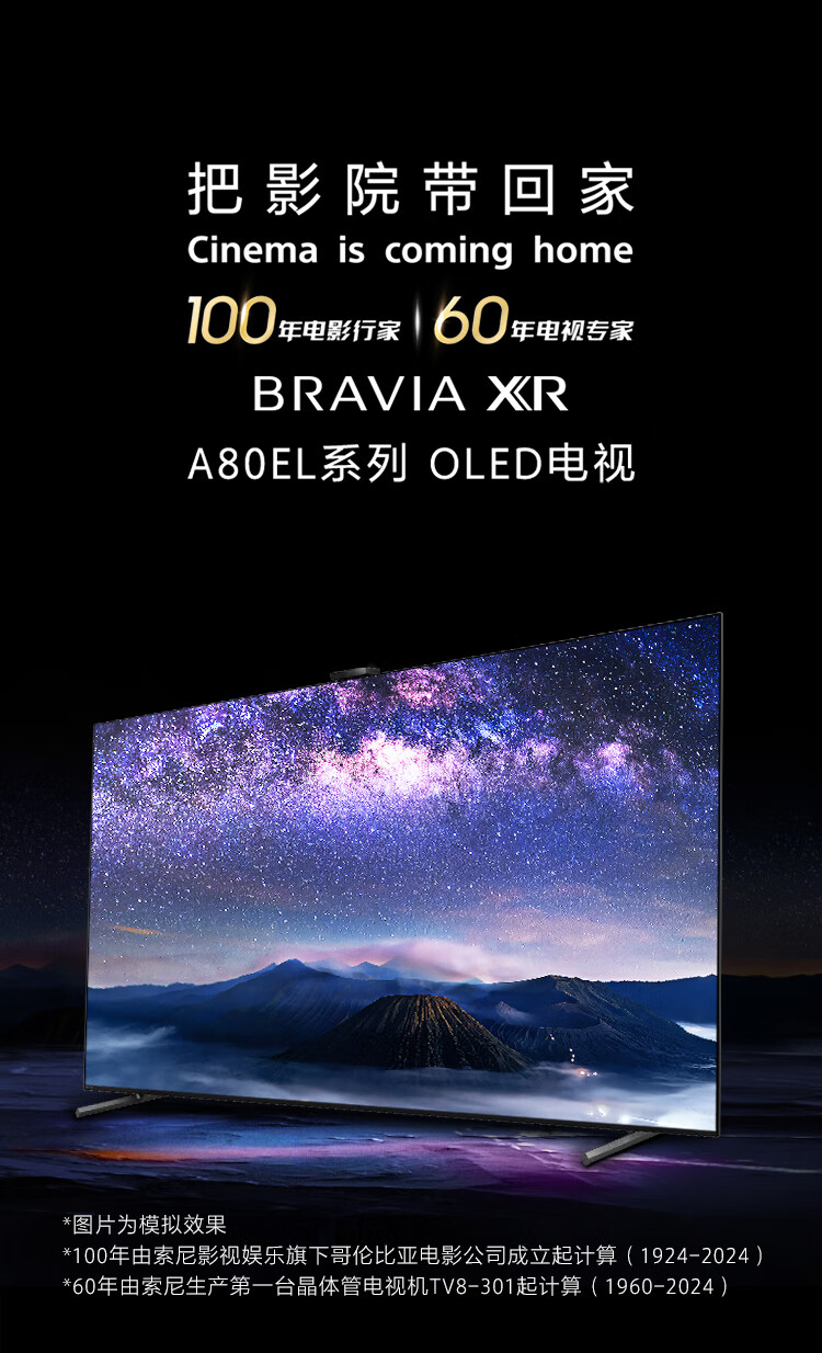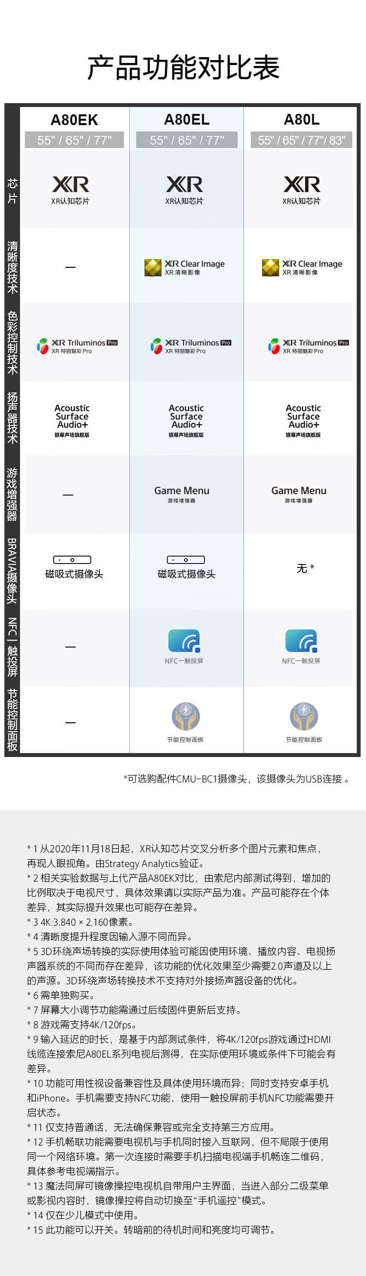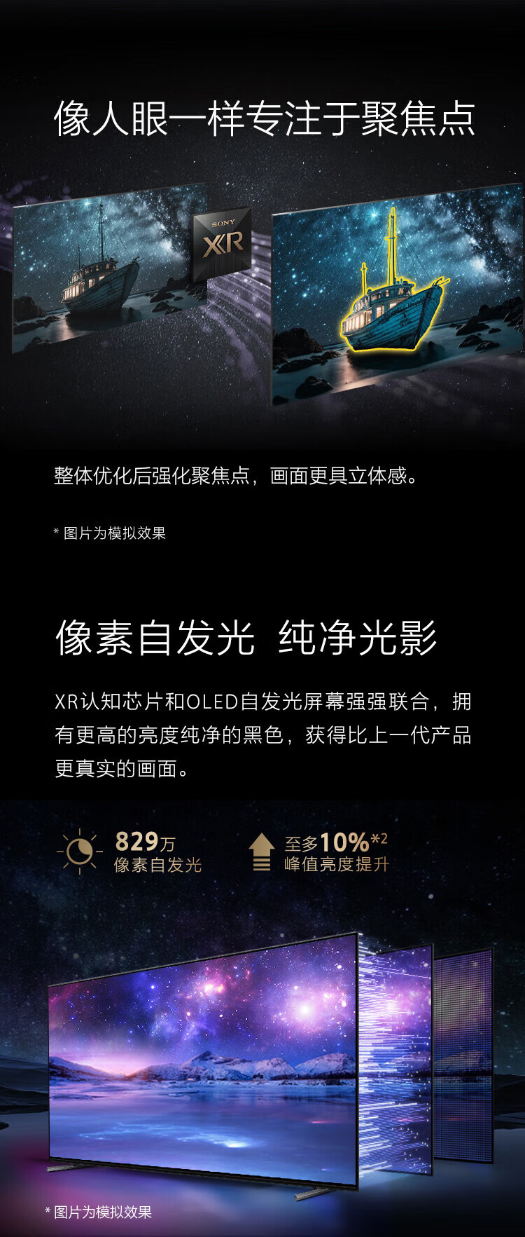索尼(SONY)【尾货捡漏价】A80EL系列 77英寸 4K OLED智能电视 屏幕发声 搭载摄像头 XR认知芯片 77英寸 XR-77A80EL