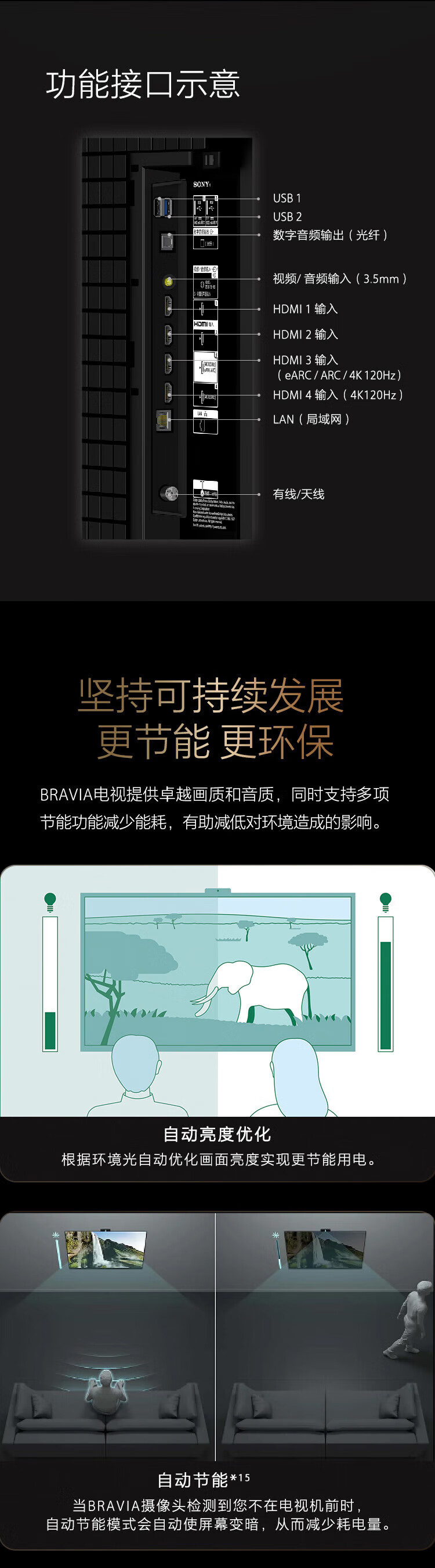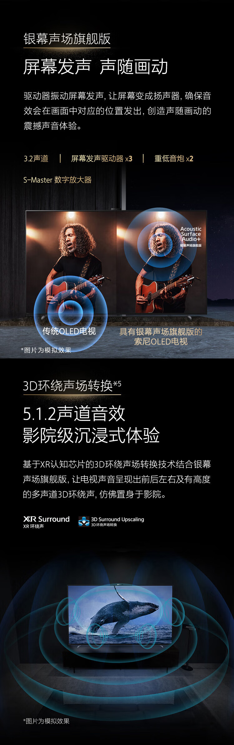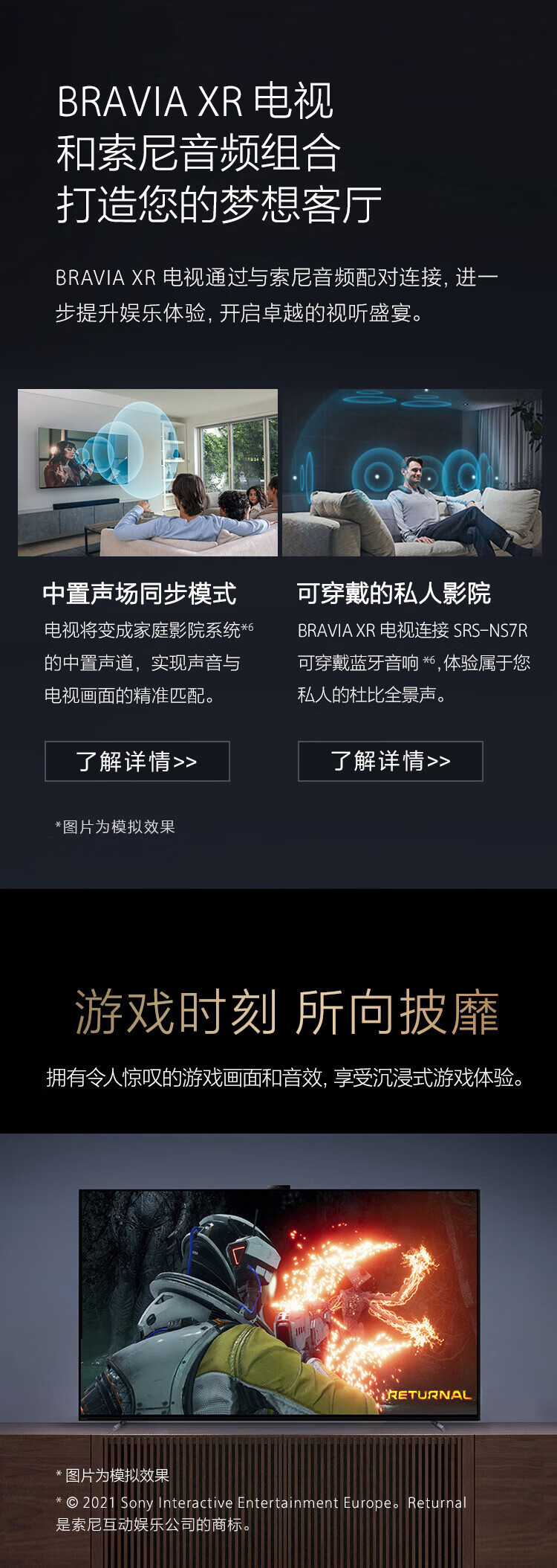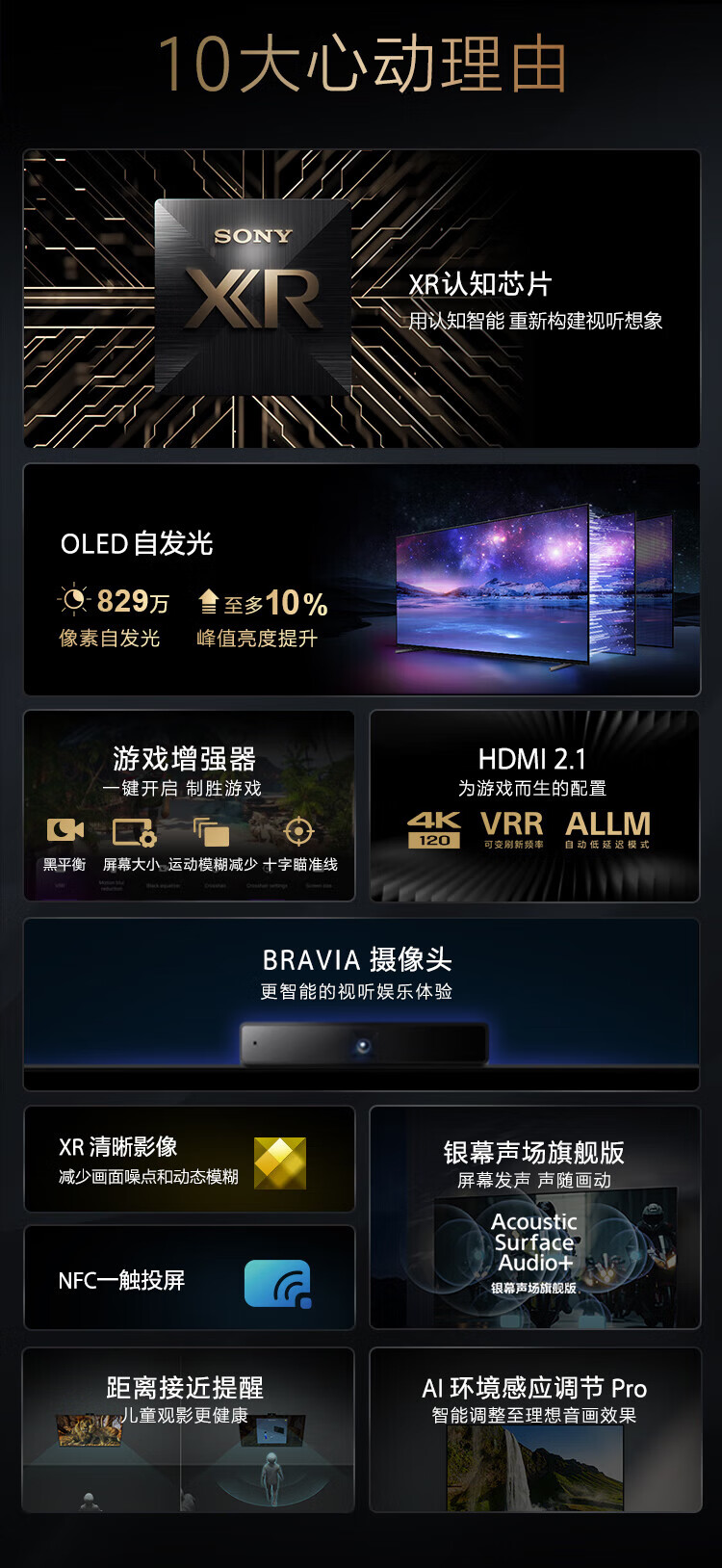 索尼(SONY)【尾货捡漏价】A80EL系列 77英寸 4K OLED智能电视 屏幕发声 搭载摄像头 XR认知芯片 77英寸 XR-77A80EL