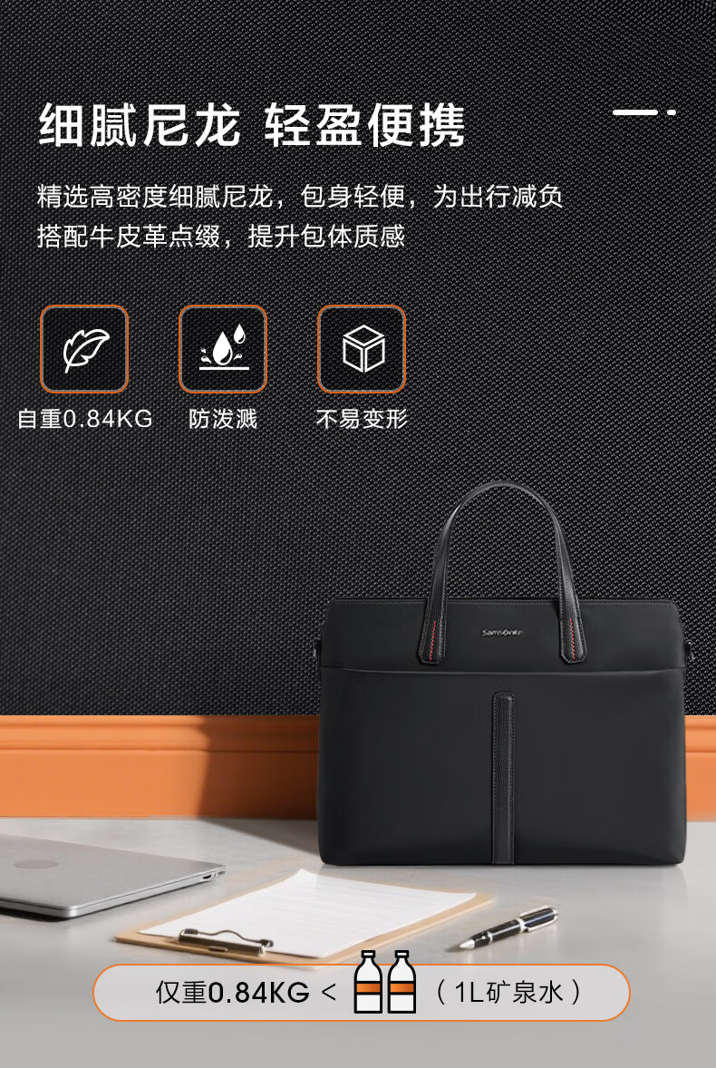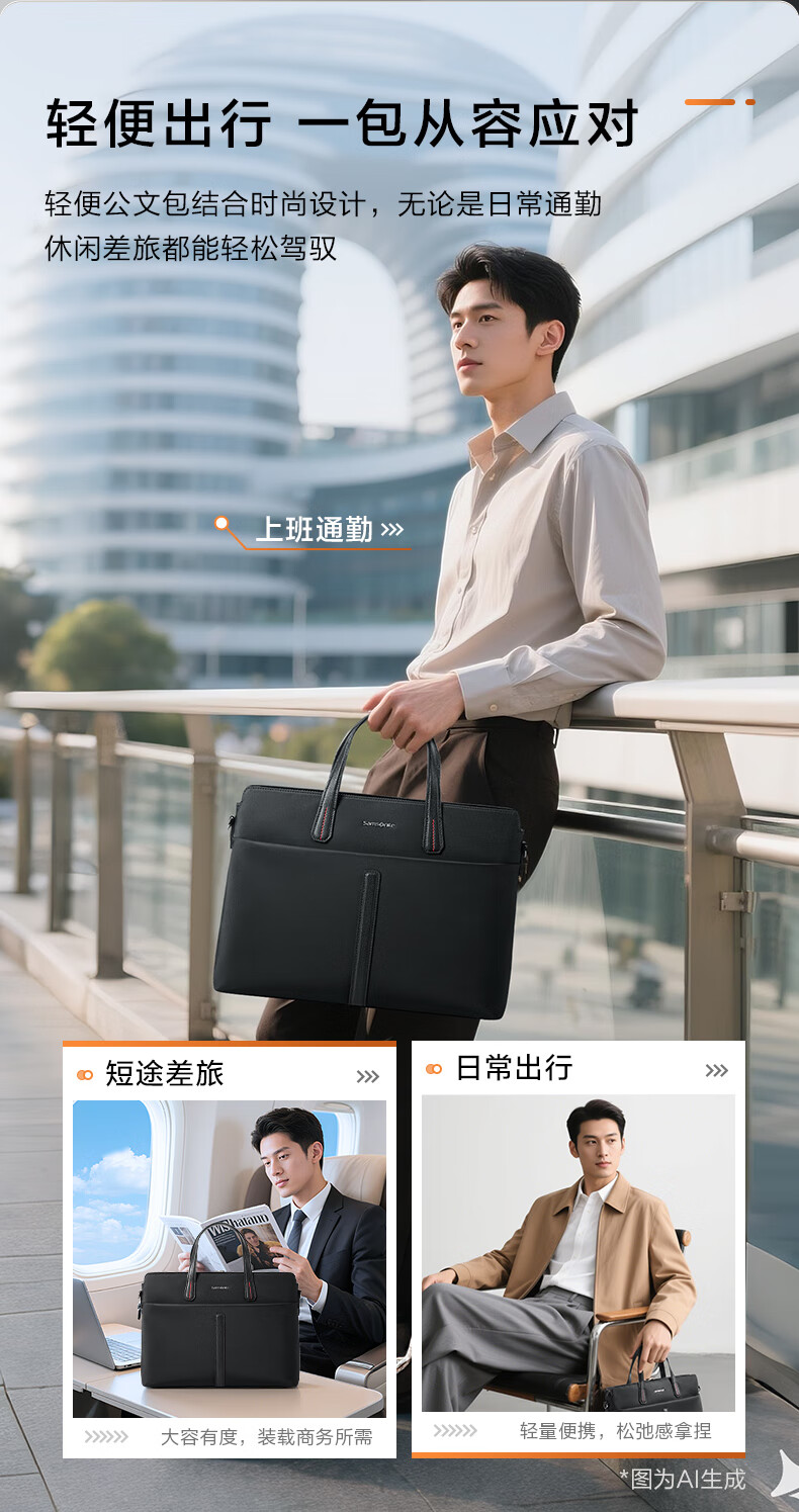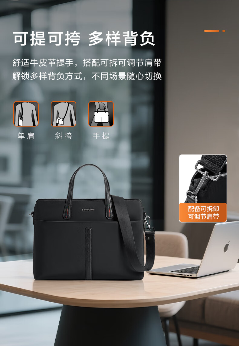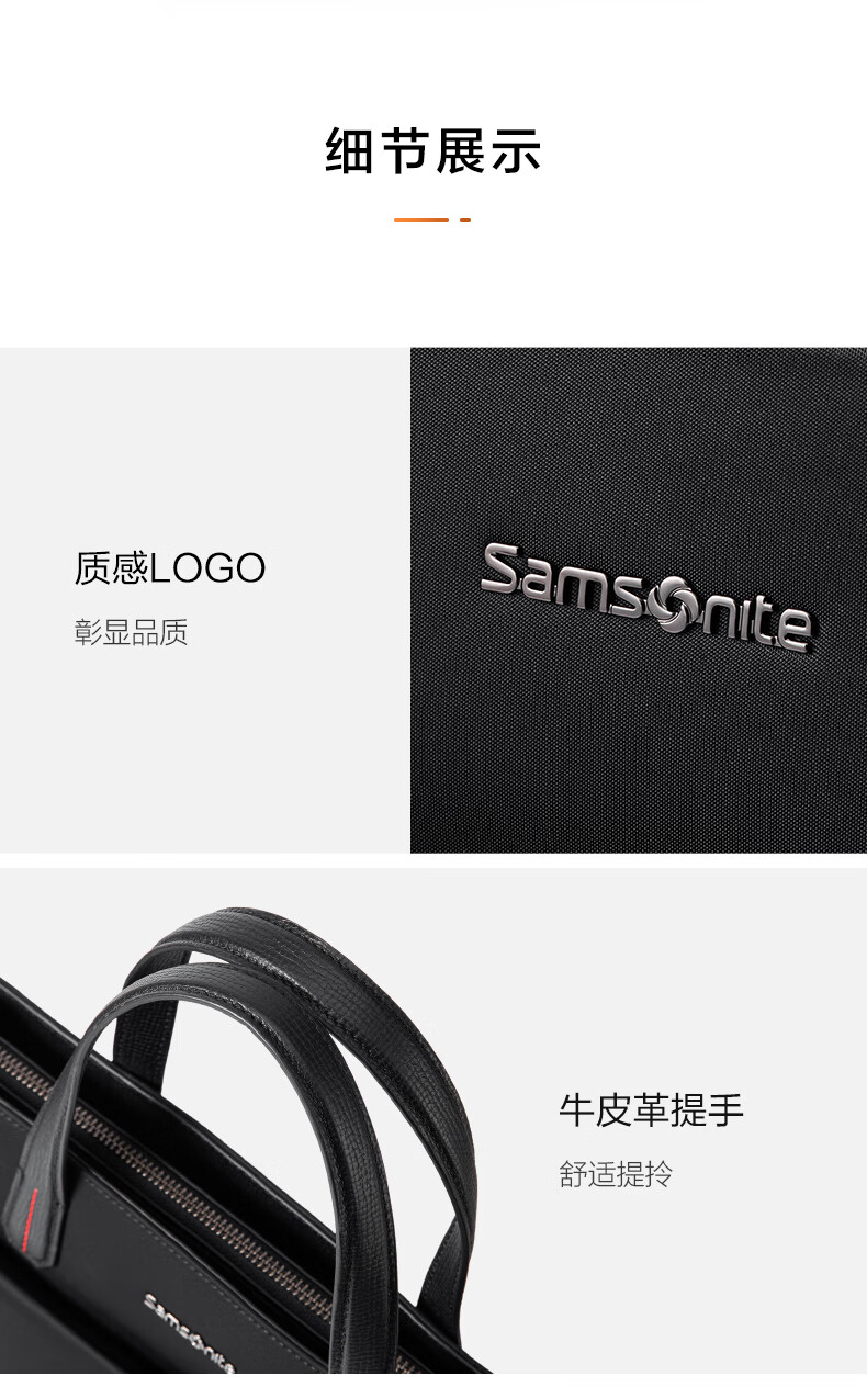 新秀丽(Samsonite)男士商务手提包13.3英寸电脑包牛皮革出差公文包男士礼物 TK3