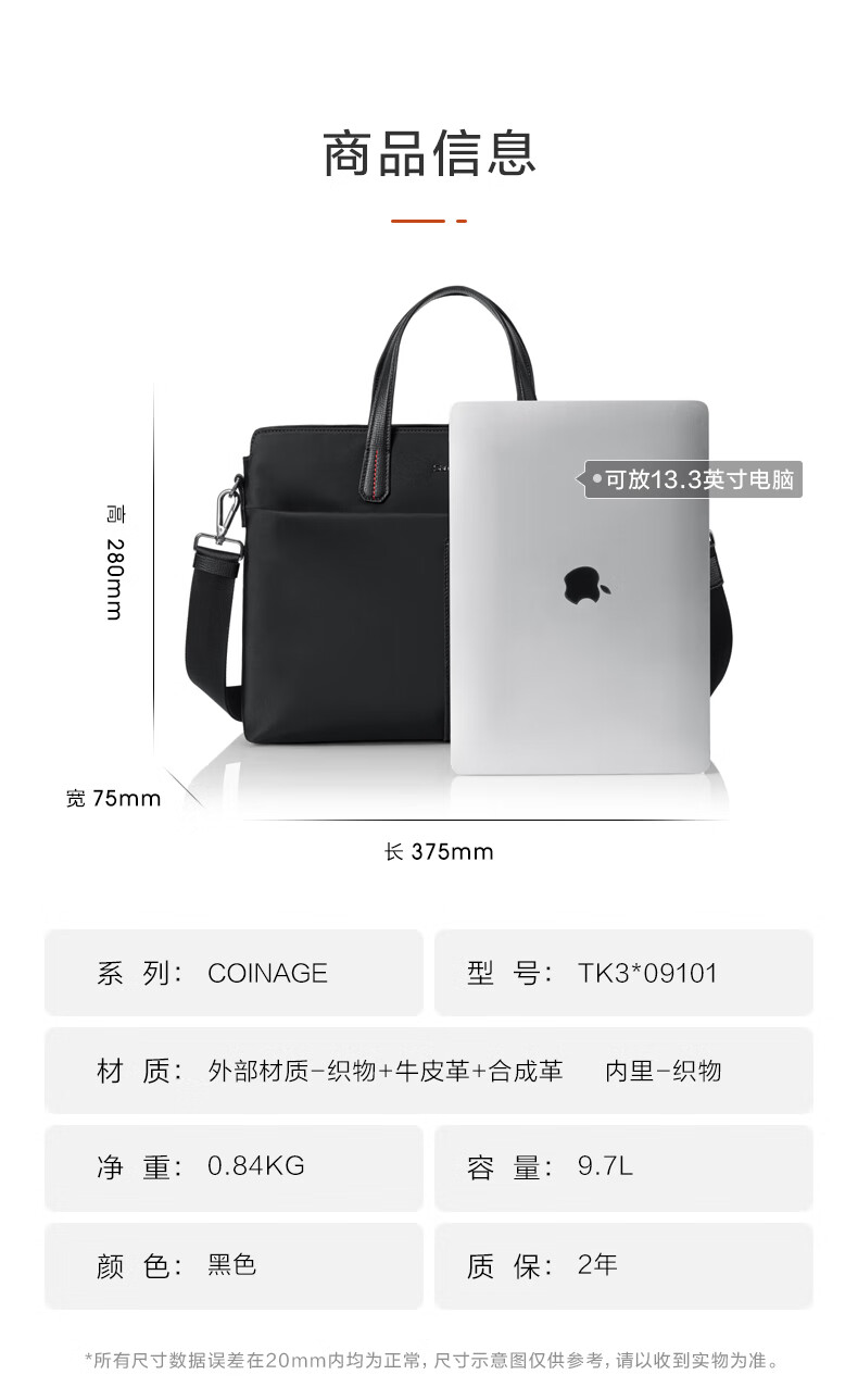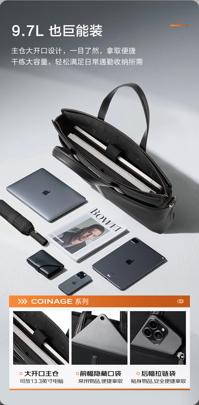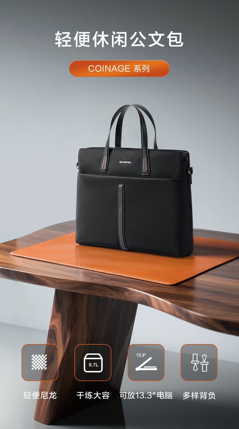新秀丽(Samsonite)男士商务手提包13.3英寸电脑包牛皮革出差公文包男士礼物 TK3