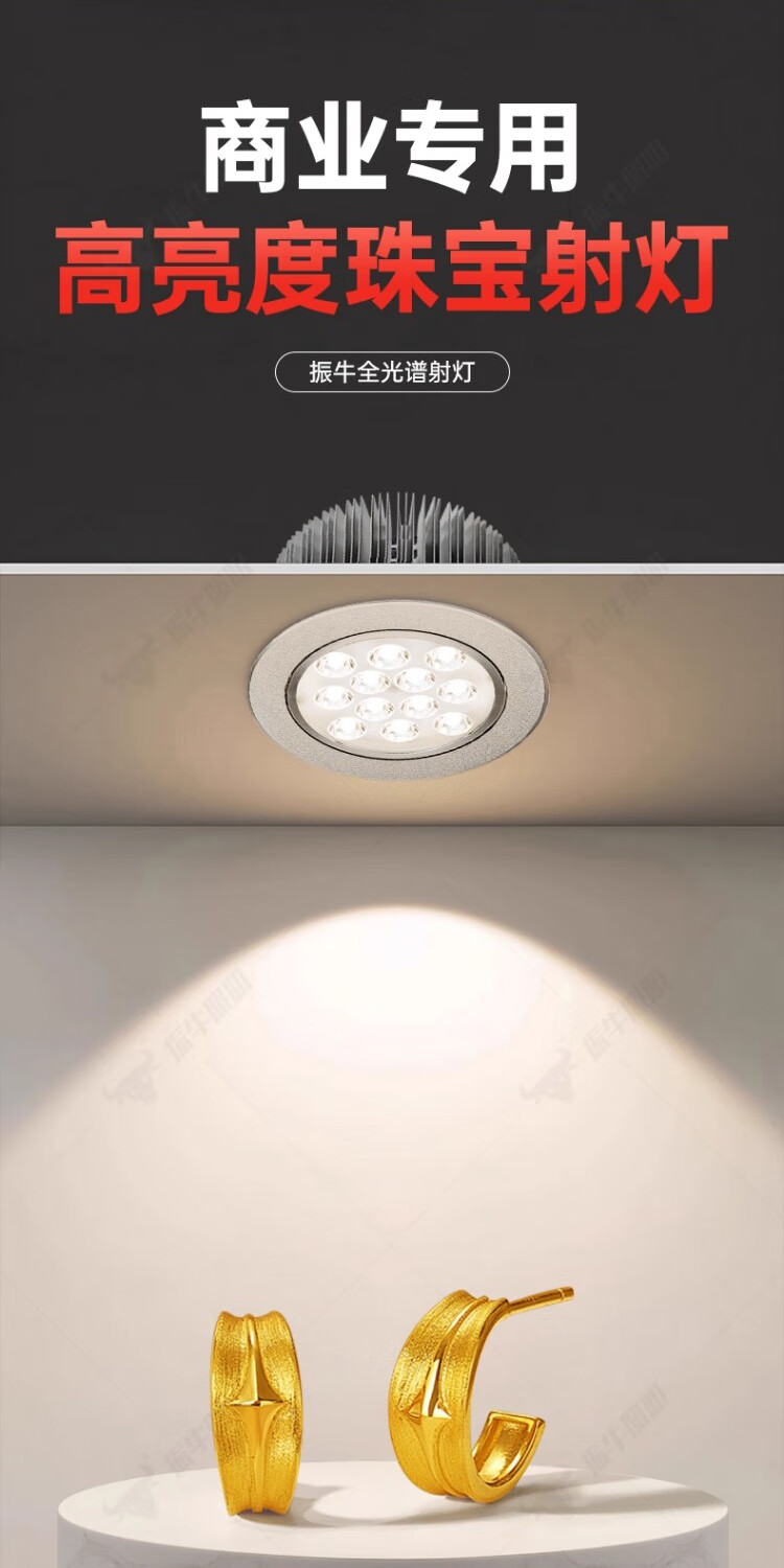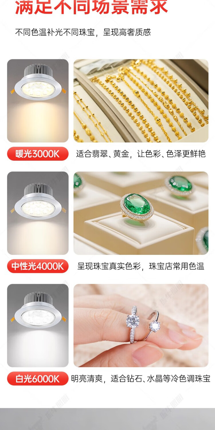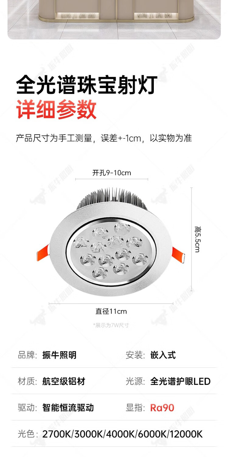 振牛嵌入式射灯12w18w24w商用天花灯眼镜店铺黄金珠宝灯led专用灯聚光 磨砂银【3W白光】开孔7.5cm 商用级珠宝射灯