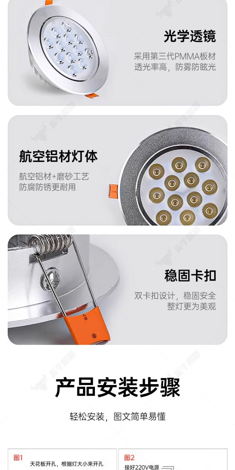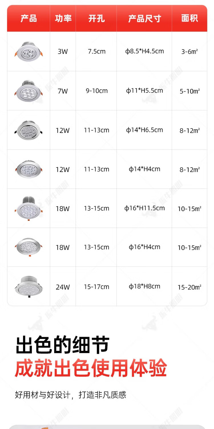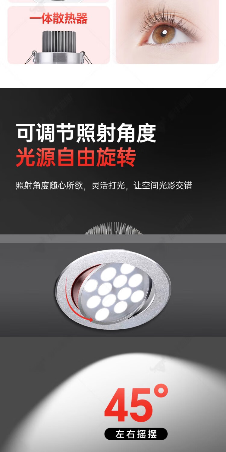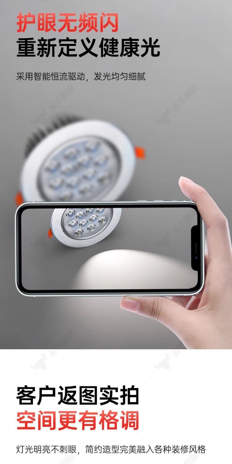 振牛嵌入式射灯12w18w24w商用天花灯眼镜店铺黄金珠宝灯led专用灯聚光 磨砂银【3W白光】开孔7.5cm 商用级珠宝射灯