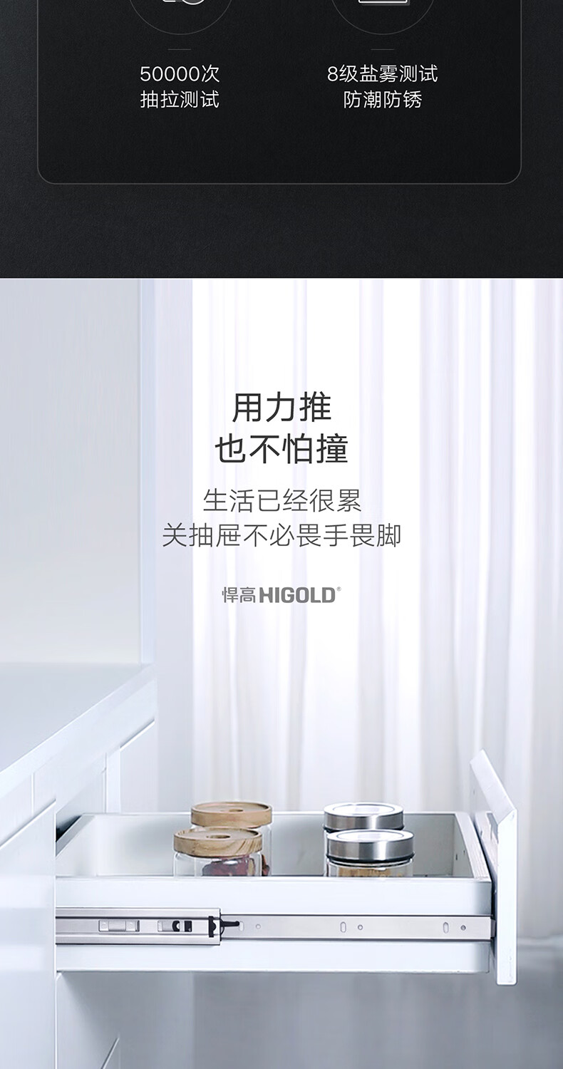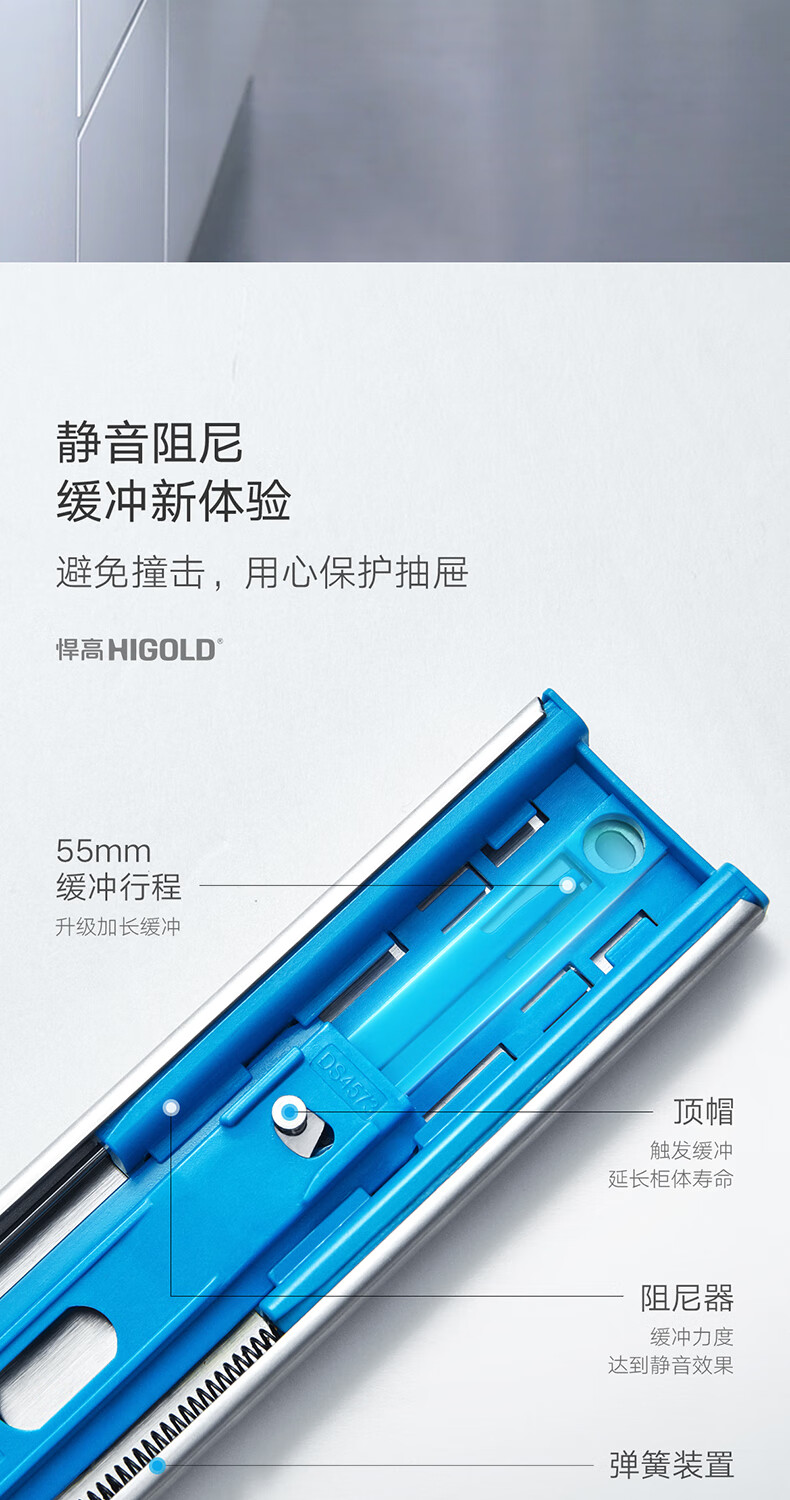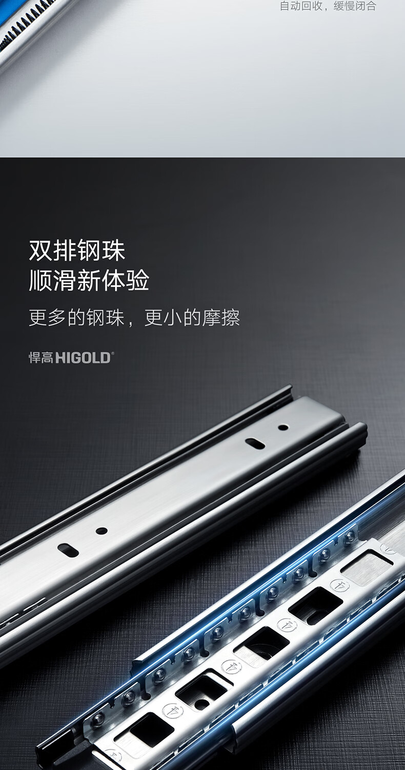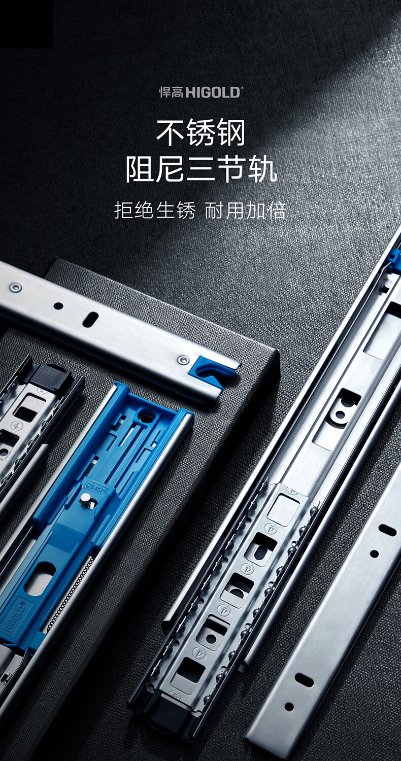 悍高(HIGOLD)抽屉导轨阻尼缓冲滑轨静音三节轨不锈钢液压阻尼20寸1副【500mm】