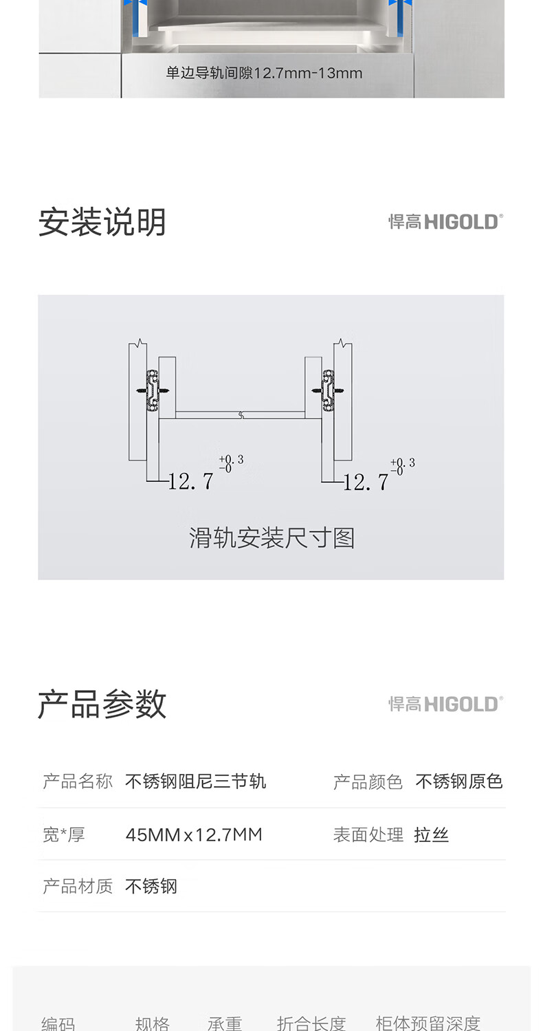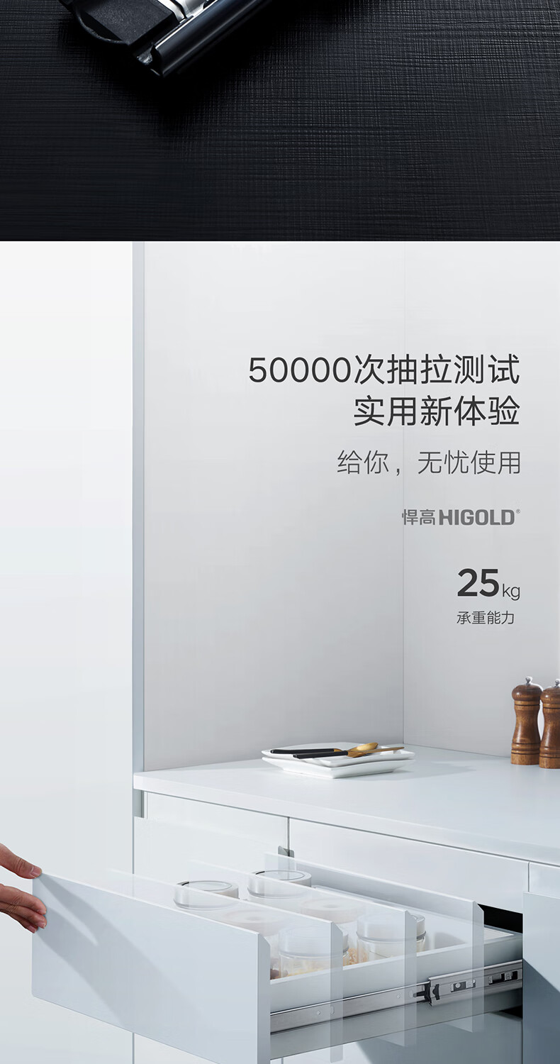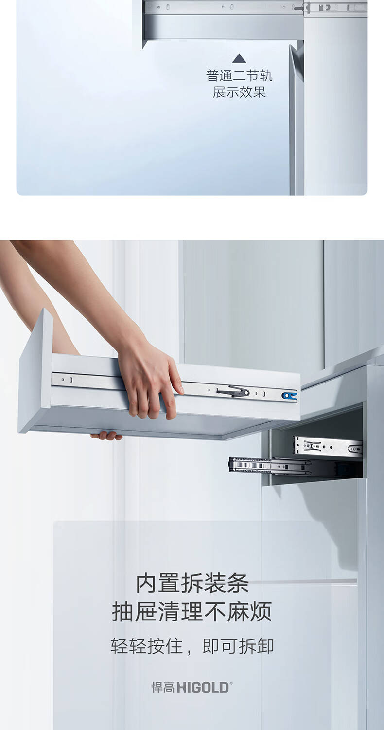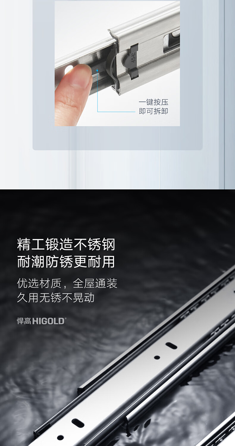 悍高(HIGOLD)抽屉导轨阻尼缓冲滑轨静音三节轨不锈钢液压阻尼20寸1副【500mm】