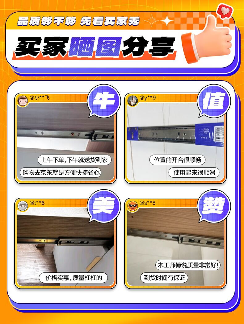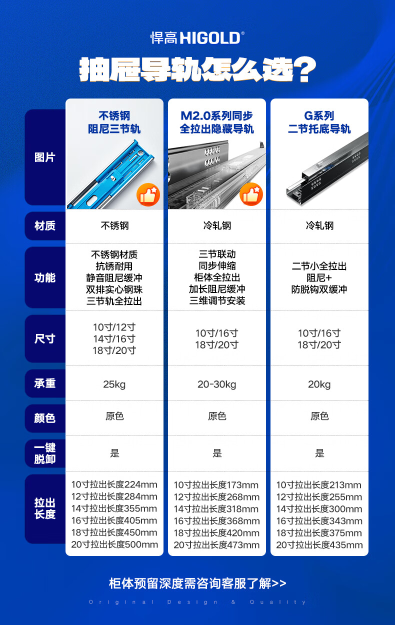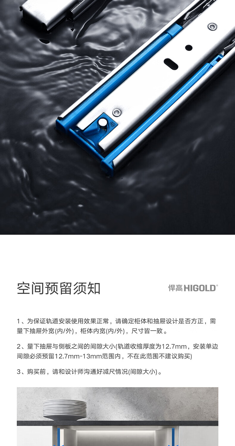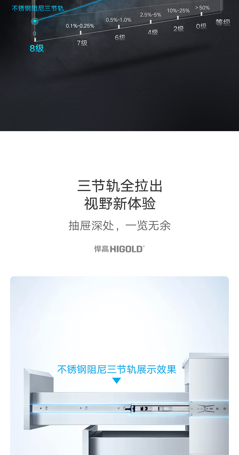 悍高(HIGOLD)抽屉导轨阻尼缓冲滑轨静音三节轨不锈钢液压阻尼20寸1副【500mm】