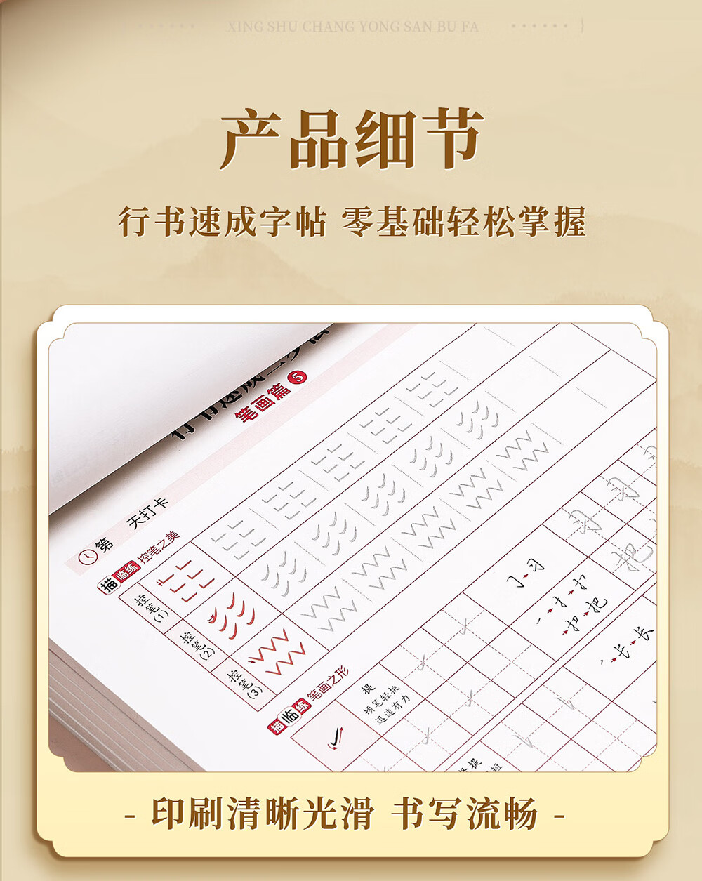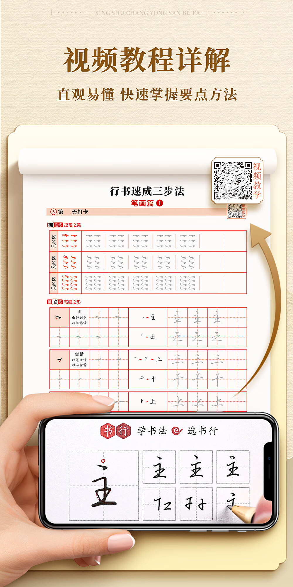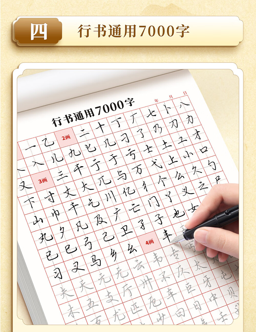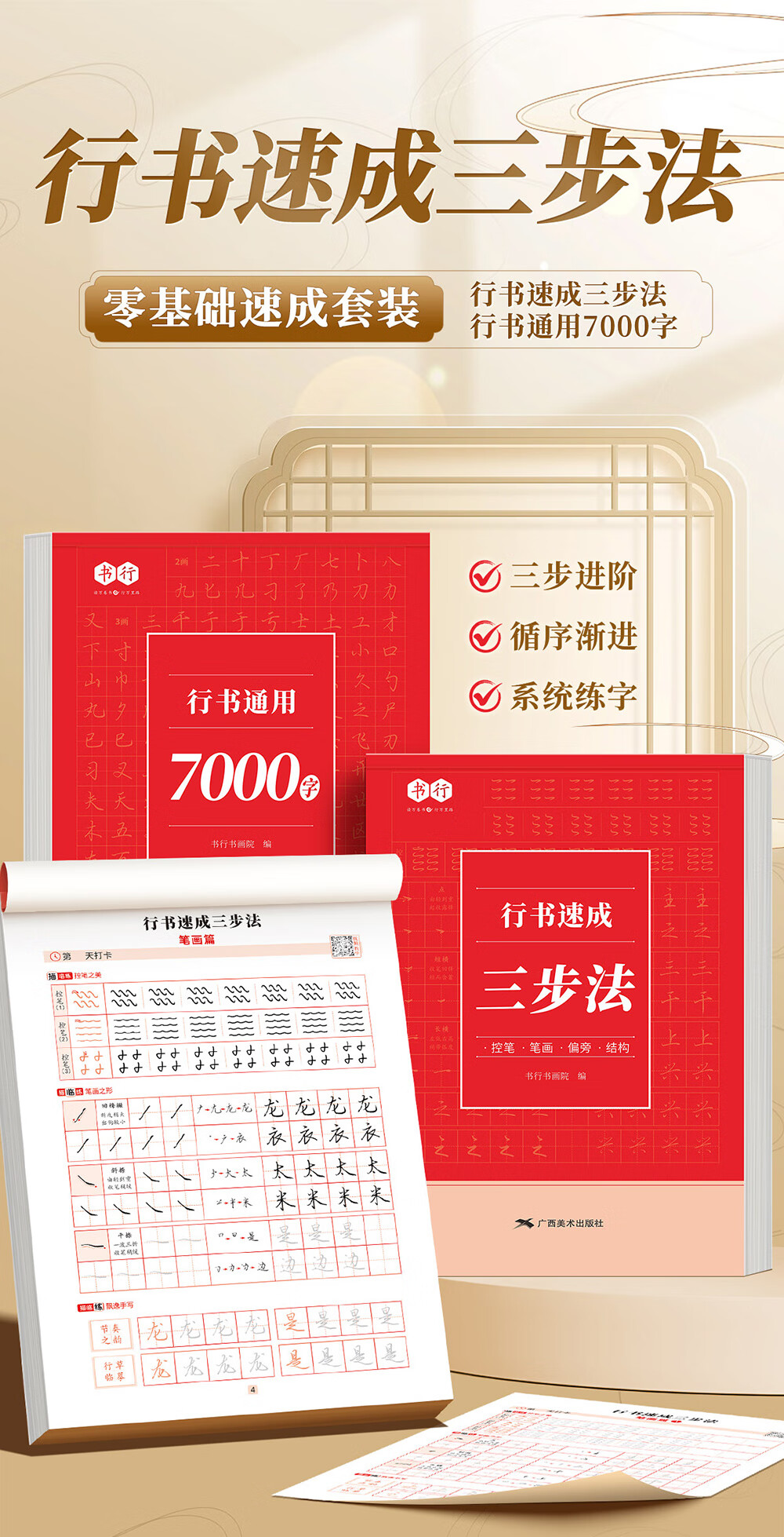 行书成人练字帖速成三步法零基础控笔训练字帖笔画偏旁初高中男女大学生行书专用7000常用字打卡每日一练硬笔钢笔行楷字帖ZF 2本:行书速成三步法+通用7000字