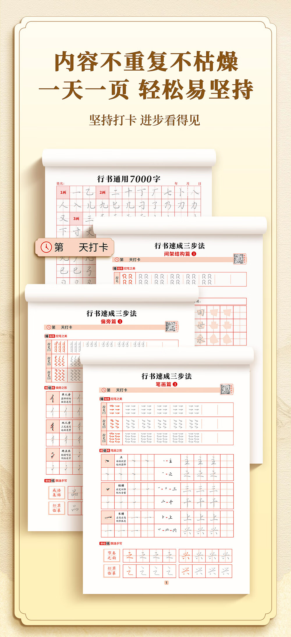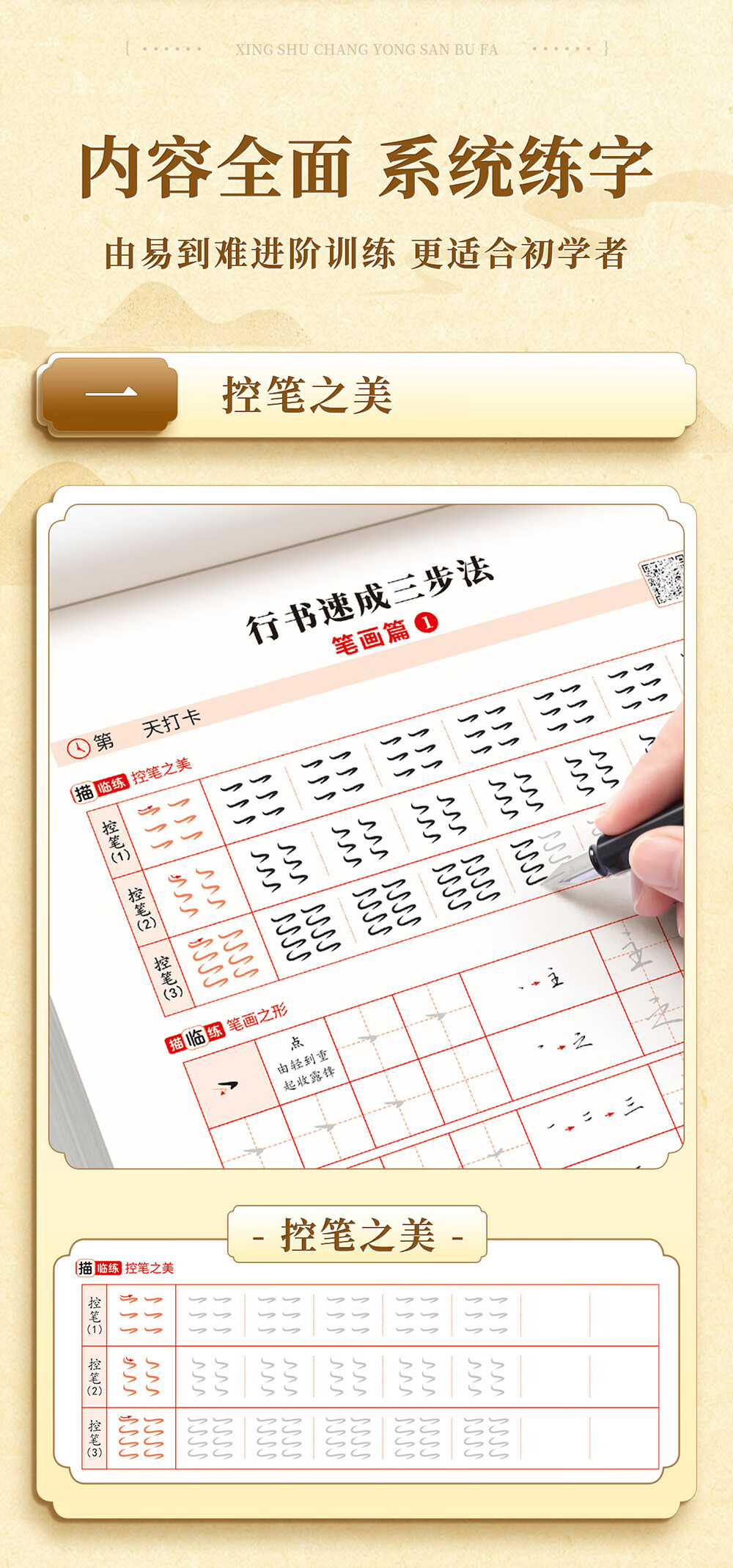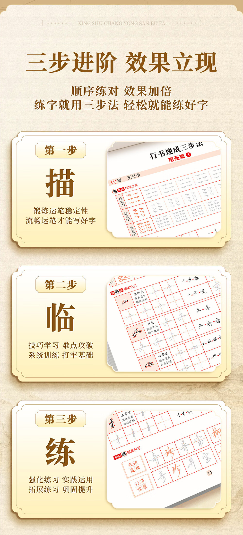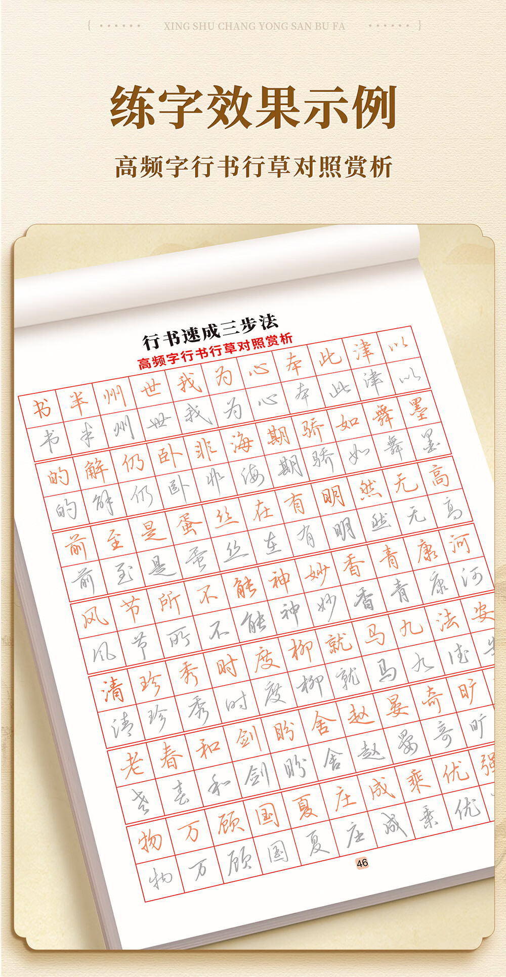 行书成人练字帖速成三步法零基础控笔训练字帖笔画偏旁初高中男女大学生行书专用7000常用字打卡每日一练硬笔钢笔行楷字帖ZF 2本:行书速成三步法+通用7000字