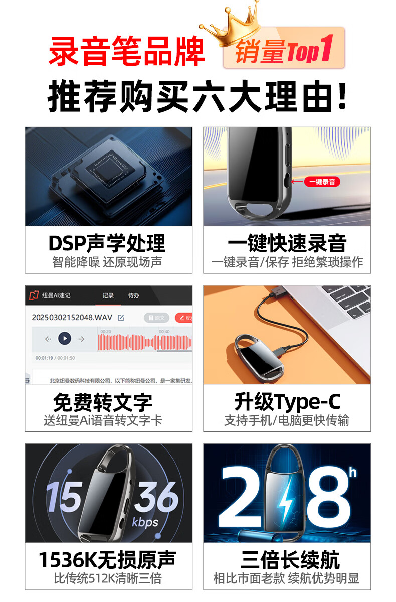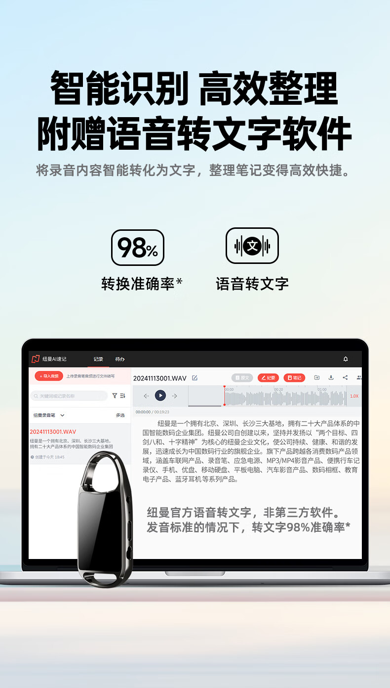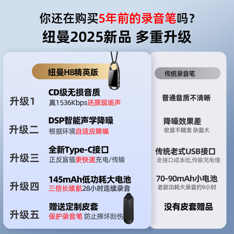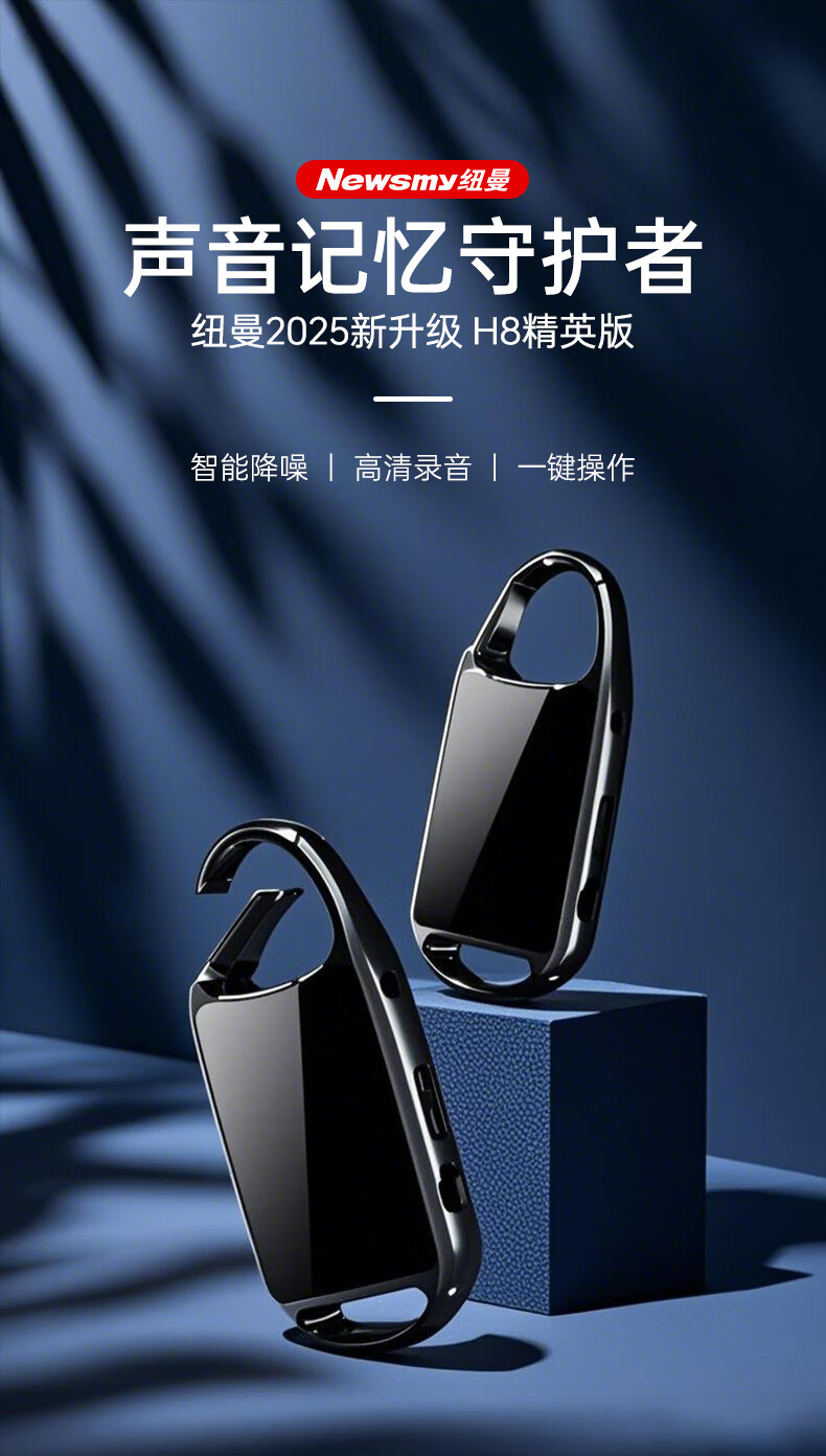 纽曼【律师力荐】32G高清录音笔H8精英版专业随身录音神器钥匙扣形降噪设备便携可连手机小型会议记录