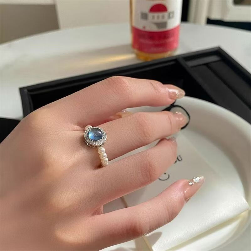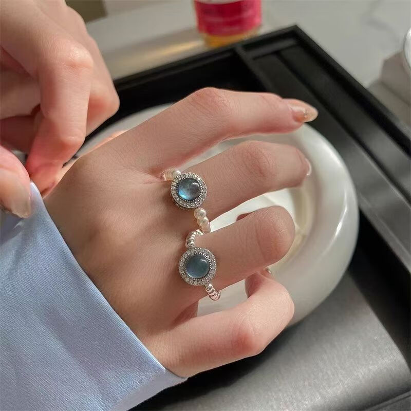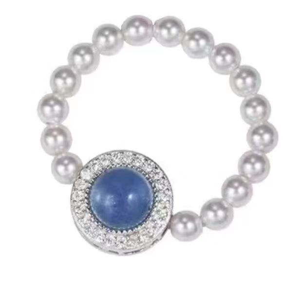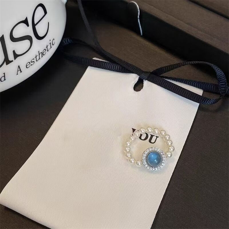 海蓝宝珍珠戒指大海蓝色珍珠指环小众设计高级感气质手饰女个性 蓝宝石珍珠戒指【1个】