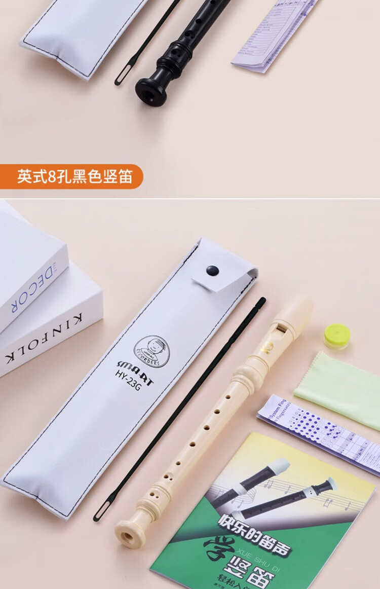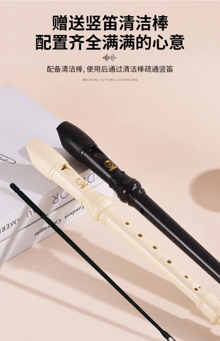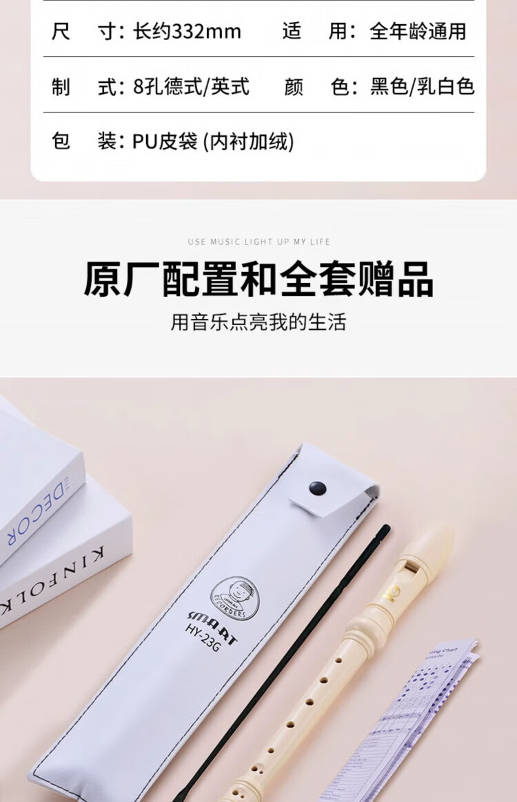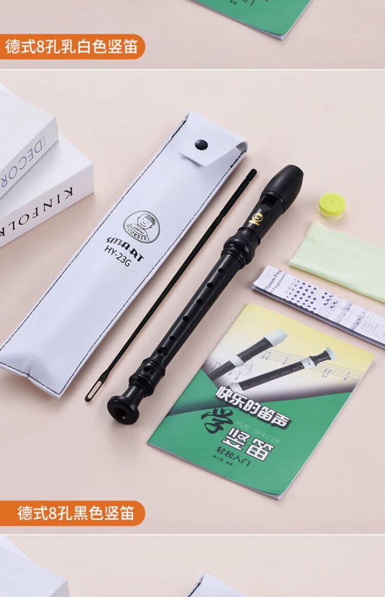 DEATKN德国竖笛8孔高音英式巴洛克式C调HY26BX10德式G学生旗 【初学款】白色高音德式23G+纸质教材