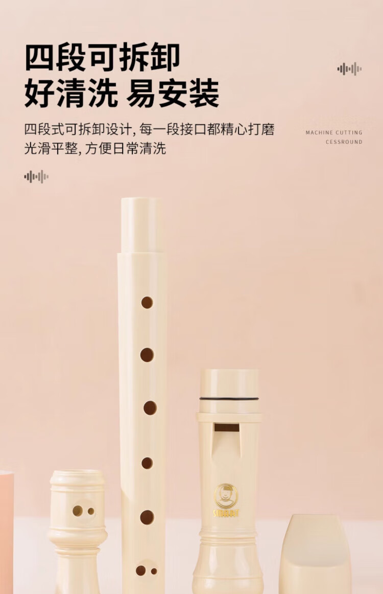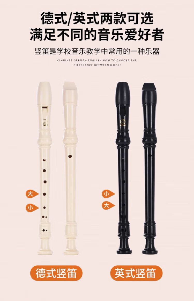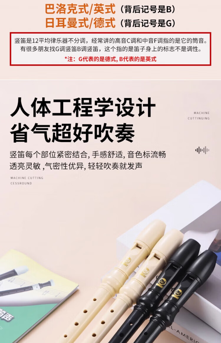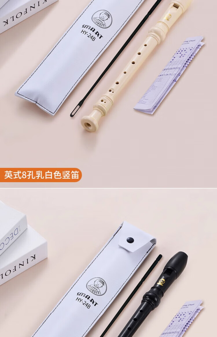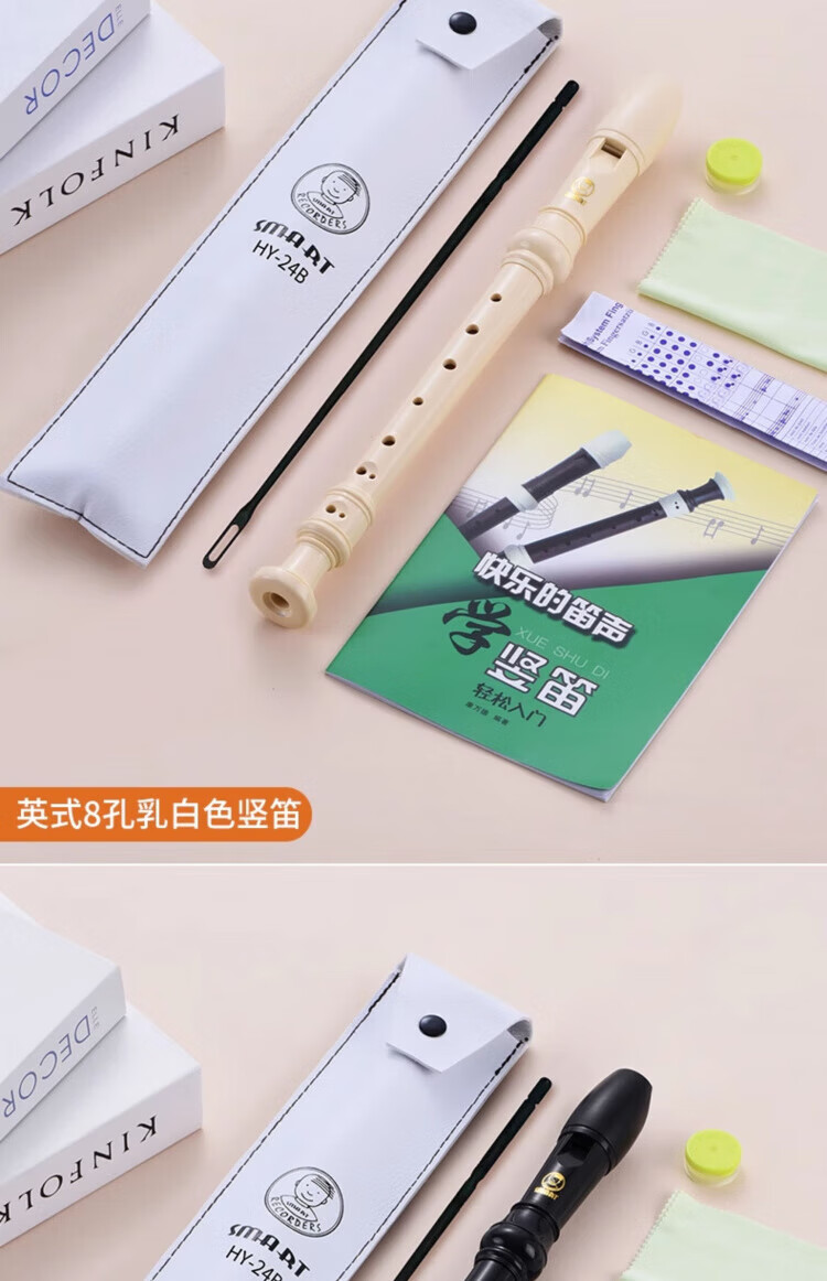 DEATKN德国竖笛8孔高音英式巴洛克式C调HY26BX10德式G学生旗 【初学款】白色高音德式23G+纸质教材