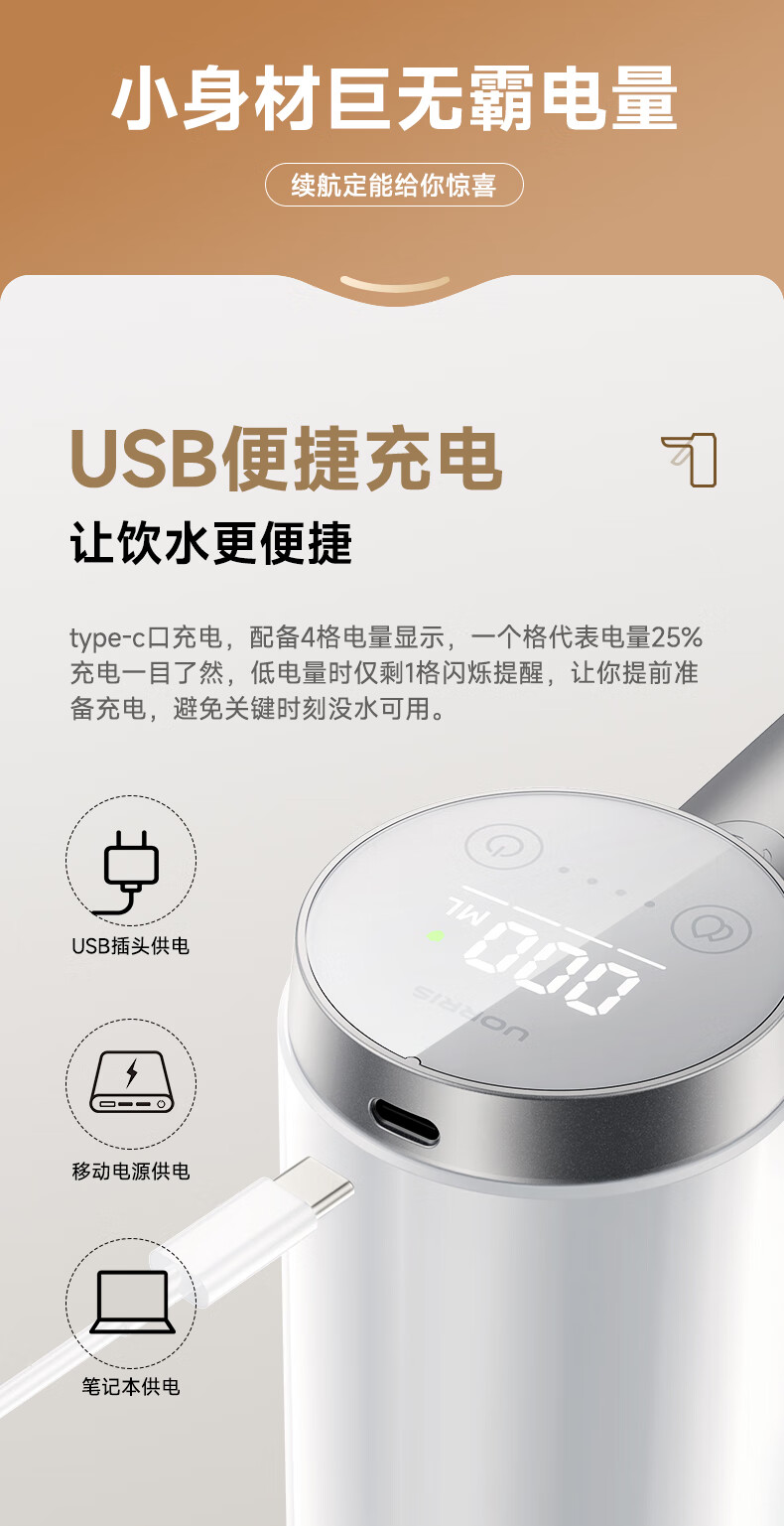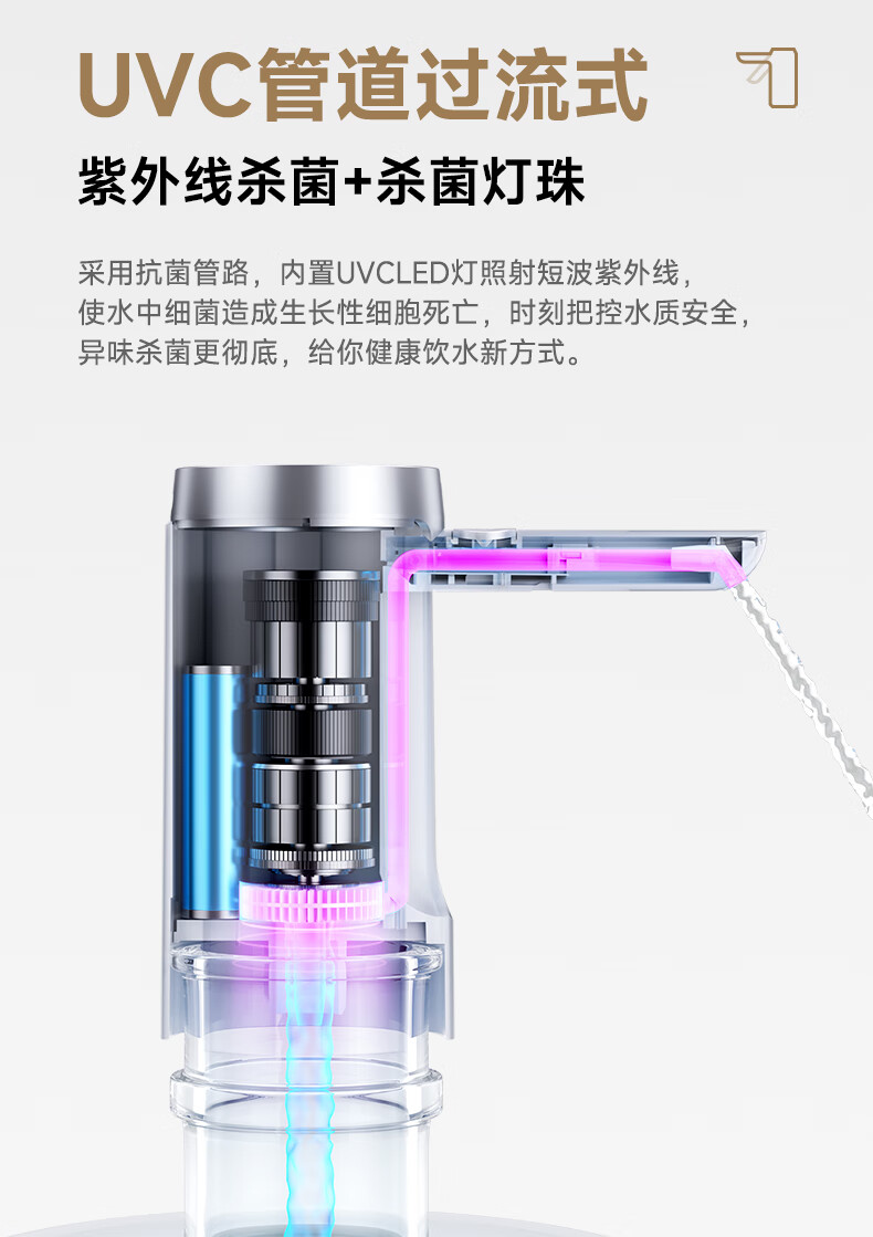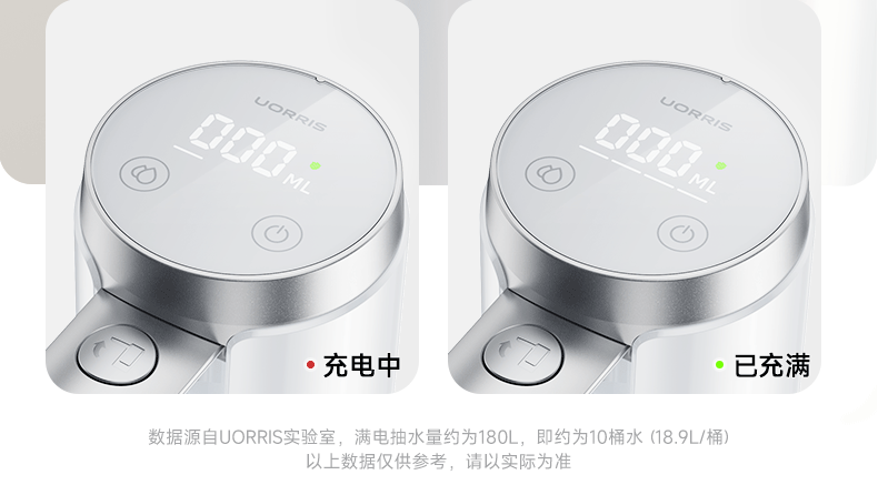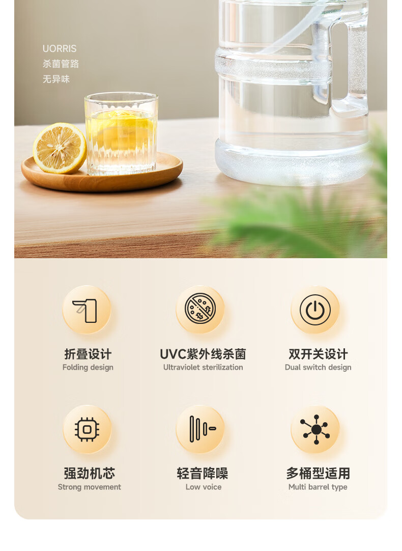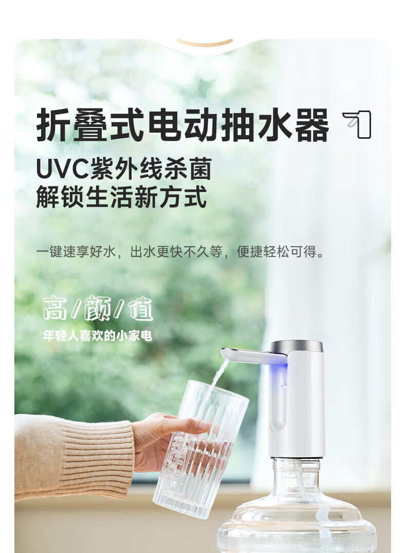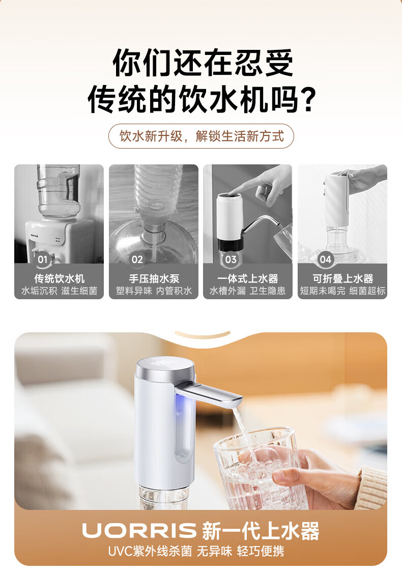 UORRIS德国欧瑞氏抽水器桶装水 杀菌电动饮水机抽水器 矿泉纯净水可折叠自动上水器取水器压水器抽水泵 珍珠白丨食品级材质 UVC强效杀菌丨5550mWh大容量丨可续航60天