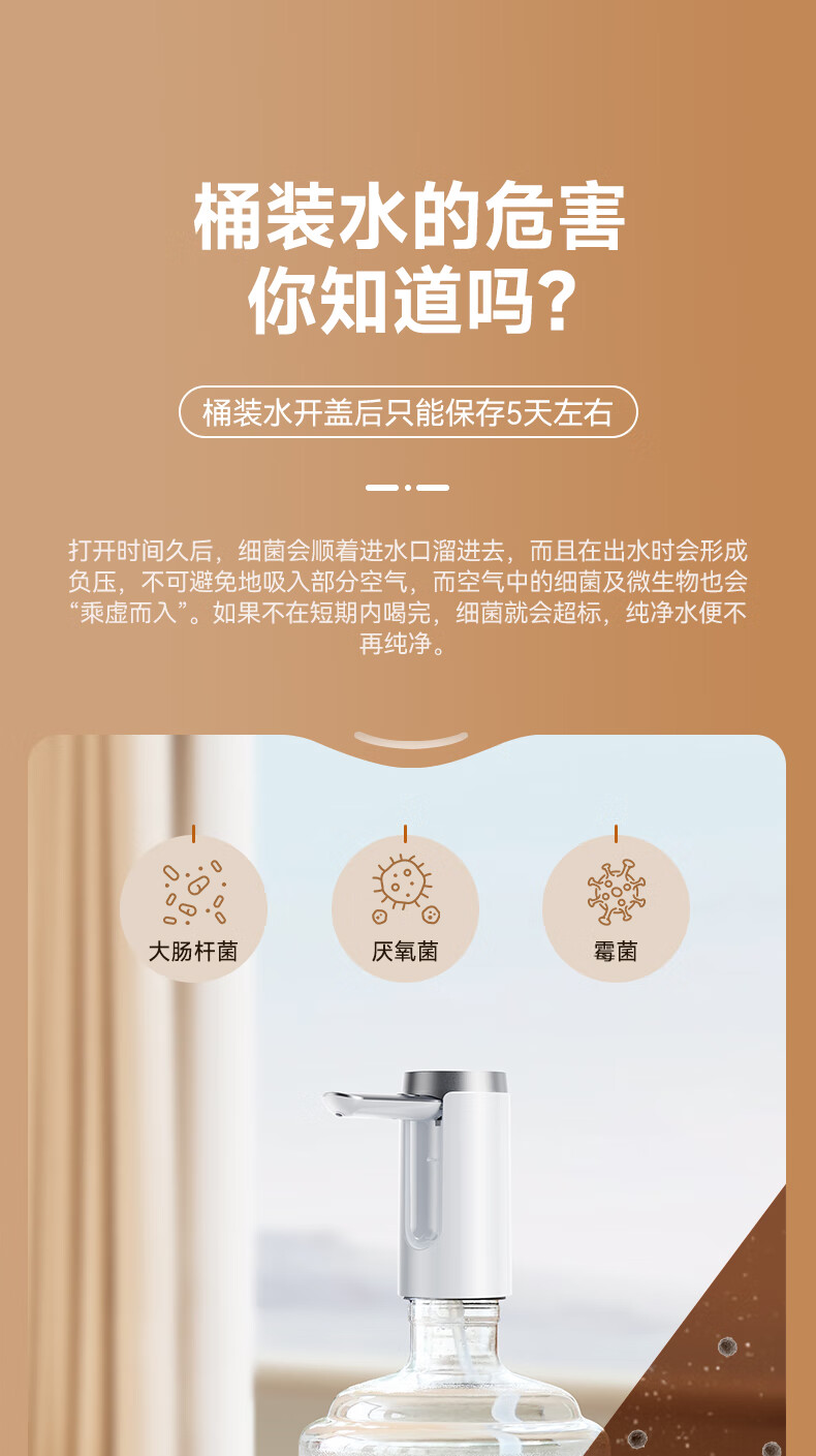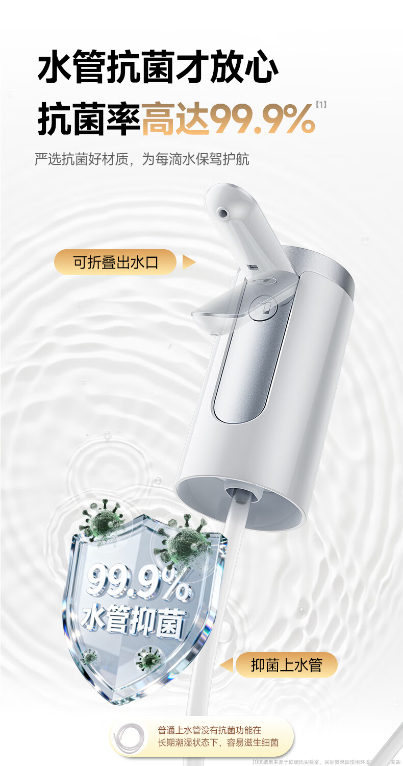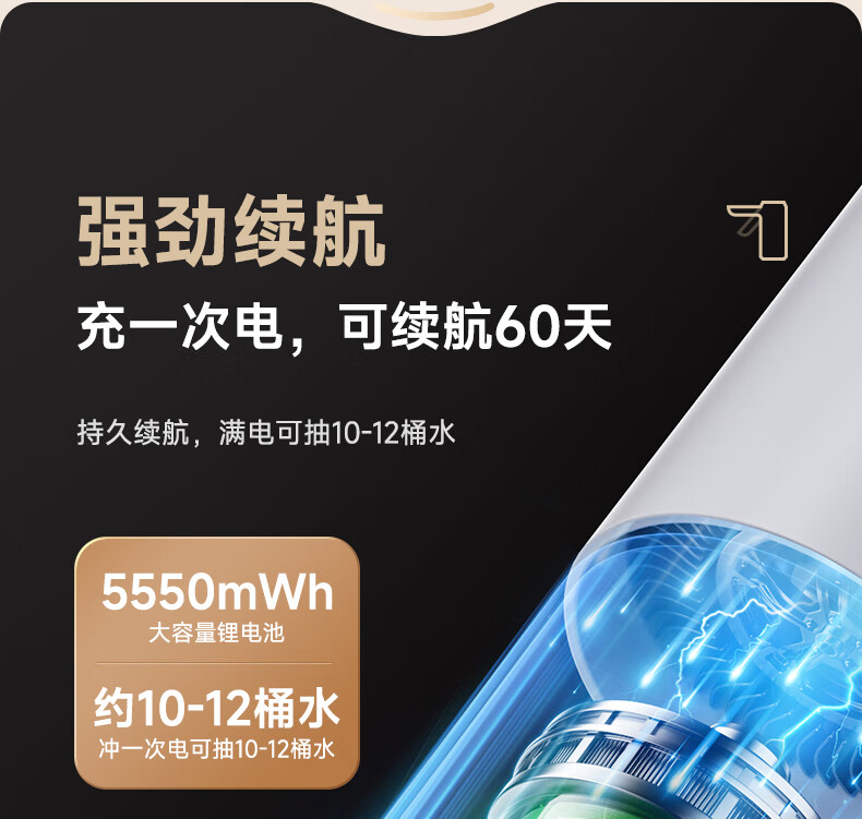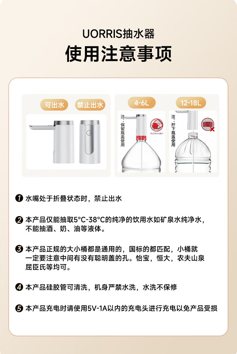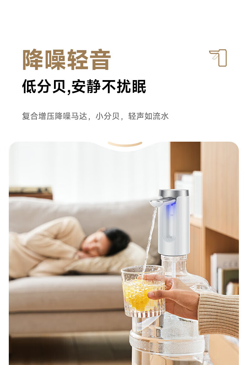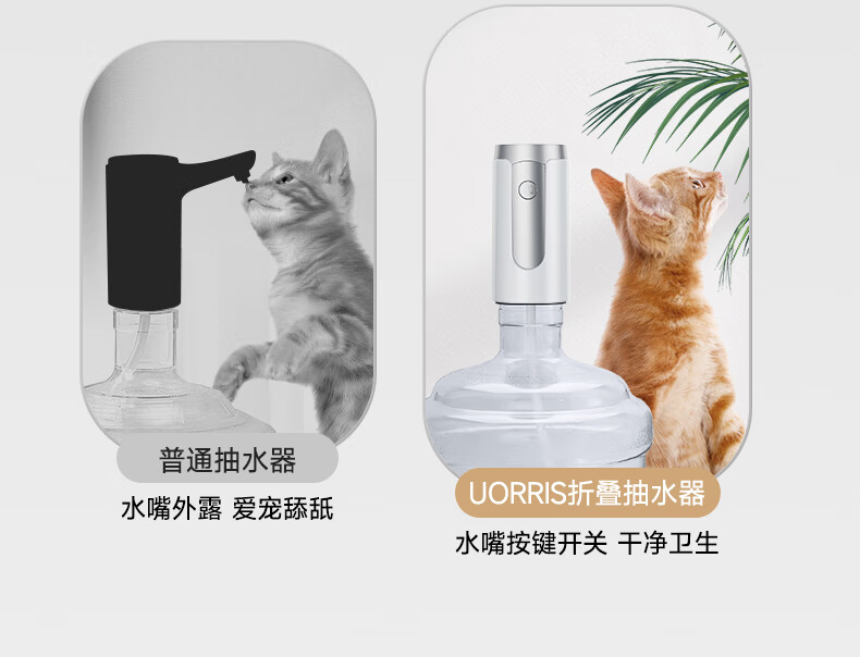 UORRIS德国欧瑞氏抽水器桶装水 杀菌电动饮水机抽水器 矿泉纯净水可折叠自动上水器取水器压水器抽水泵 珍珠白丨食品级材质 UVC强效杀菌丨5550mWh大容量丨可续航60天