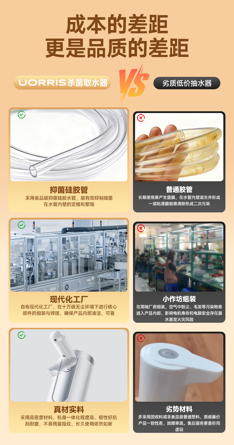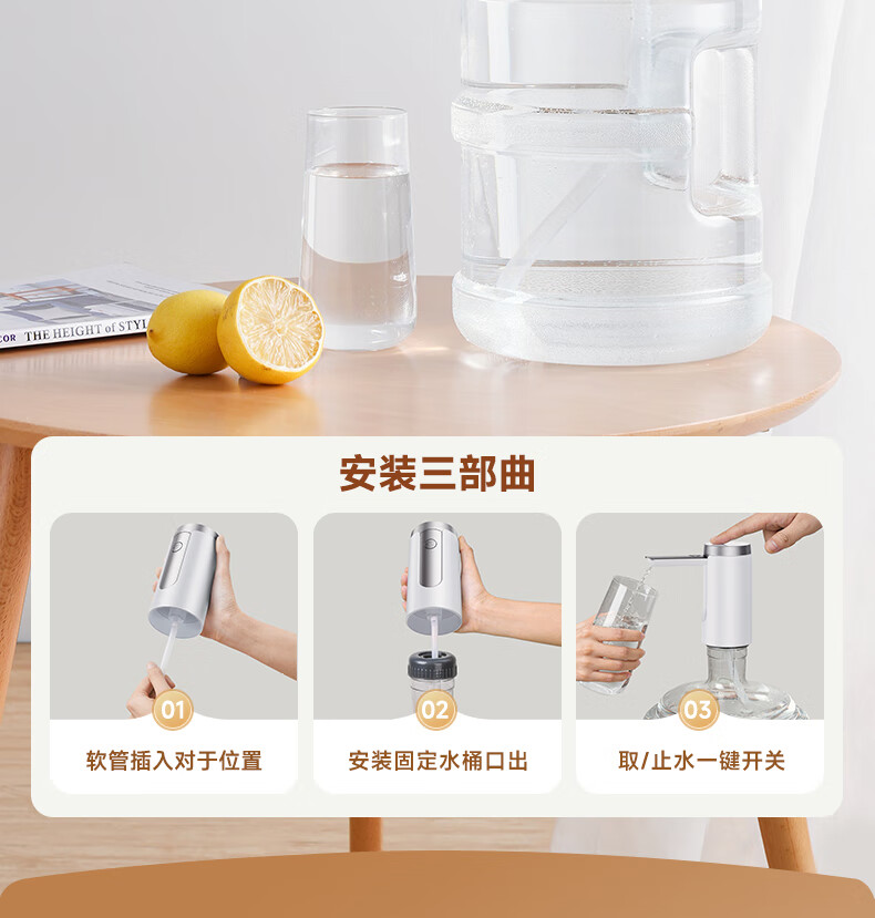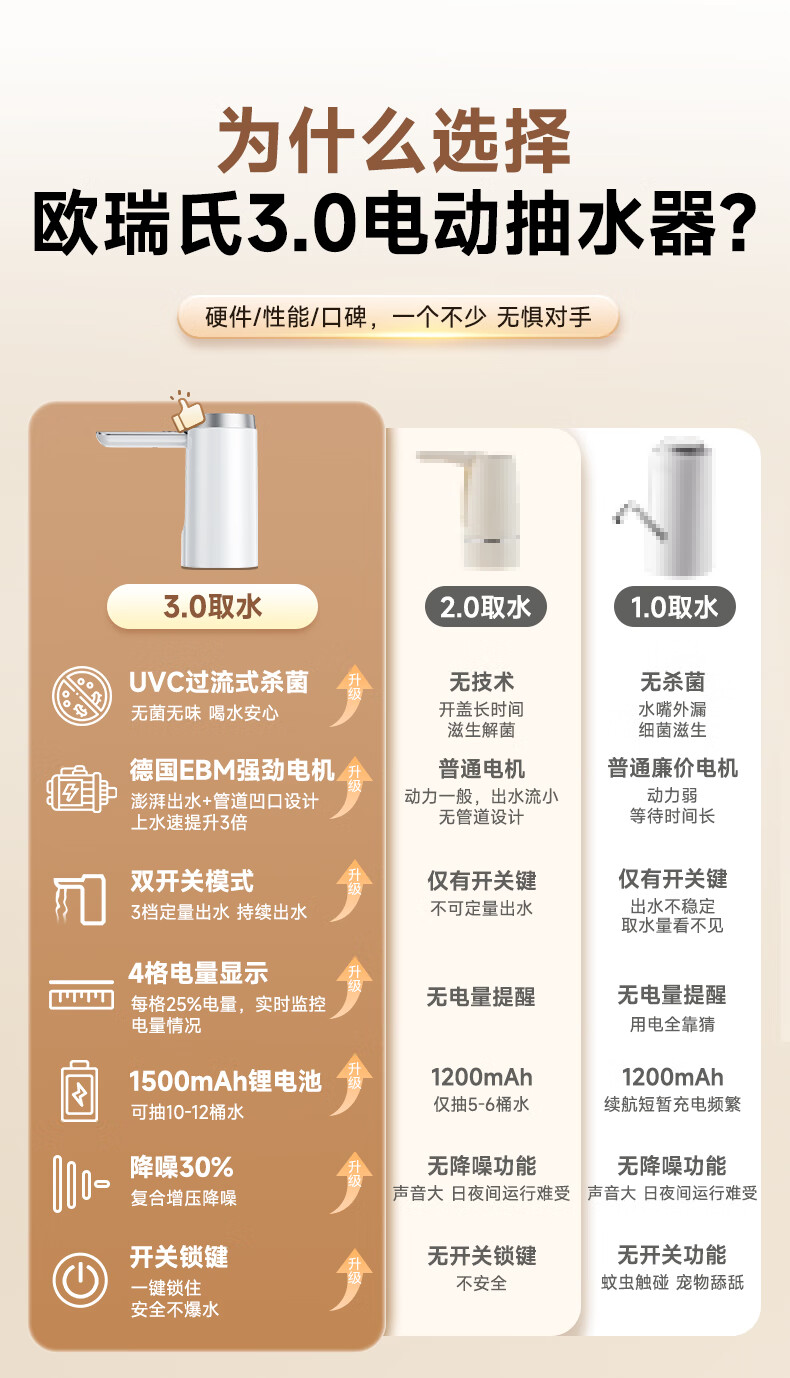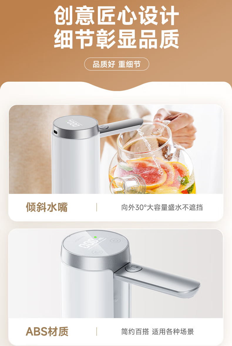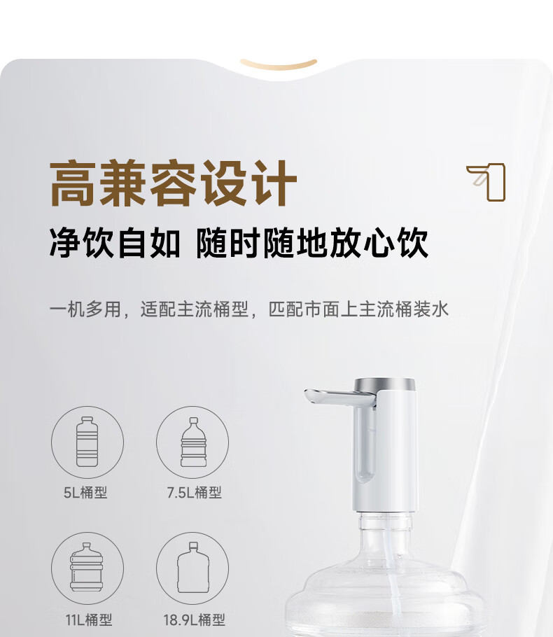 UORRIS德国欧瑞氏抽水器桶装水 杀菌电动饮水机抽水器 矿泉纯净水可折叠自动上水器取水器压水器抽水泵 珍珠白丨食品级材质 UVC强效杀菌丨5550mWh大容量丨可续航60天