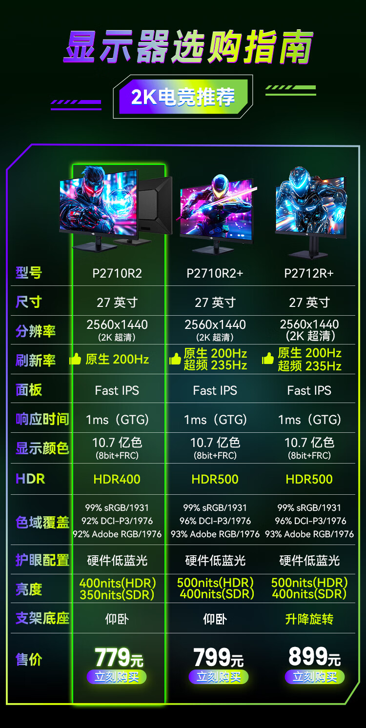 泰坦军团27英寸 2K高清 原生200Hz 专业电竞显示器 FastIPS硬件低蓝光HDR400广色域1ms 10Bit高刷版P2710R2