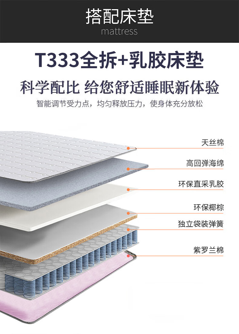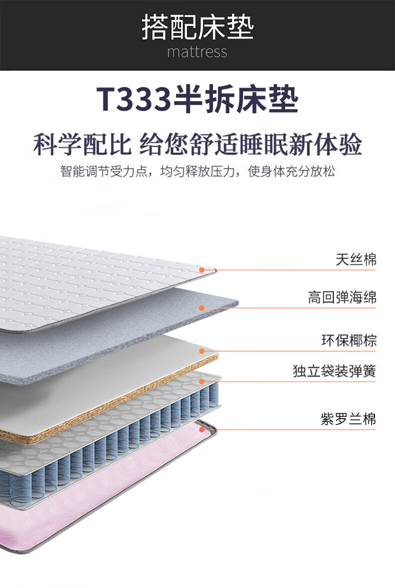惠寻 京东自有品牌 床新中式全实木实木床1.5米单人床1.8米x2米双人床 胡桃木单床 1800mm*2000mm框架结构