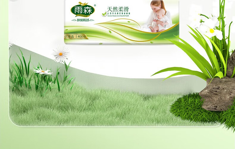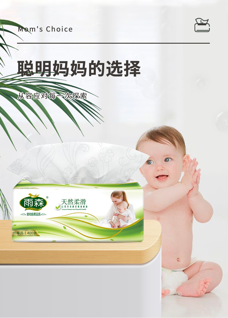 雨森(YUSEN)天然柔滑妇婴抽纸面巾纸餐巾纸可湿水干湿两用400张大规格4层加厚 4层 100抽*18包