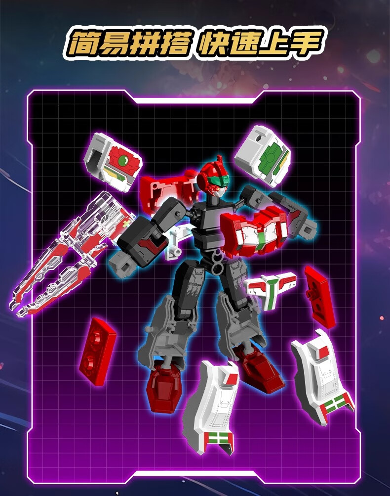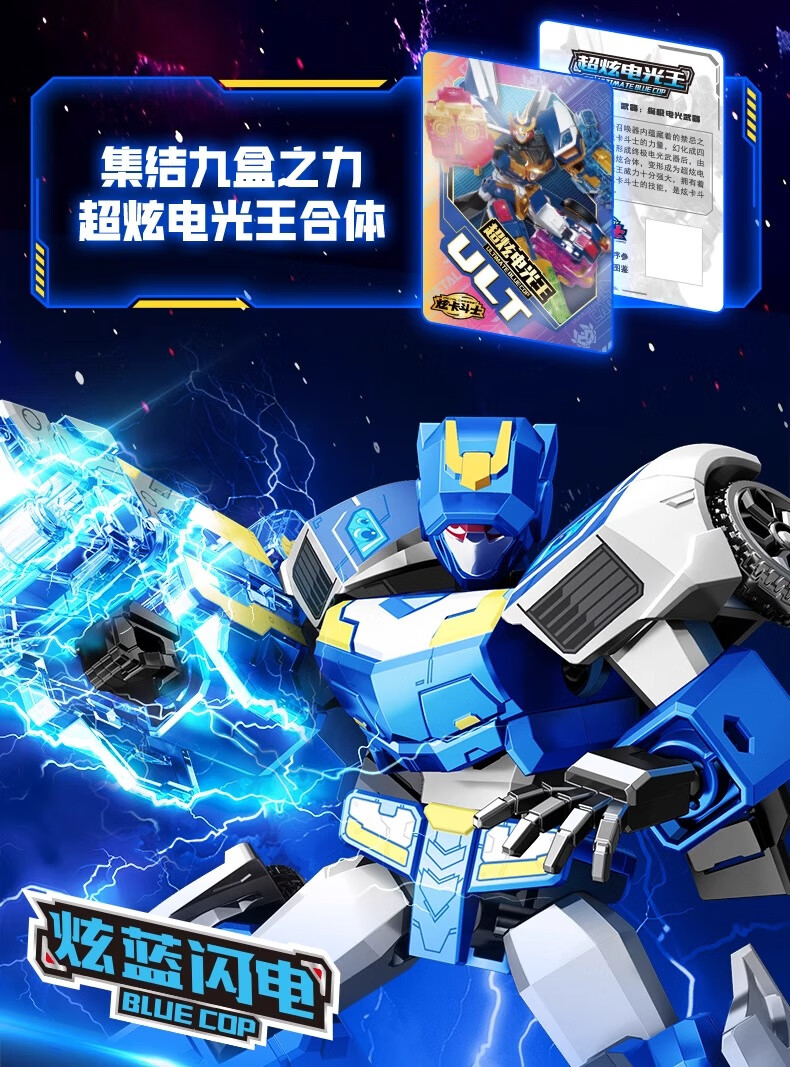 语森忆超炫电光王炫卡斗士炫蓝闪电拼装盲盒儿童变形玩具积木人 拼装版炫卡斗士盲盒1款试手气角
