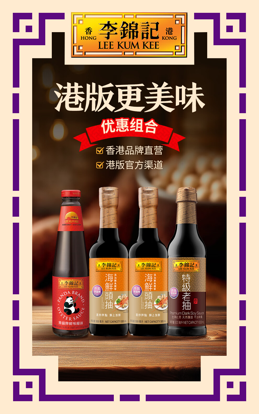 李锦记【港版海鲜组合】特级老抽+熊猫牌鲜味蚝油+海鲜头抽2支 炒菜清蒸