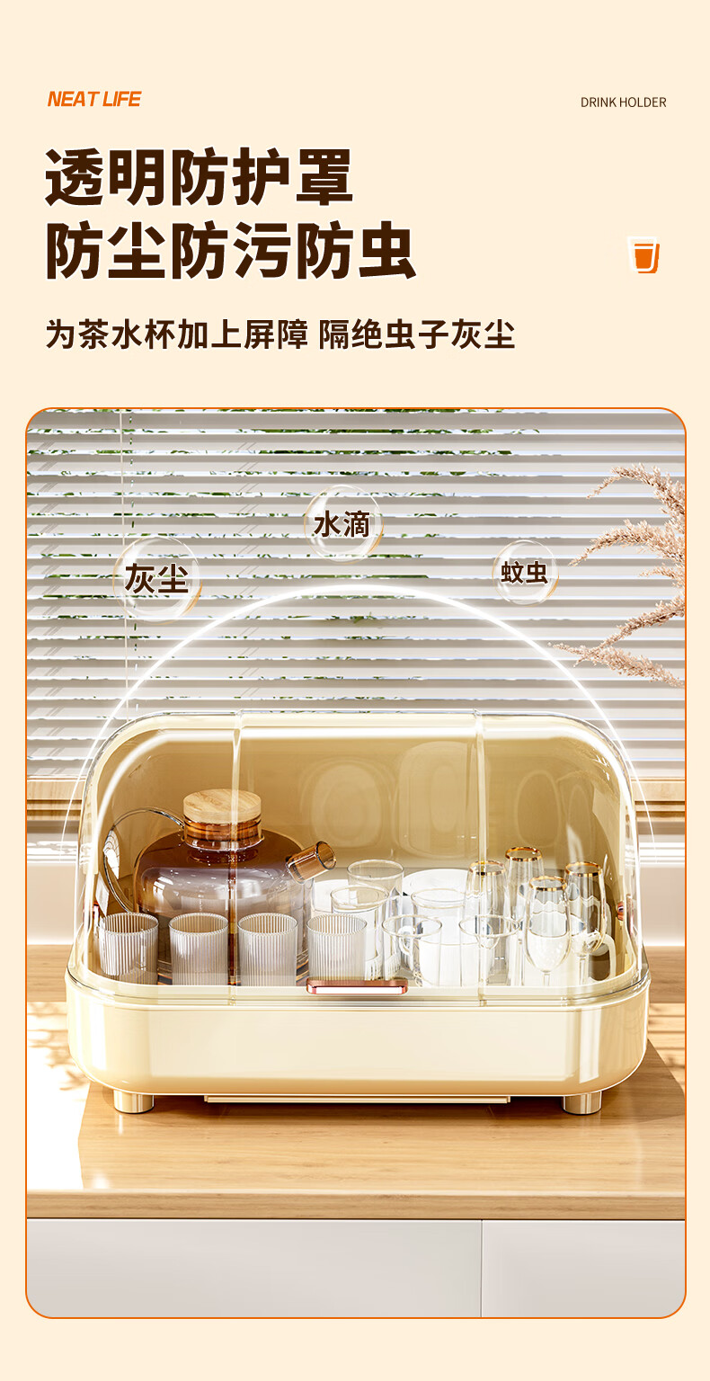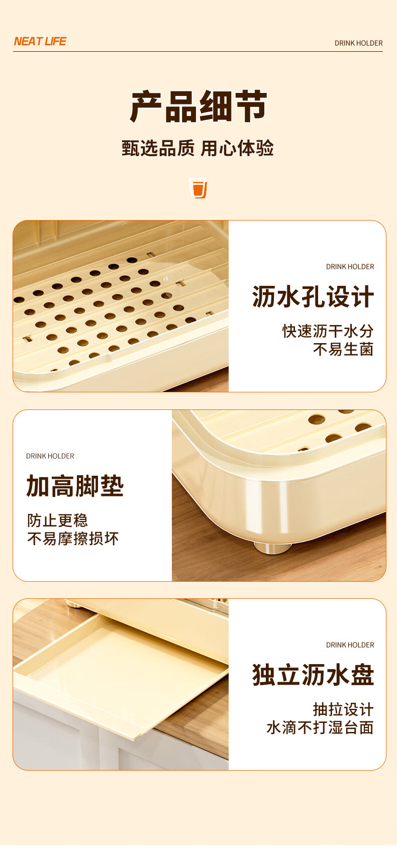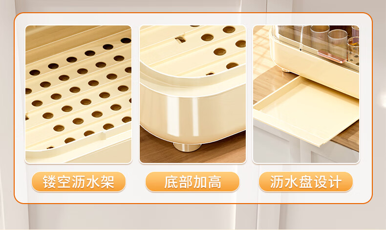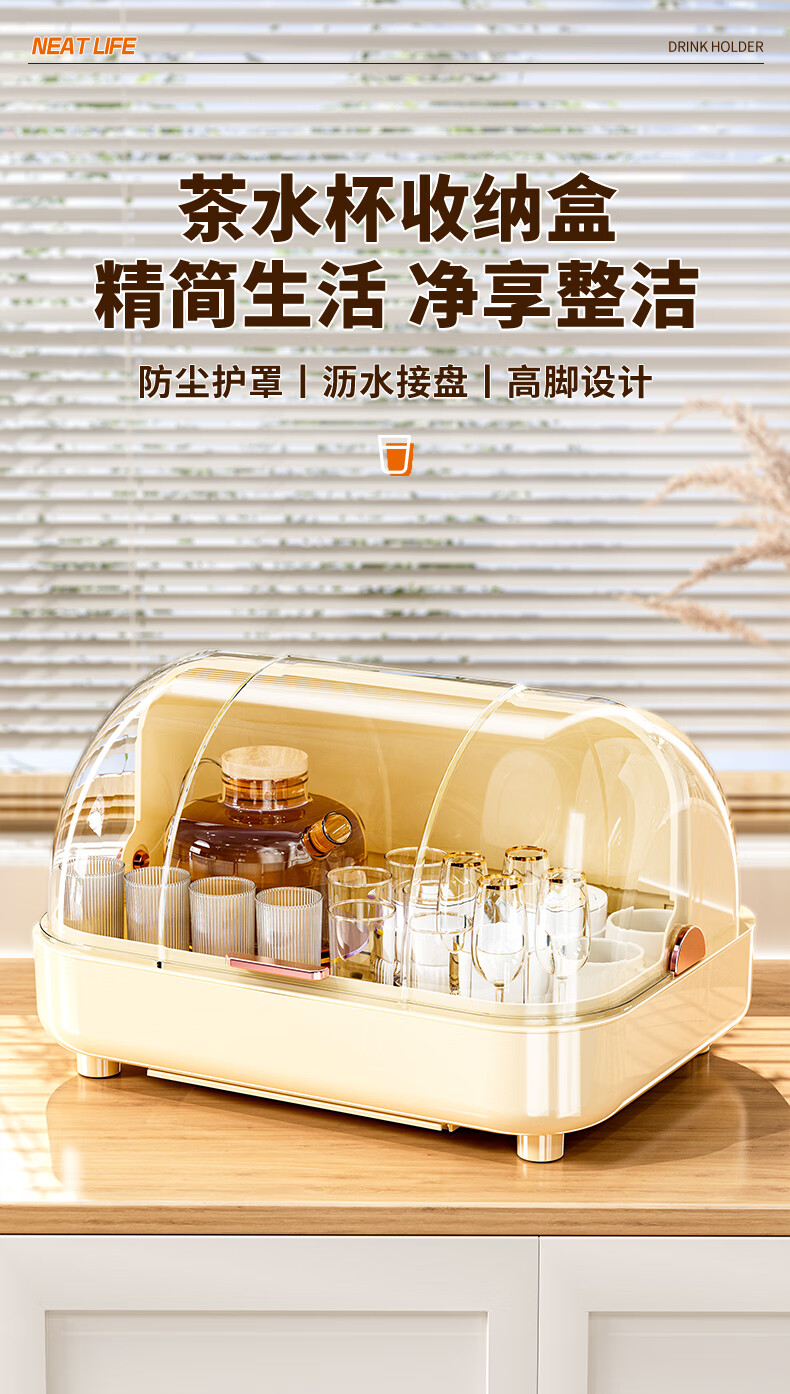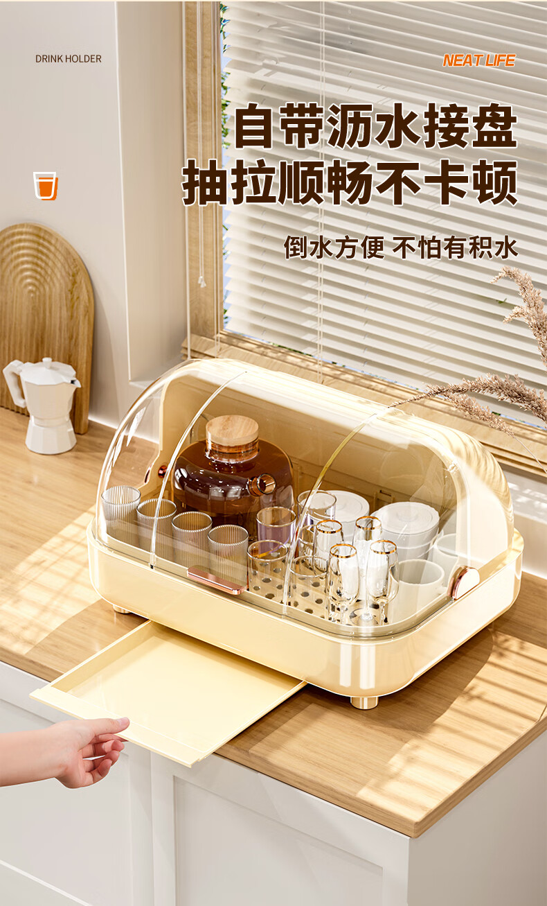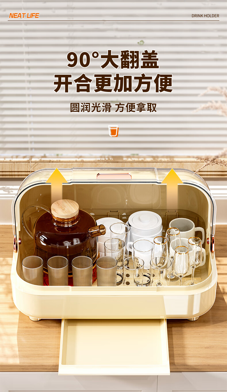 邦尼美家杯子置物架桌面防尘沥水双层茶杯茶具收纳盒餐边柜咖啡水杯收纳架 奶白色-水杯架【带沥水接盘】 放心购(甄选PP材质 无异味)