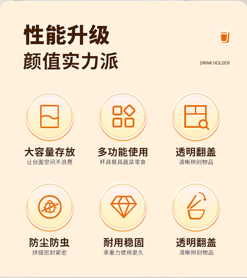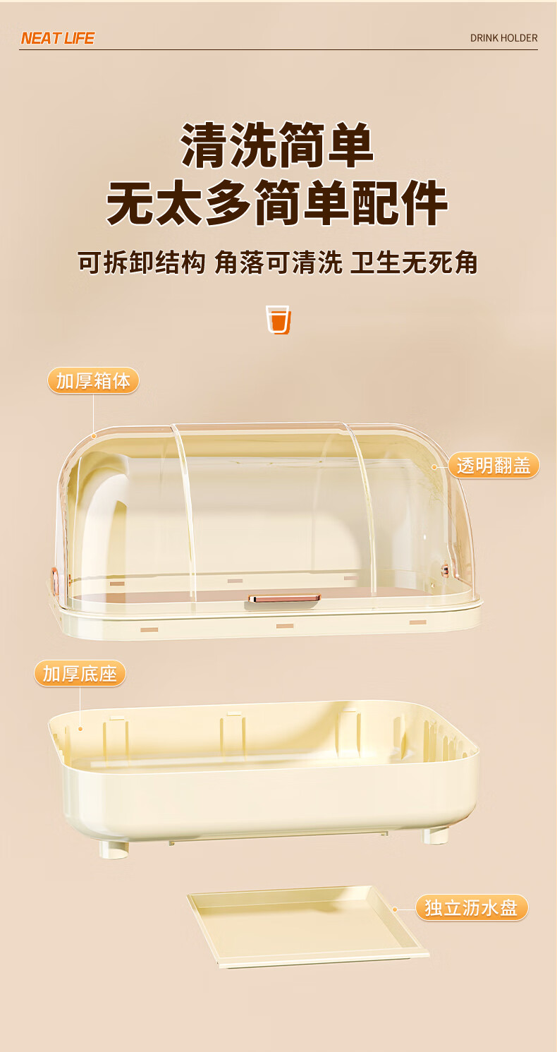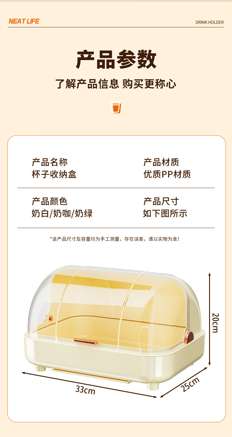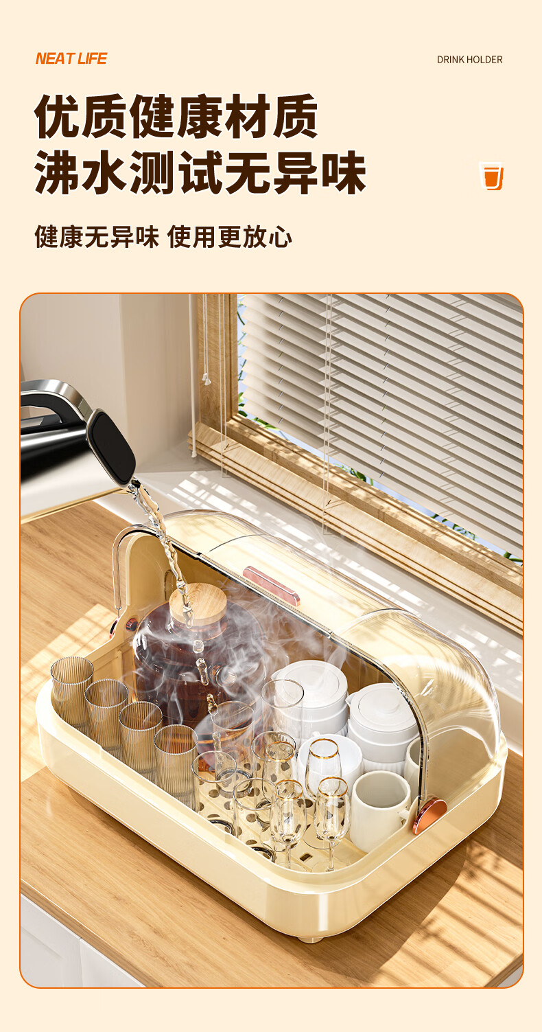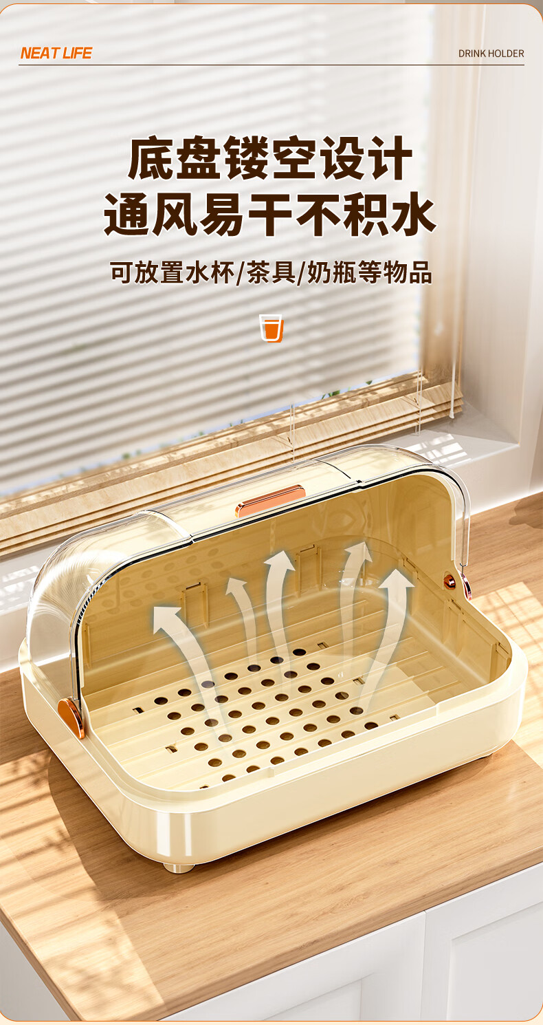 邦尼美家杯子置物架桌面防尘沥水双层茶杯茶具收纳盒餐边柜咖啡水杯收纳架 奶白色-水杯架【带沥水接盘】 放心购(甄选PP材质 无异味)