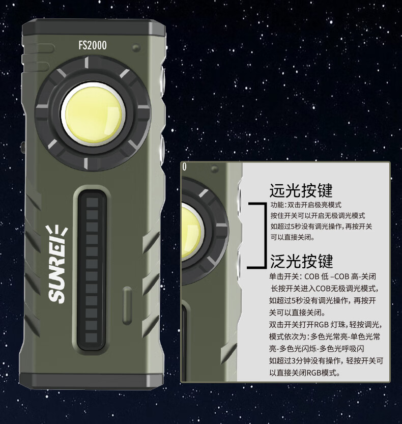 神火多功能强光手电筒聚泛一体露营灯户外1100流明爆亮长续航防水 F1-G多功能