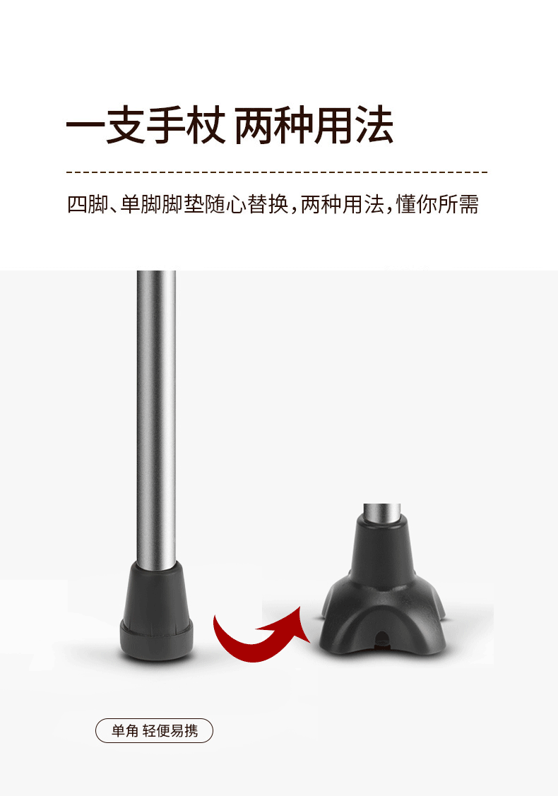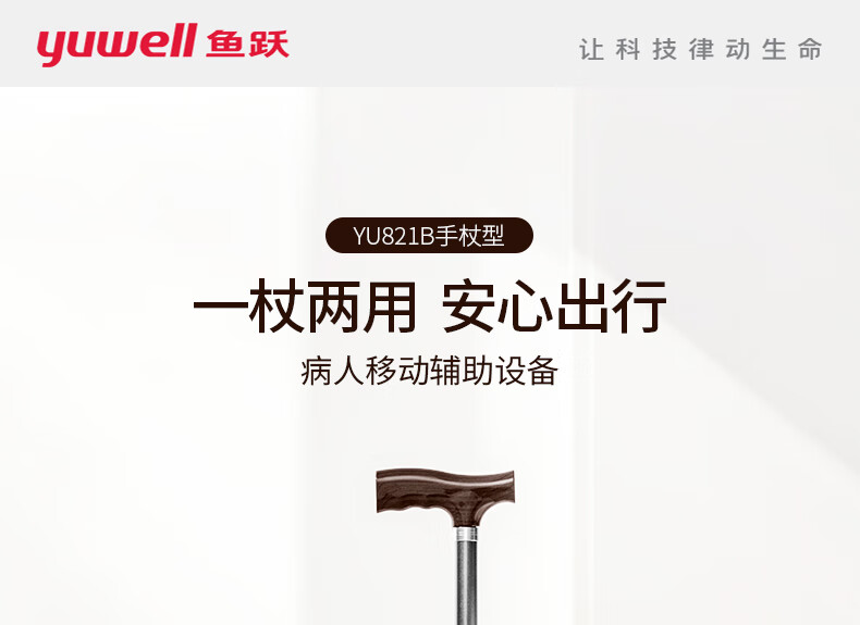 鱼跃(Yuwell)老人拐杖YU821B四脚助行器铝合金轻便伸缩手杖棍登山杖四脚防滑