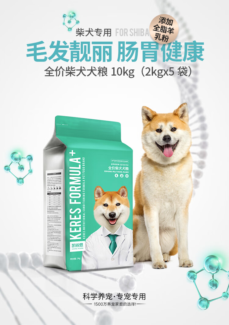 凯锐思 日本柴犬狗粮专用秋田犬幼犬成犬通用10kg专用粮20斤