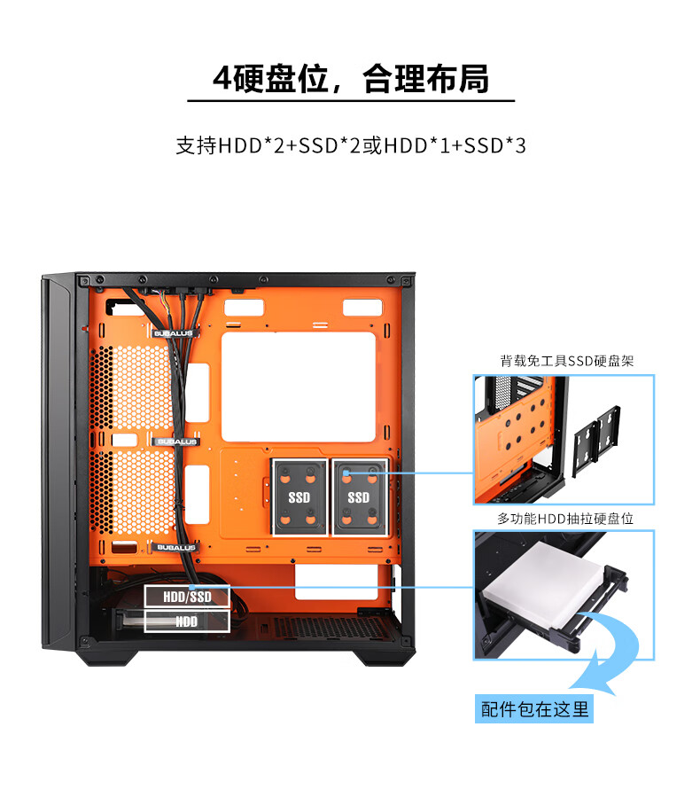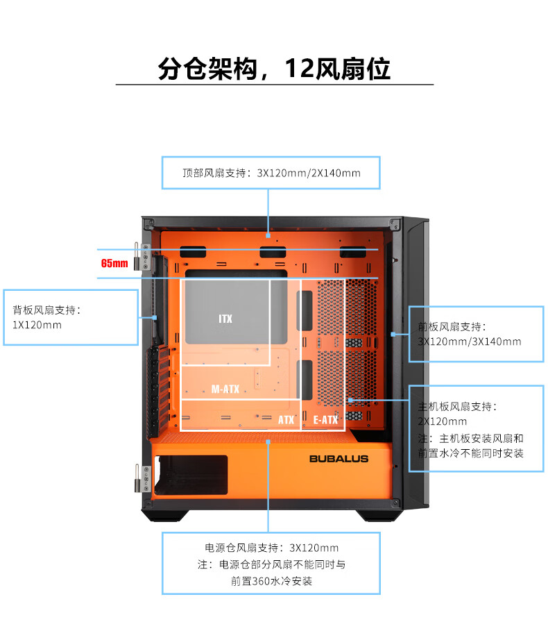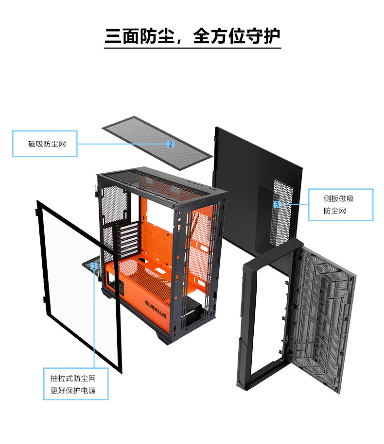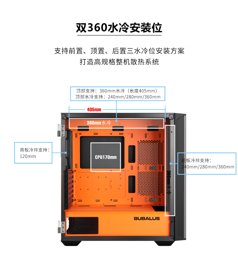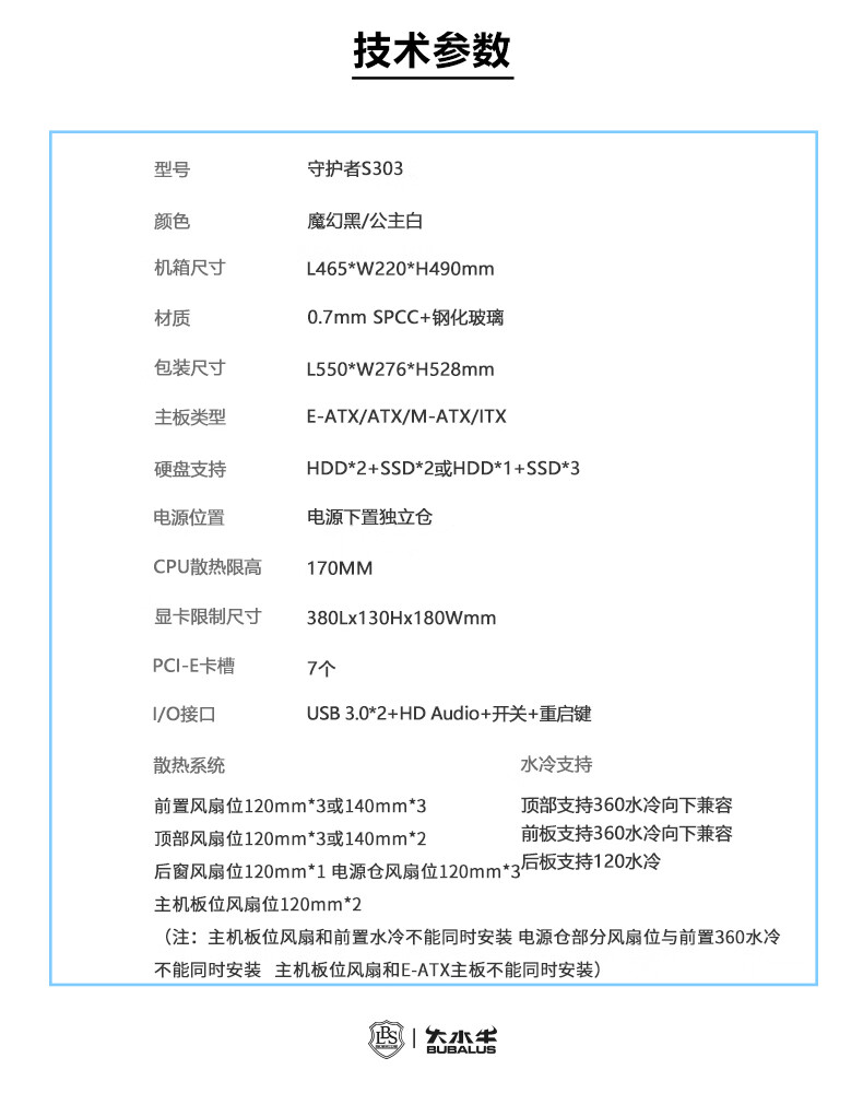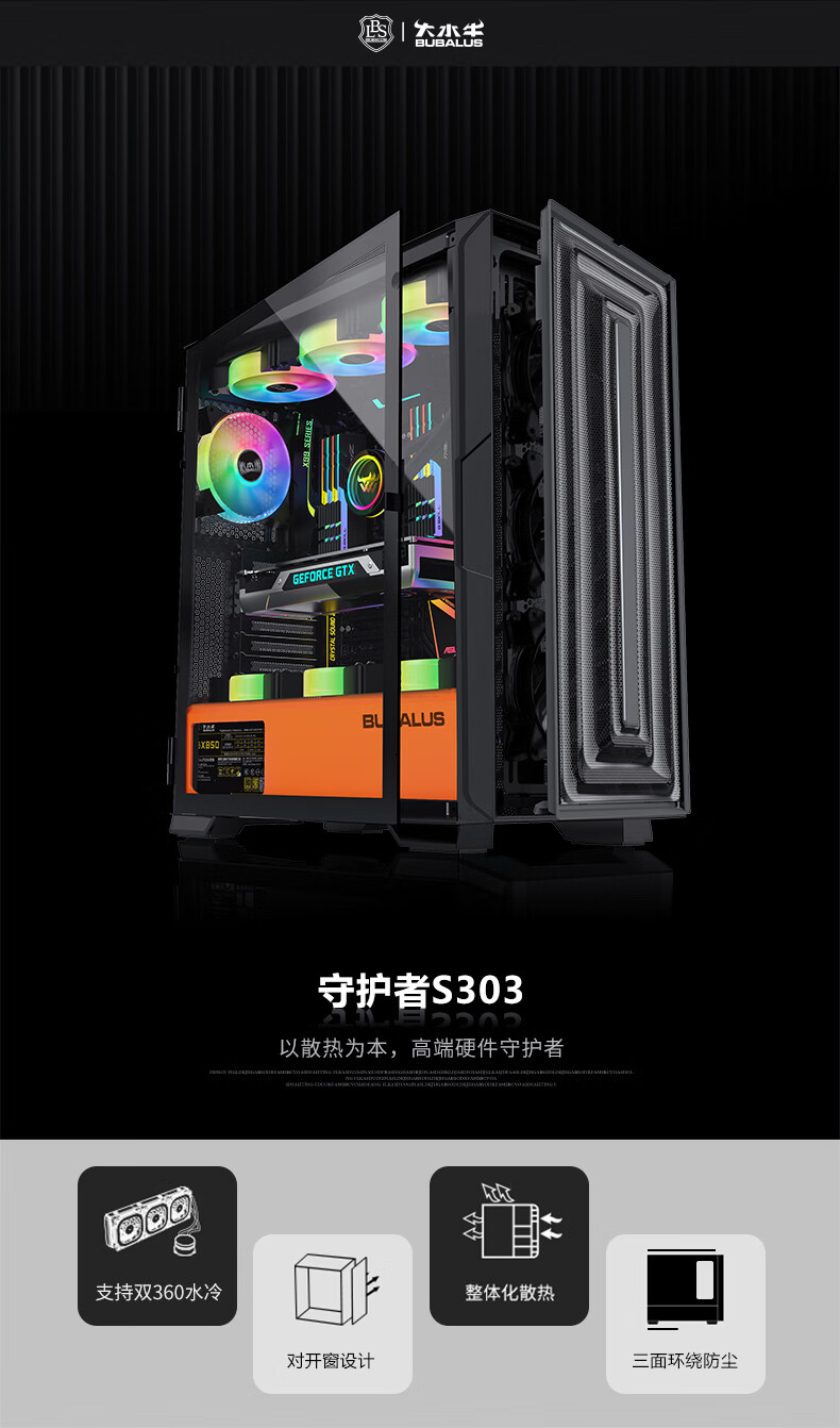 大水牛(BUBALUS)守护者S303 黑色 电脑台式主机箱(顶置+前置双360水冷位/支持E-ATX/玻璃全侧透/12风扇位)