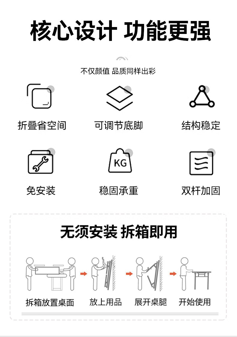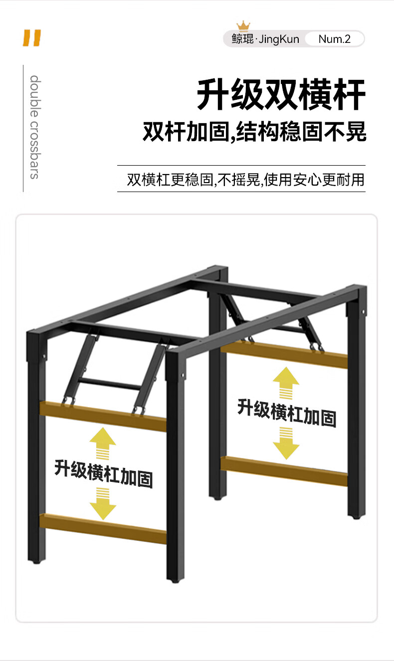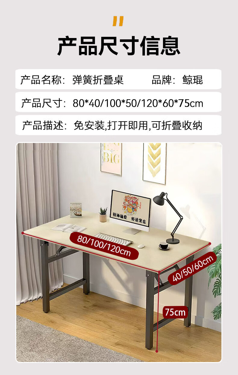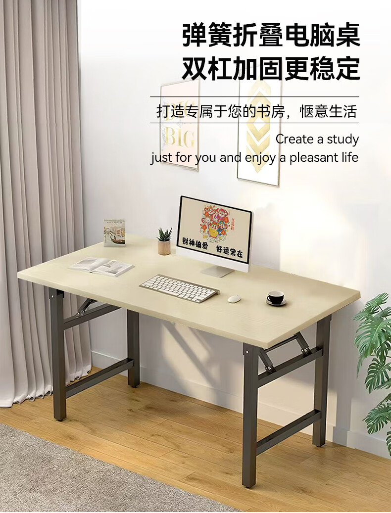 鲸琨折叠电脑桌简易双杆加固弹簧桌家用办公工作台学习写字长条书桌子