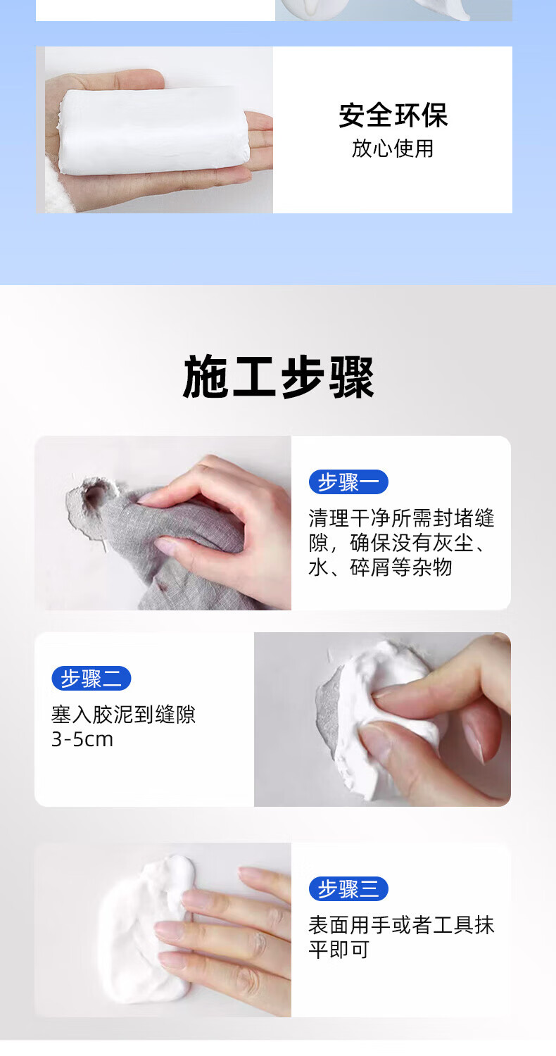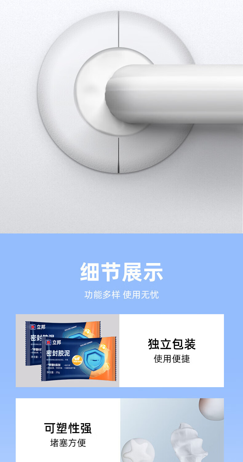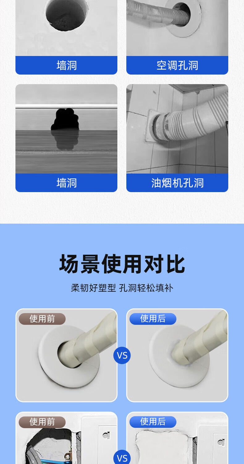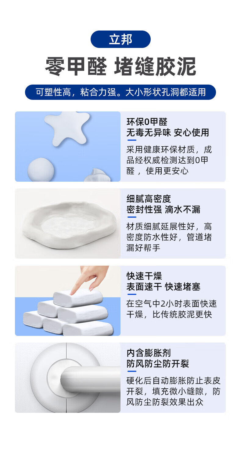 立邦密封胶泥空调孔墙壁孔下水管堵洞胶防老鼠堵洞神器下水道防水堵漏 3包【防霉+0甲醛】堵小洞