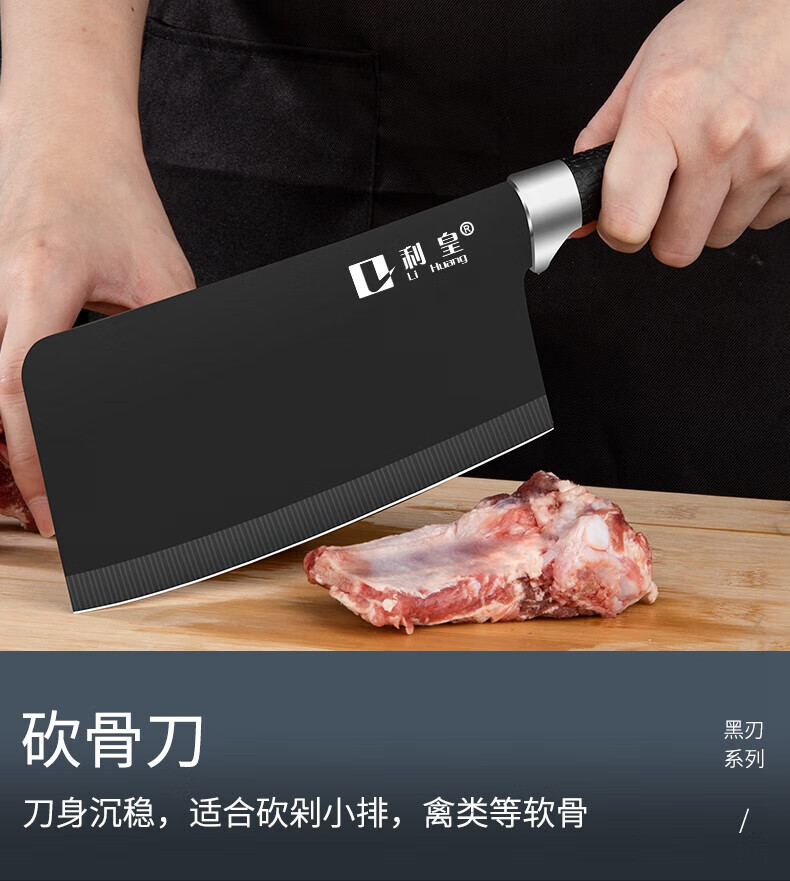 若拉淇轴承钢锻打刀手工锻打不锈钢斩骨刀切片刀厨师专用刀阳江厨房刀具 圆实木手柄斩切两用刀