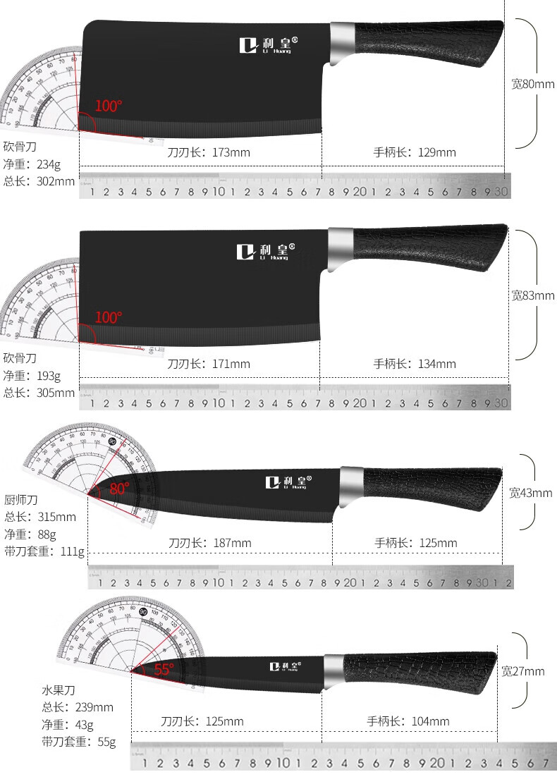 利皇刀具套装家用女士菜刀切片刀切菜刀切肉刀水果刀厨房 8件套