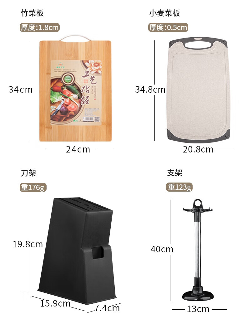 切菜刀菜板二合一家用厨房刀具案砧板套装全套厨具辅食工具水果刀 斜尾木纹三套装