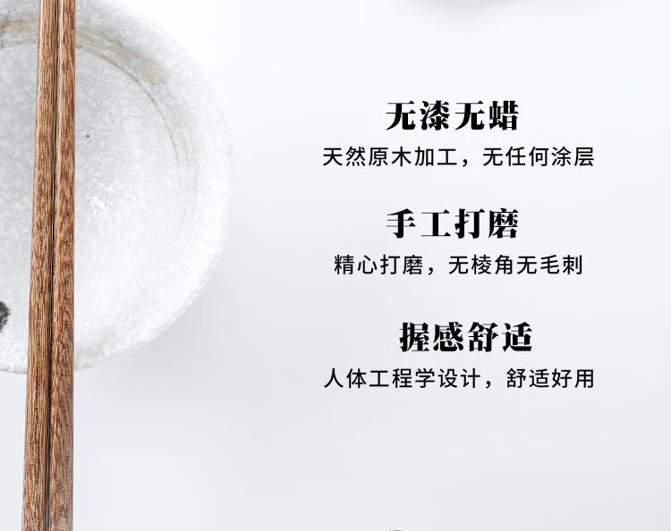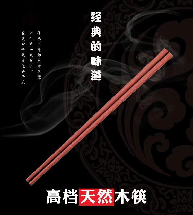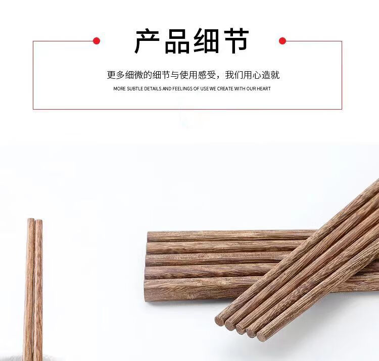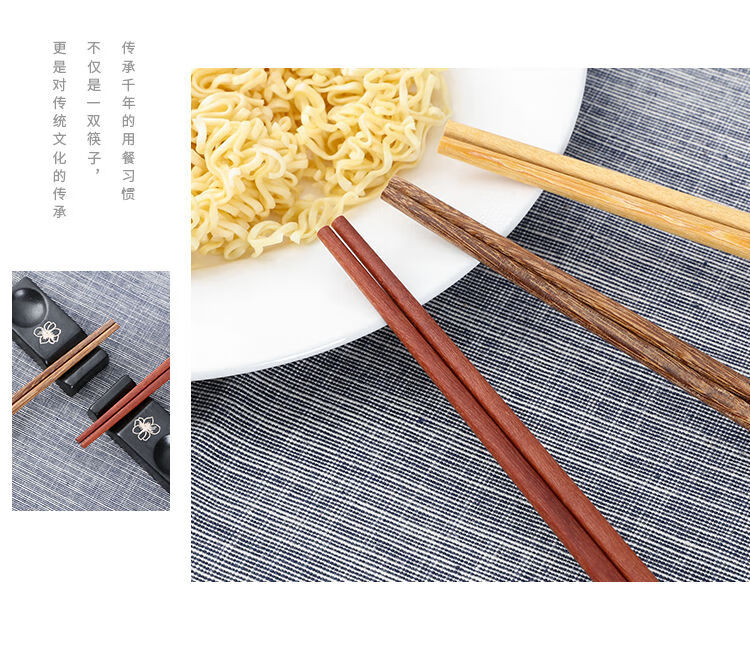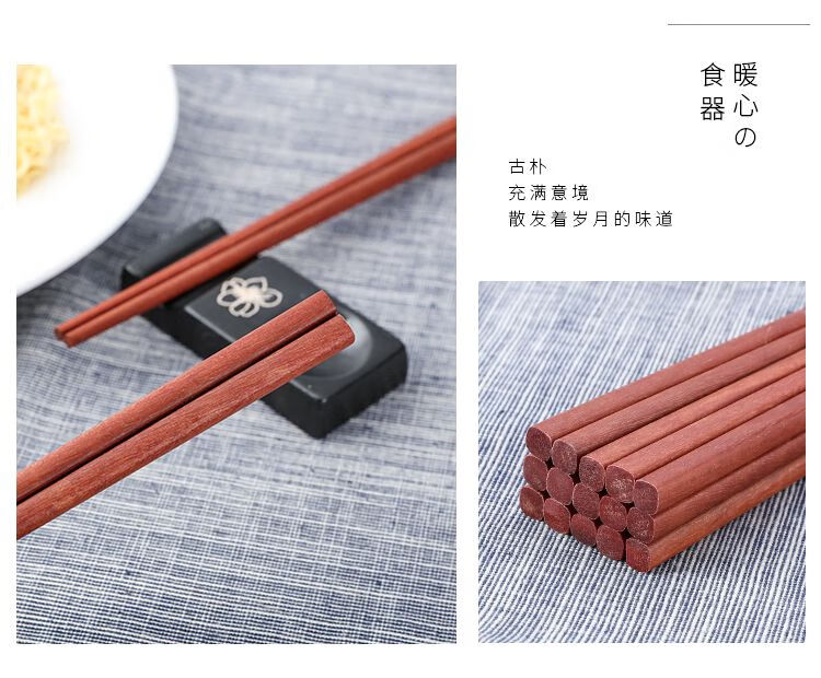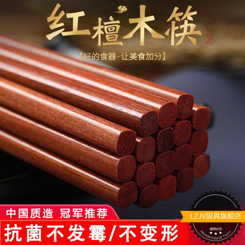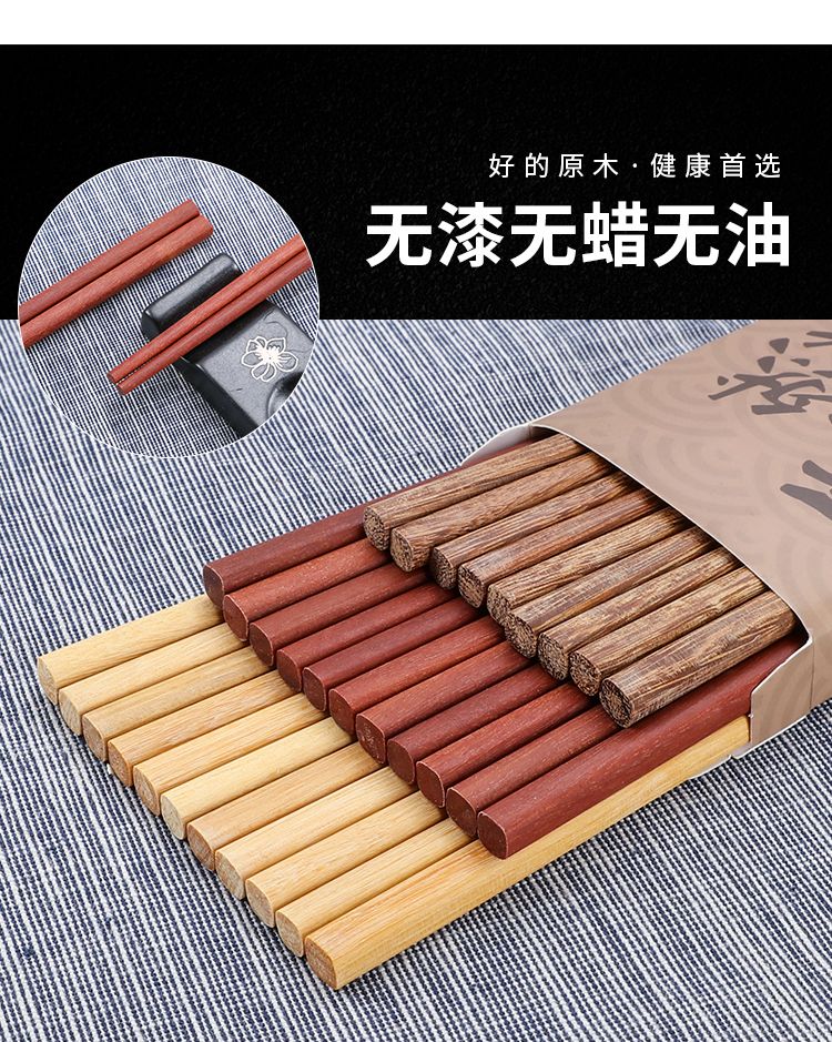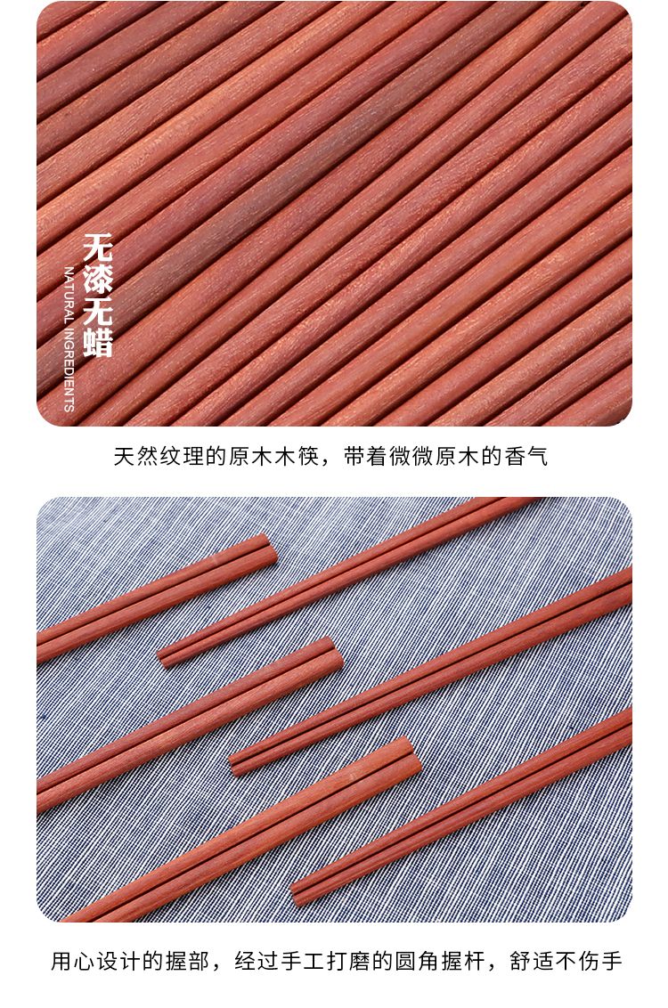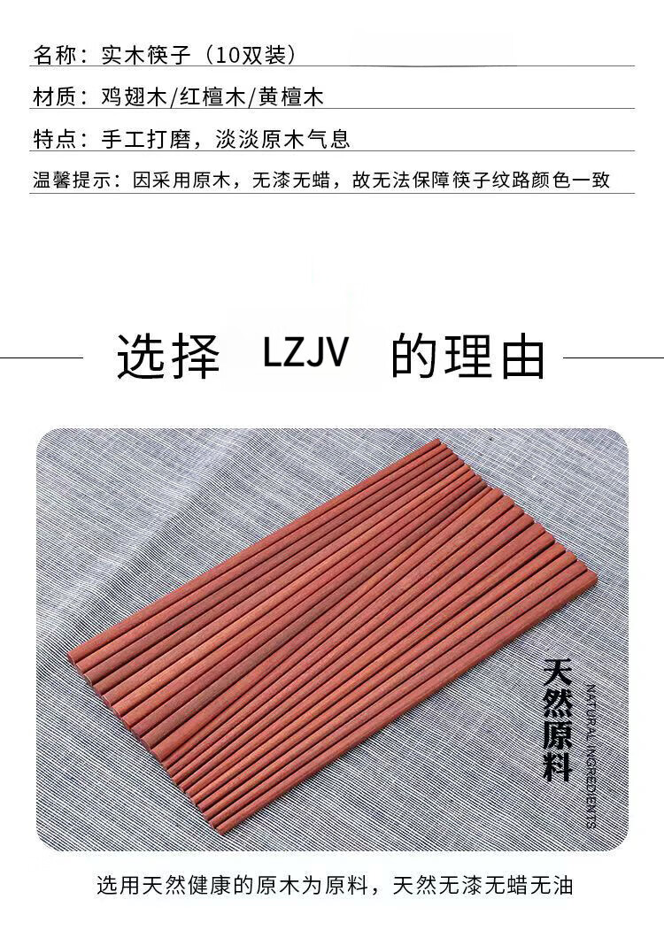 LZJV天然原木鸡翅木红檀木筷子实木无漆防霉不发霉家用筷子套装 10双彩盒装 天然红檀木筷子