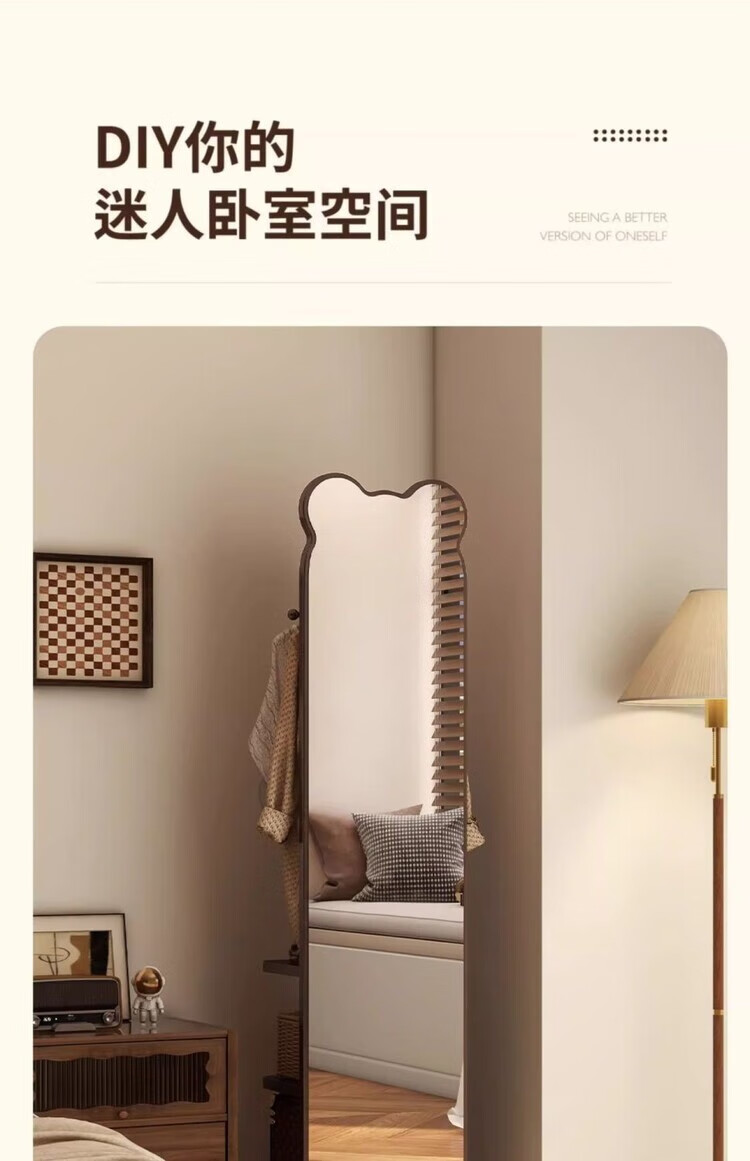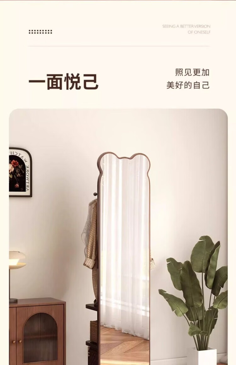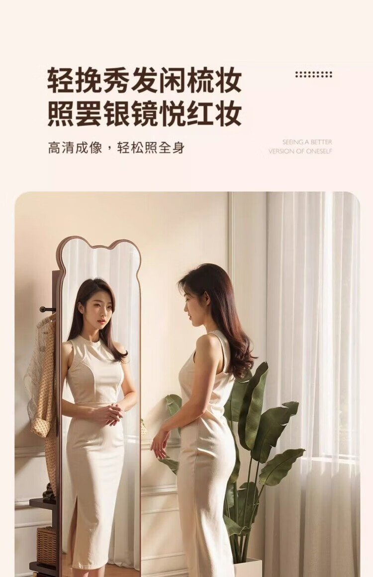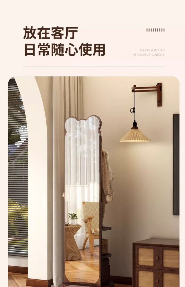 弘星隆小熊旋转镜全身镜落地镜家用穿衣镜旋转挂衣帽架一体式试衣镜子 【胡桃棕】 中号【40*168】旋转储物挂衣