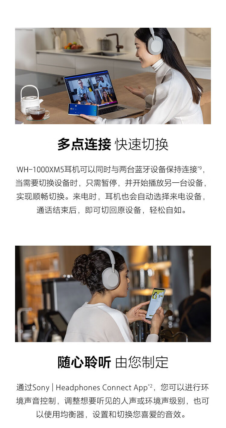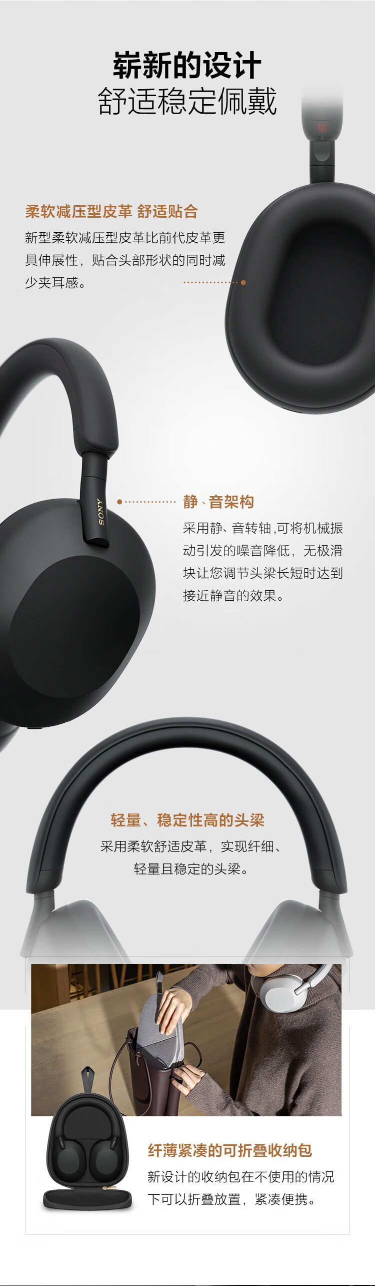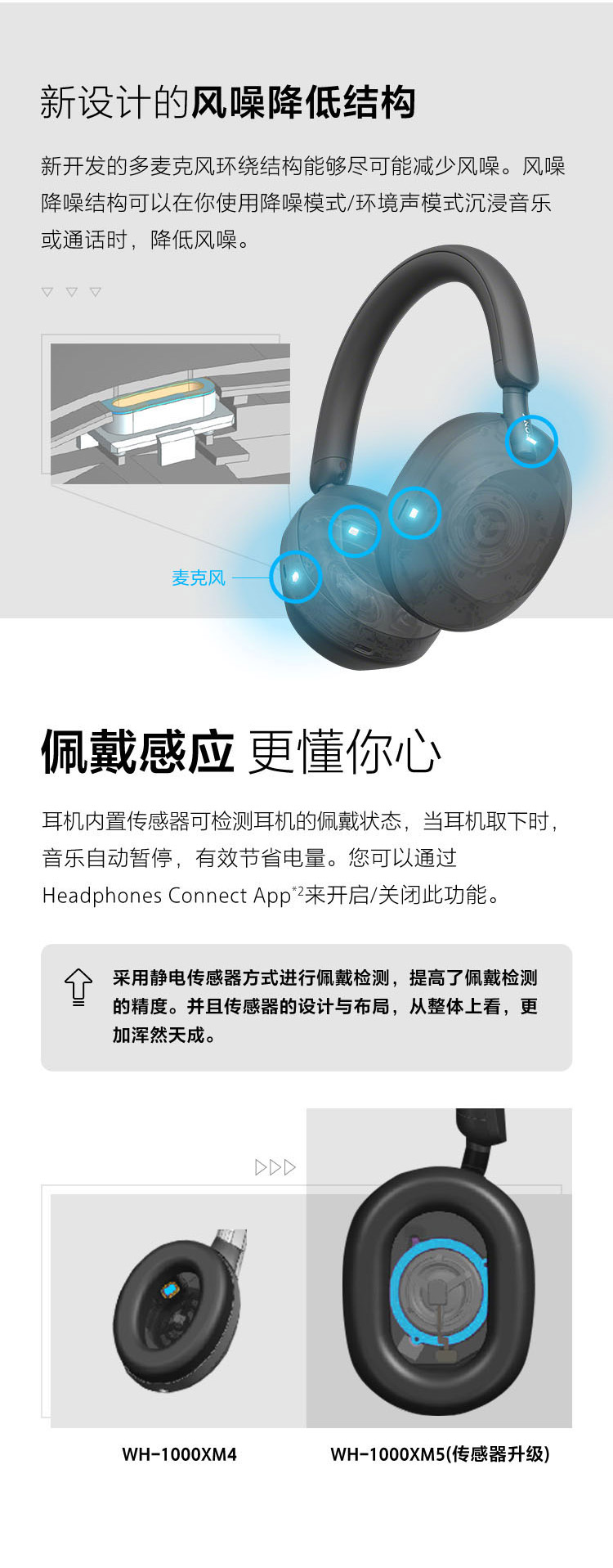 索尼(SONY)WH-1000XM5 头戴式无线耳机 蓝牙降噪耳机1000XM4升级款 网课游戏礼物送男女友学生 黑色
