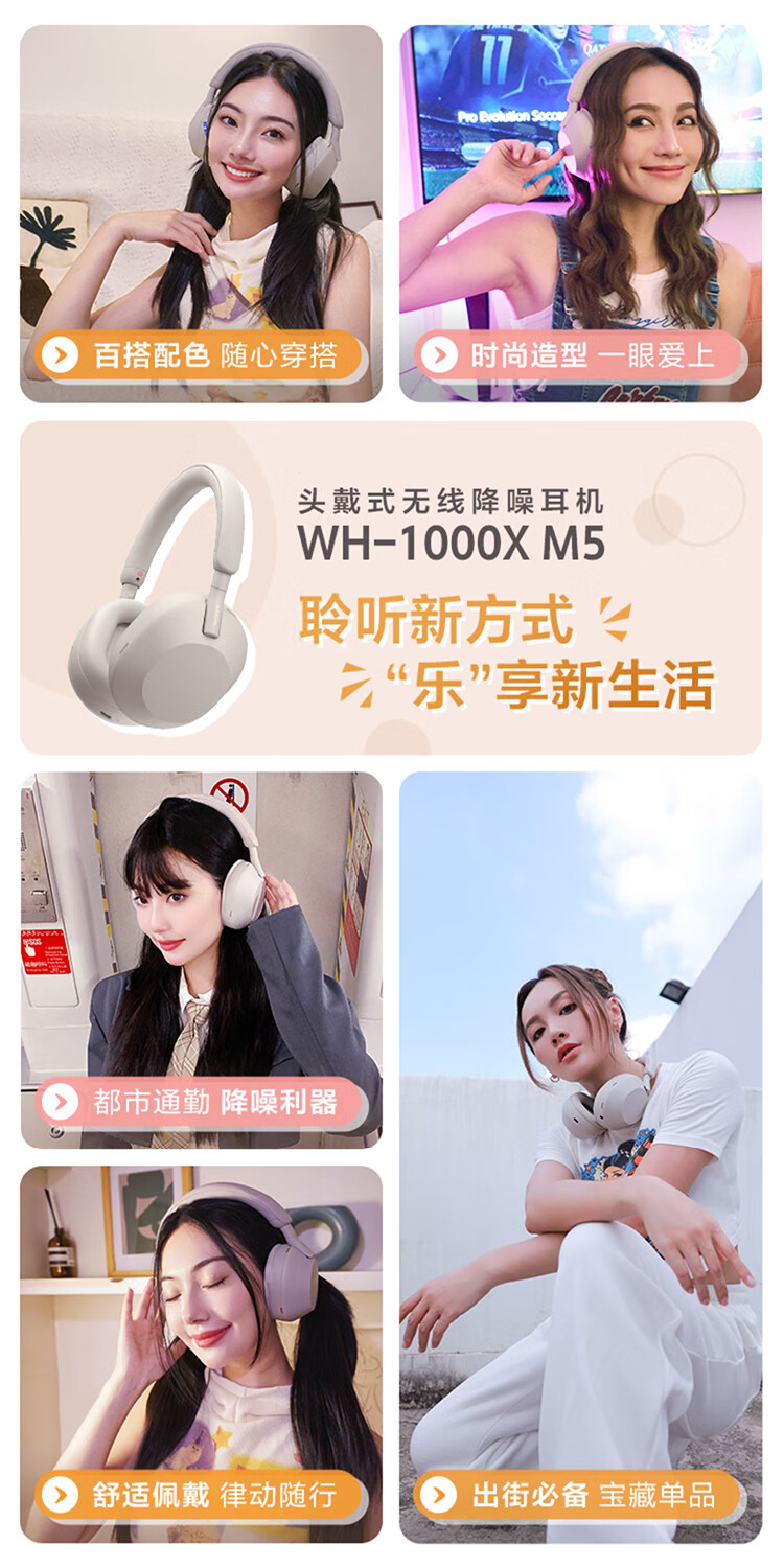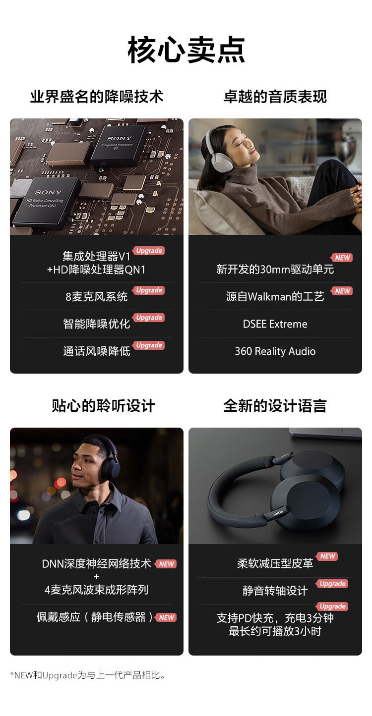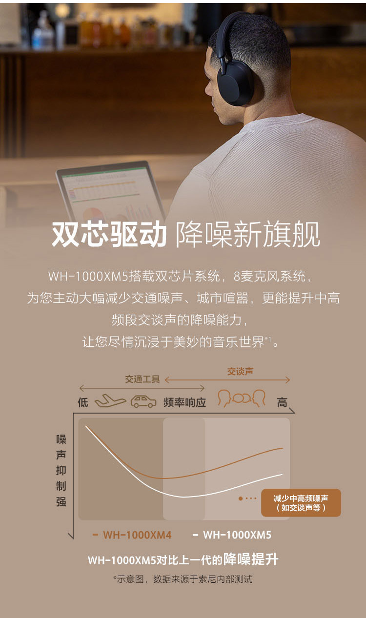 索尼(SONY)WH-1000XM5 头戴式无线耳机 蓝牙降噪耳机1000XM4升级款 网课游戏礼物送男女友学生 黑色