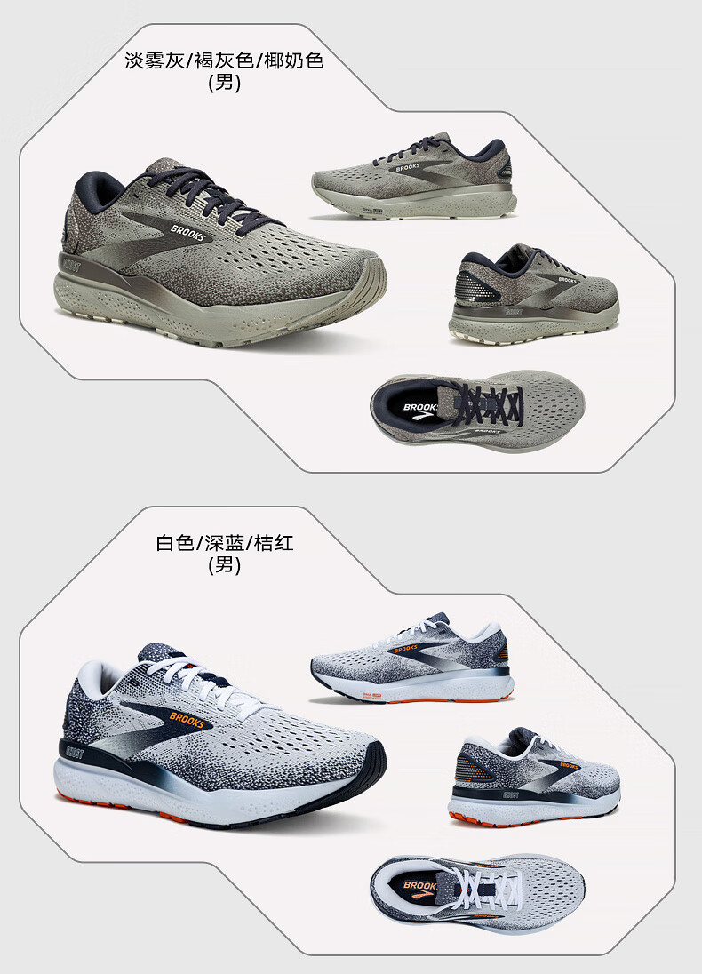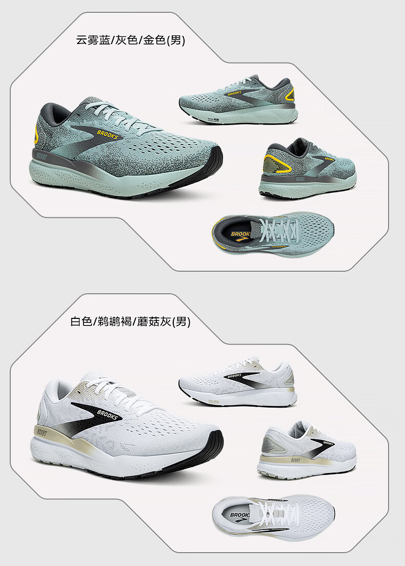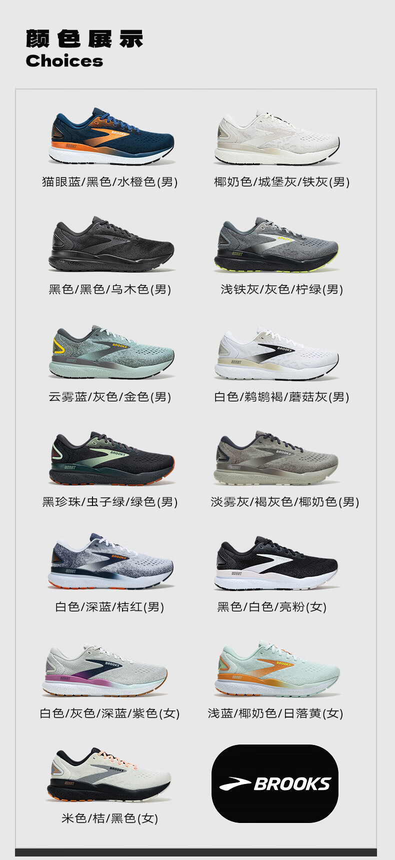 布鲁克斯(BROOKS)幽灵Ghost 16跑鞋男女减震透气运动鞋缓震专业跑步鞋 男款 椰奶色/城堡灰/铁灰 42.5