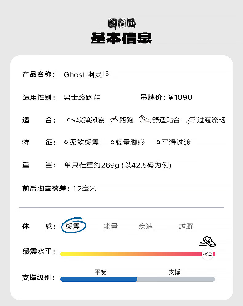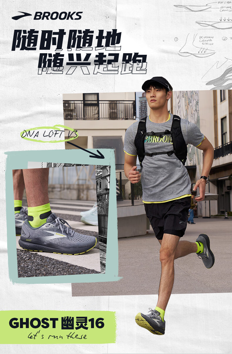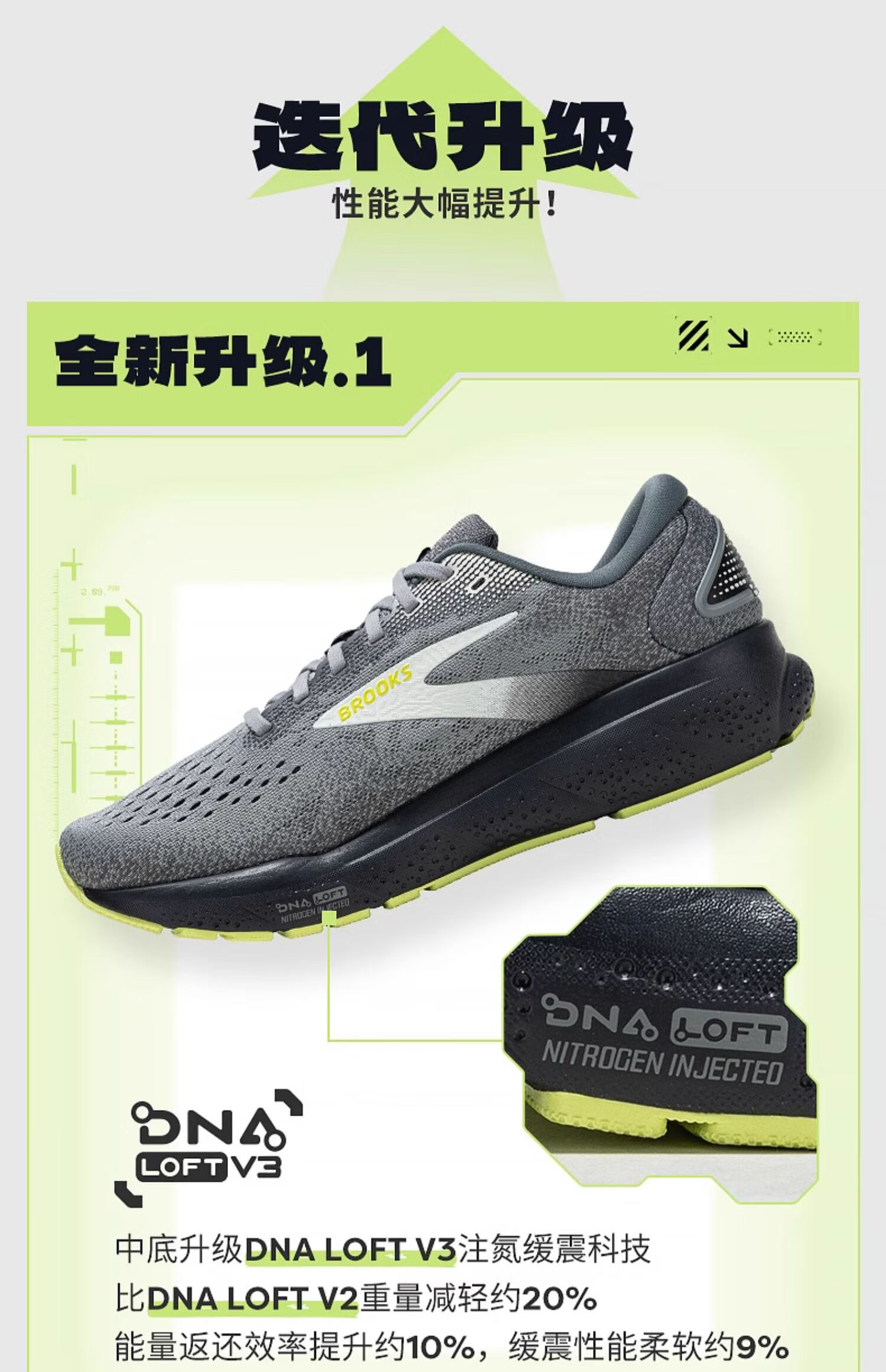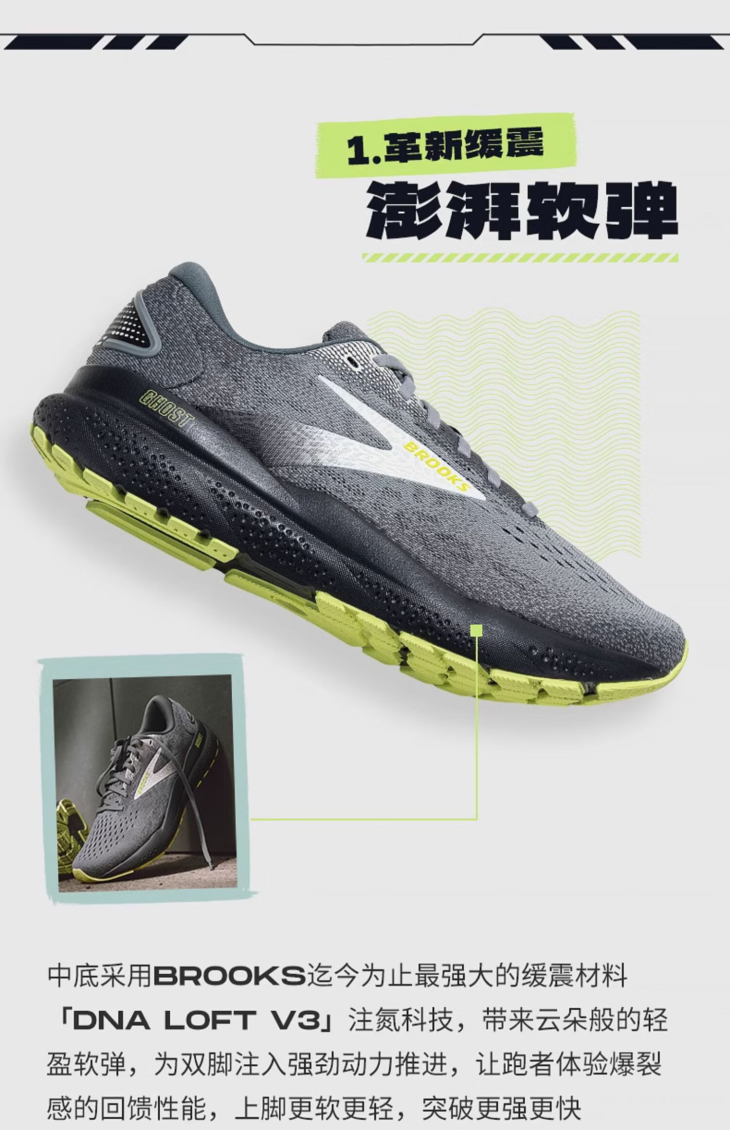 布鲁克斯(BROOKS)幽灵Ghost 16跑鞋男女减震透气运动鞋缓震专业跑步鞋 男款 椰奶色/城堡灰/铁灰 42.5
