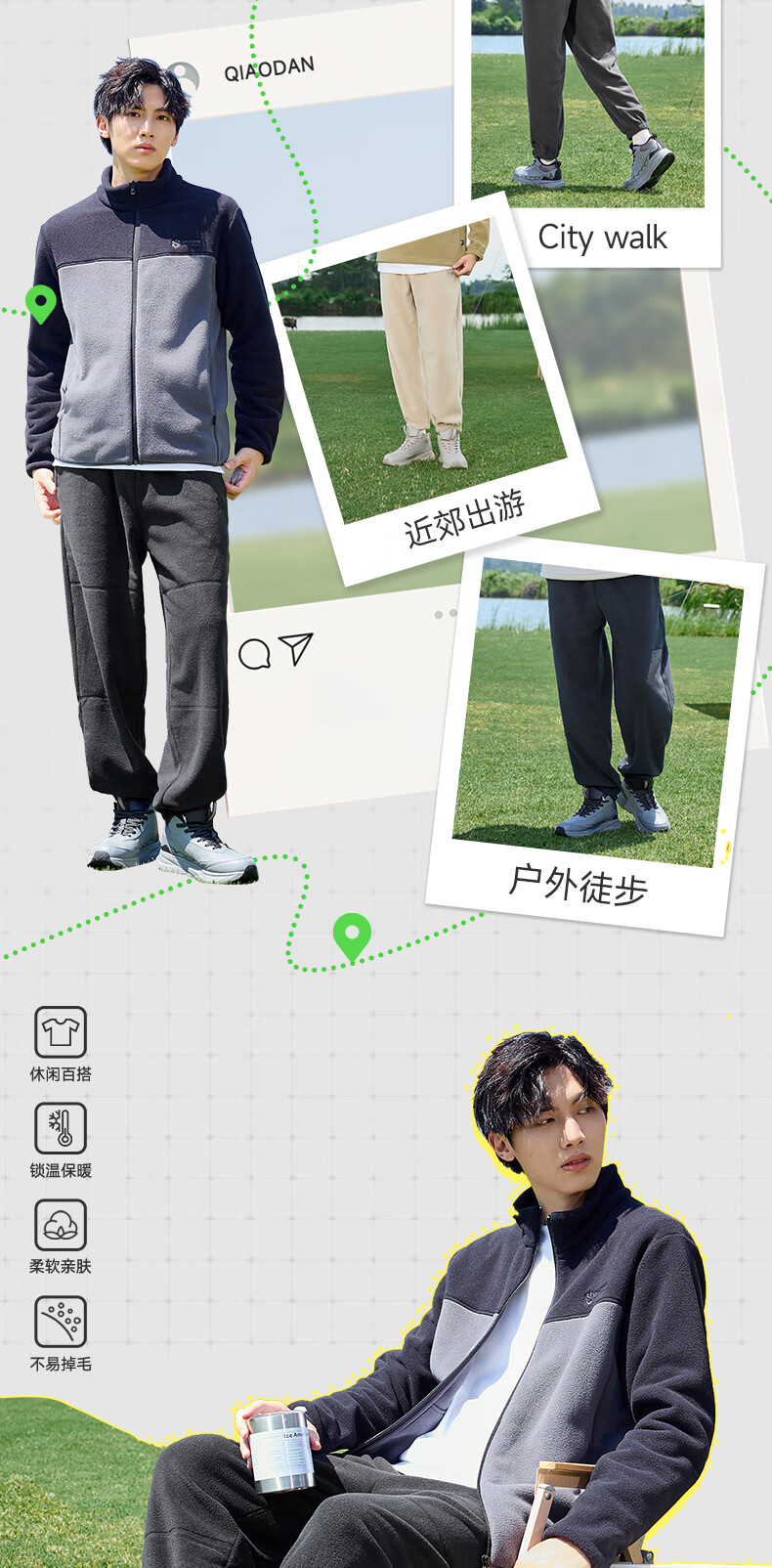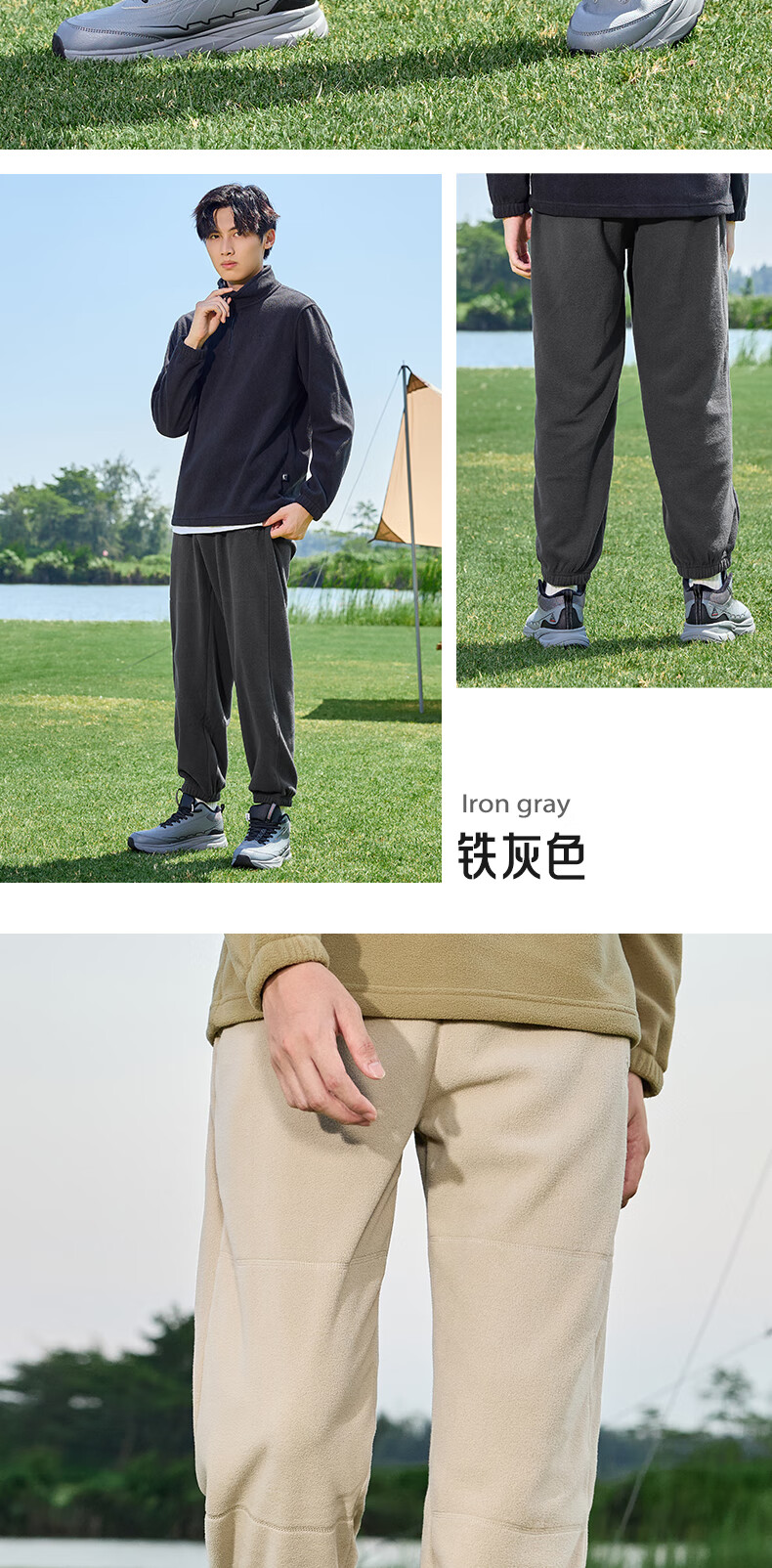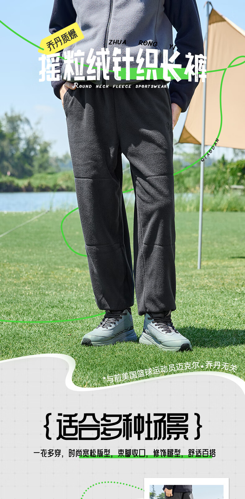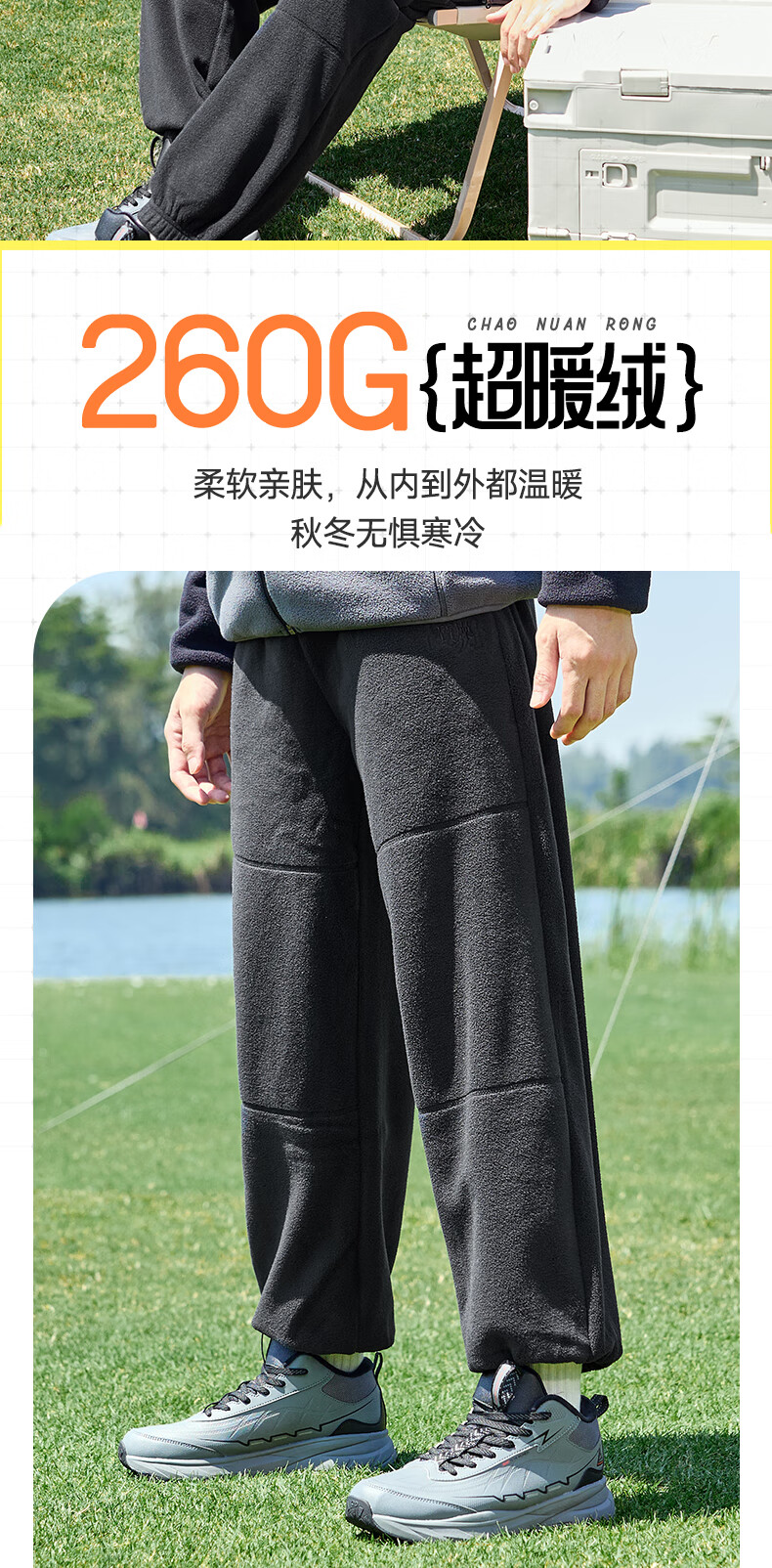 乔丹QIAODAN加绒运动裤男休闲裤子男冬季保暖加绒裤卫裤男 铁灰色 M