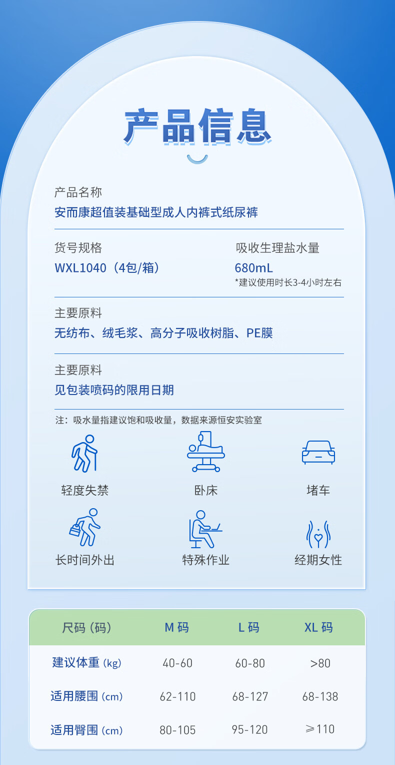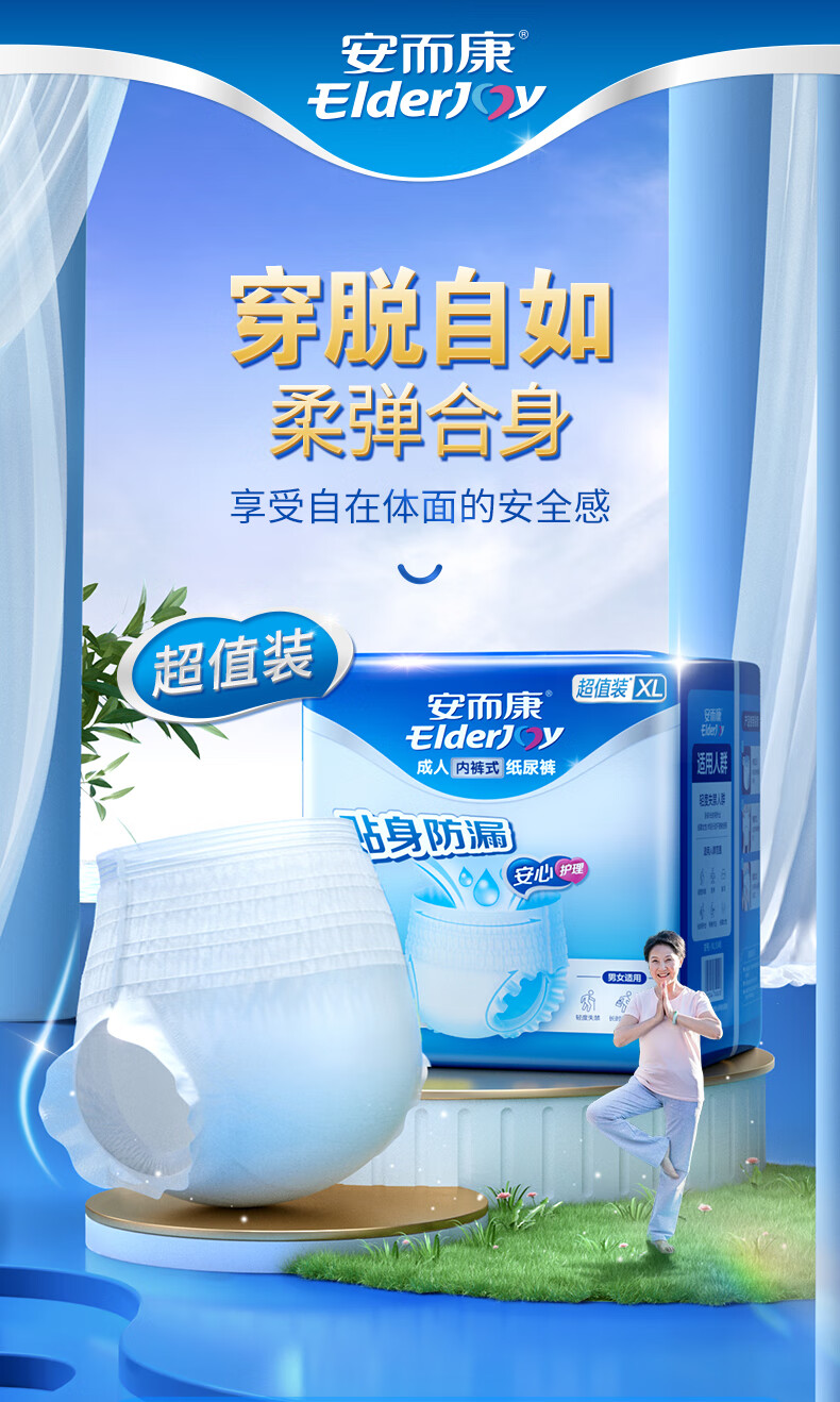 安而康(Elderjoy)超值装基础型成人拉拉裤XL40片臀围>110cm内裤式成人纸尿裤老人