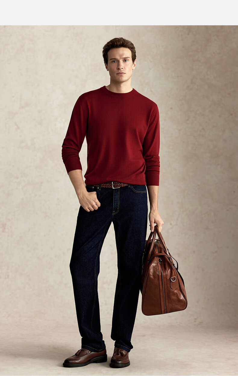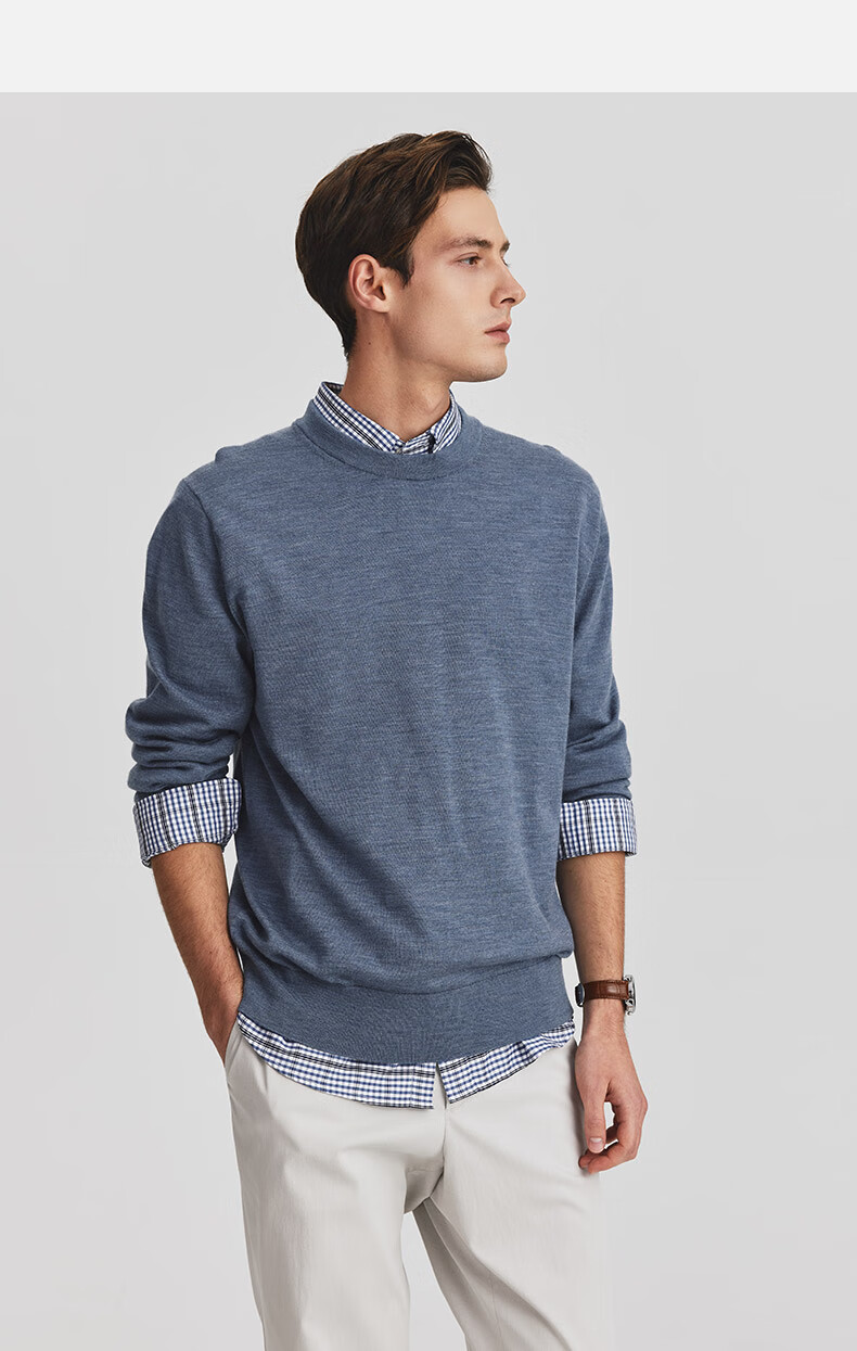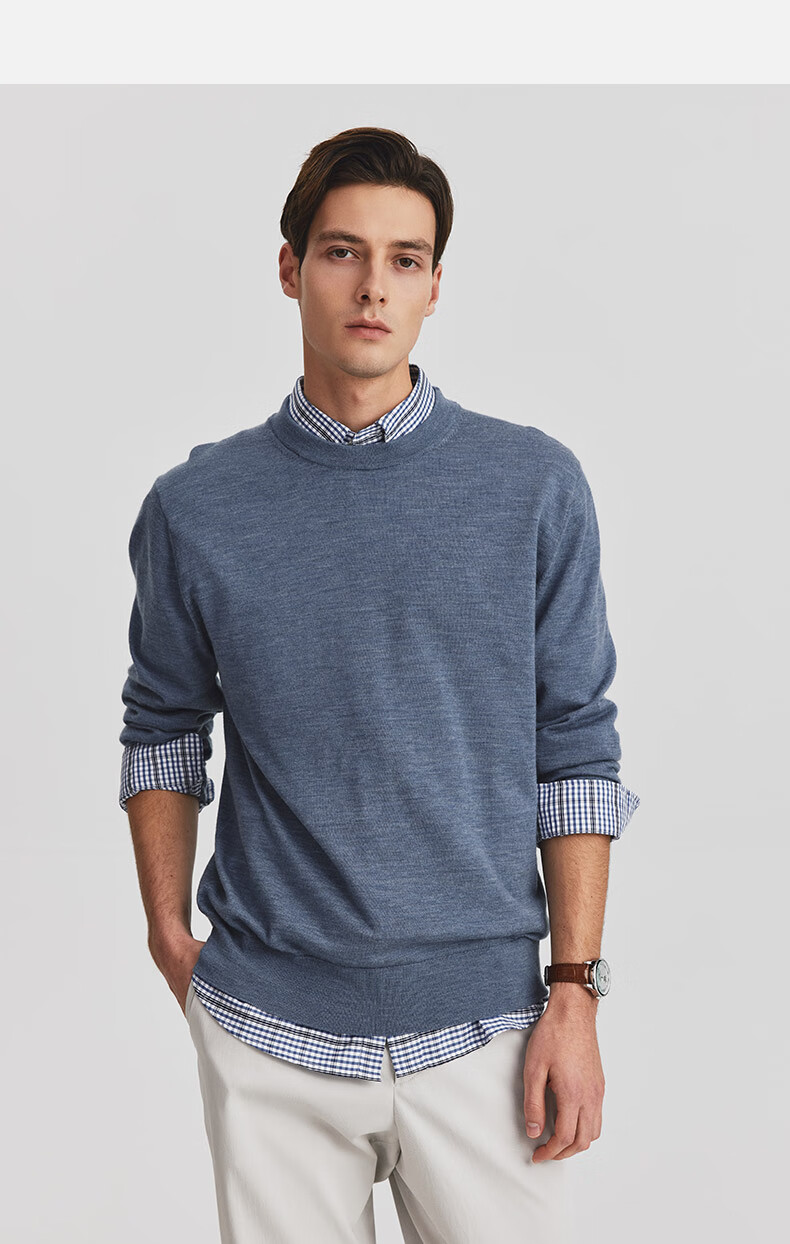 Scofield【羊毛】男装24年秋季新品休闲圆领套头多色毛衣针织衫 蓝色 2XL (185)