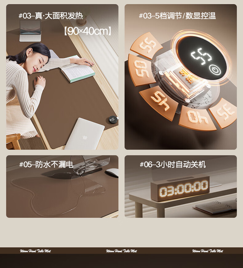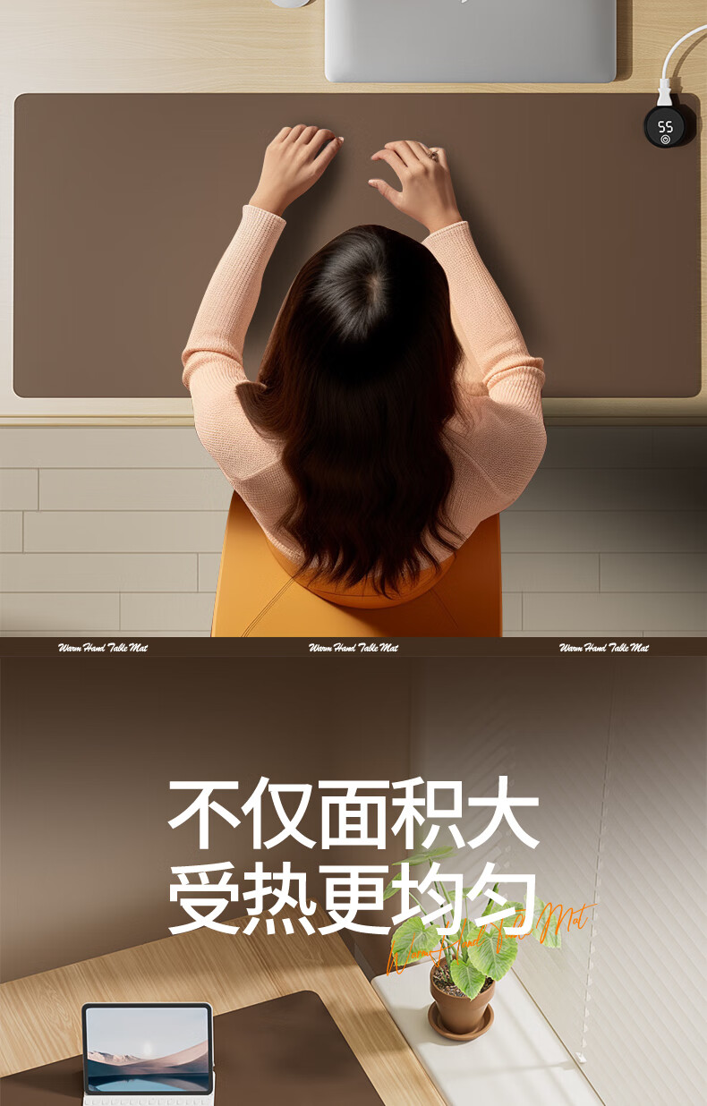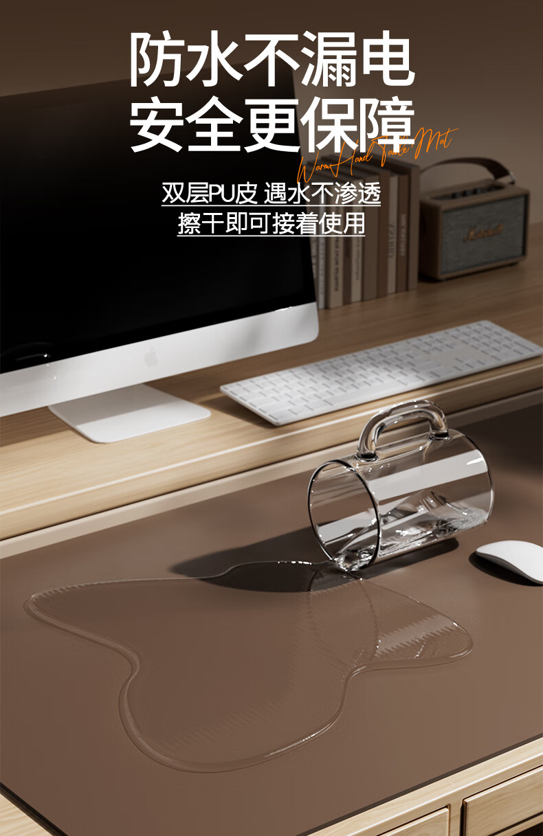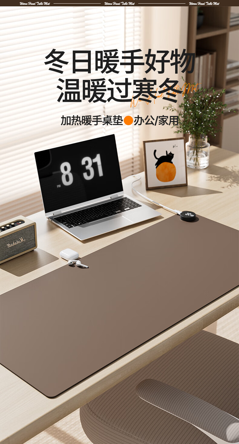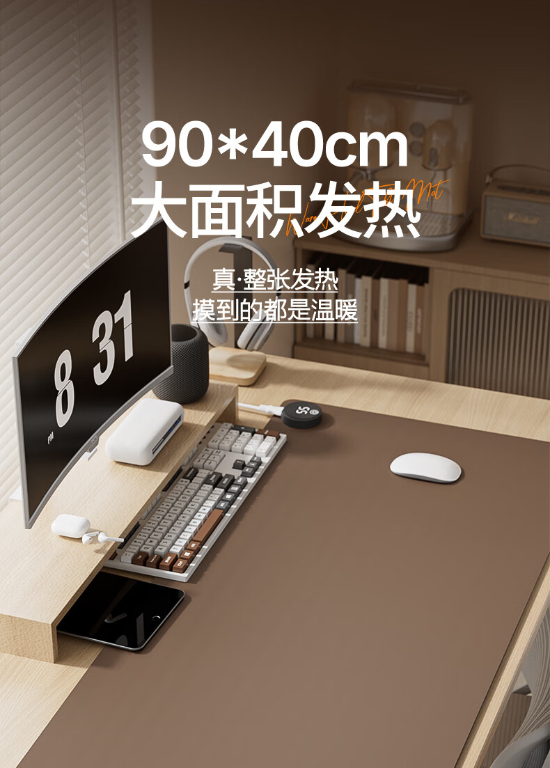 派度加热鼠标垫超大号加热桌垫办公室电脑桌面发热垫冬季电热暖手垫子 【左侧开关】椰壳棕(90x40cm) 【3C安全认证】数显5档控温+定时断电