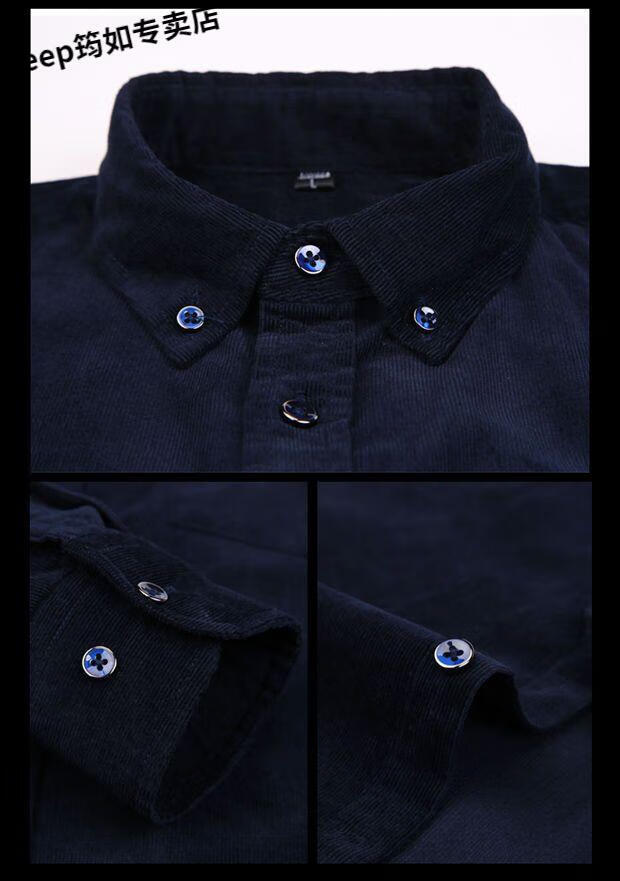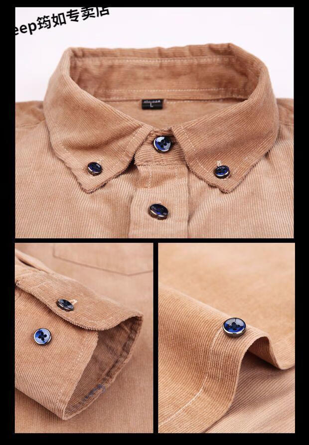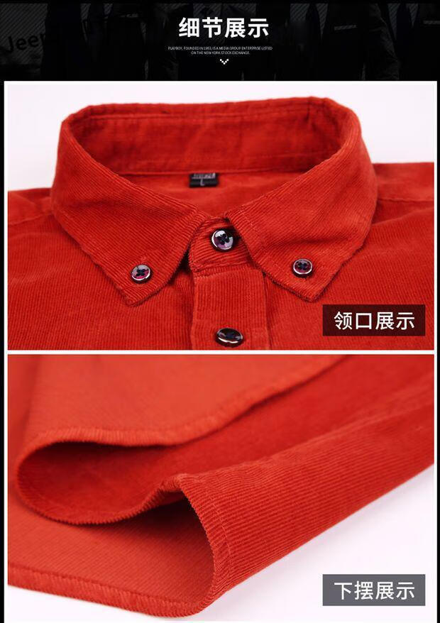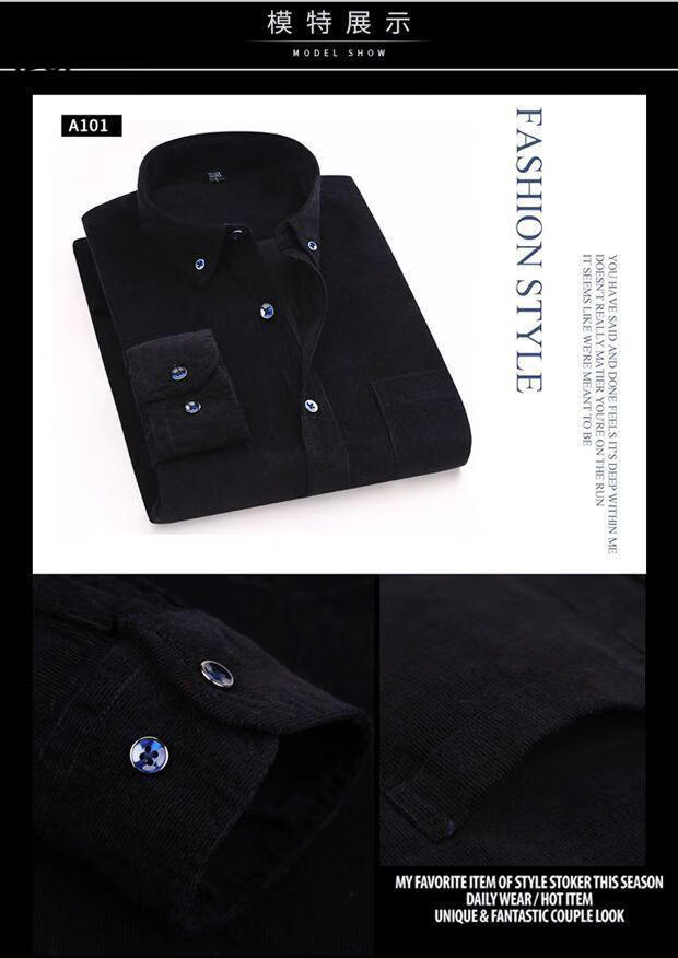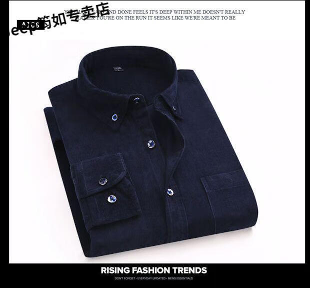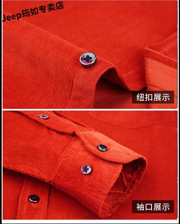 Jeep吉普秋季纯棉灯芯绒衬衫男士长袖休闲全棉衬衣青年中年大码爸爸装 纯棉灯芯绒-纯黑 41码 建议150-155斤