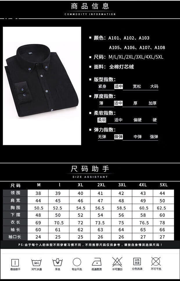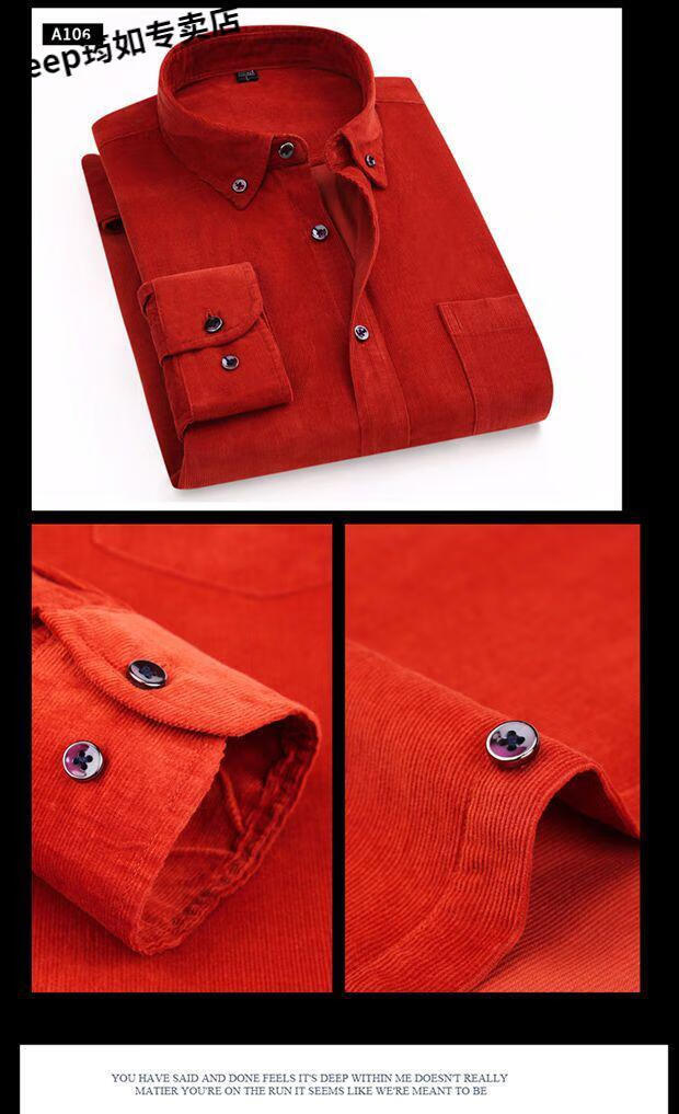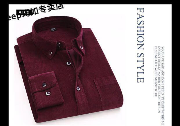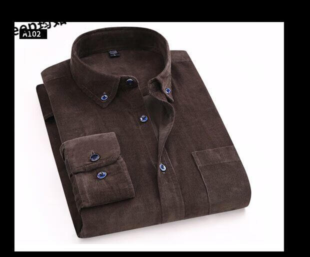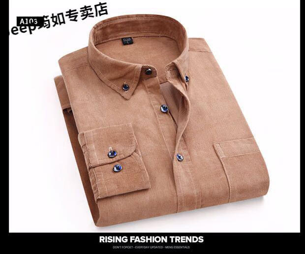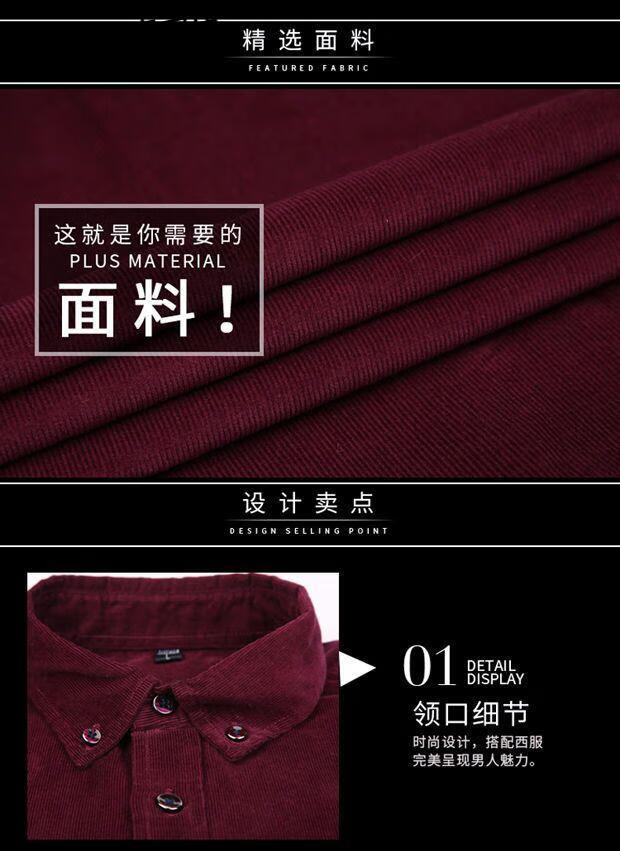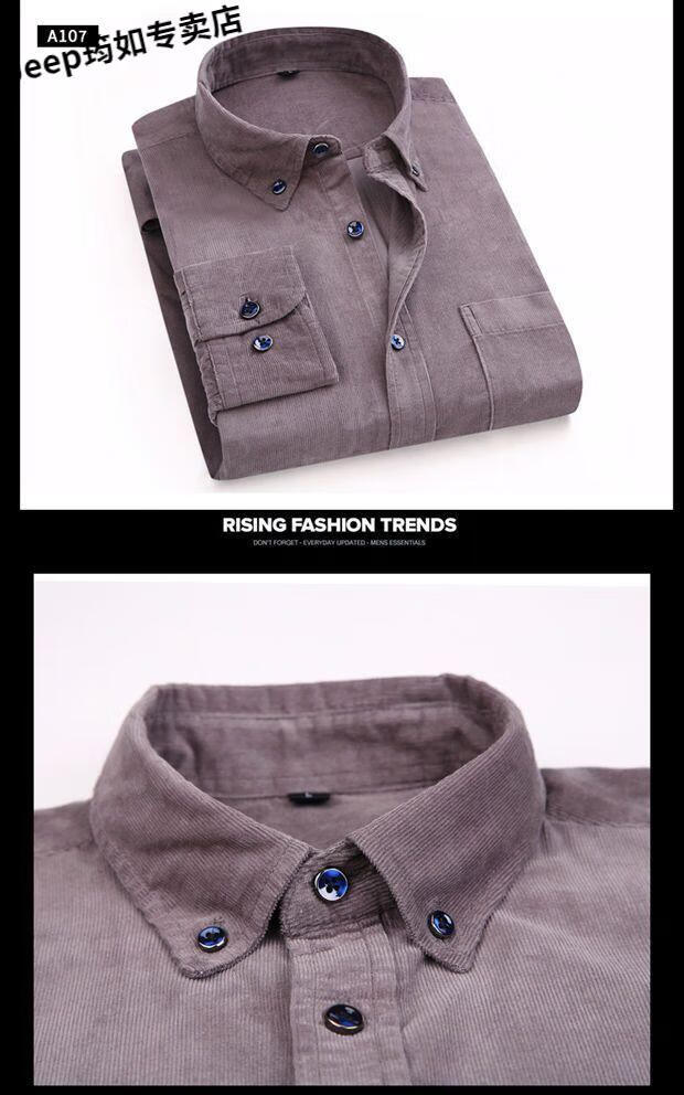 Jeep吉普秋季纯棉灯芯绒衬衫男士长袖休闲全棉衬衣青年中年大码爸爸装 纯棉灯芯绒-纯黑 41码 建议150-155斤